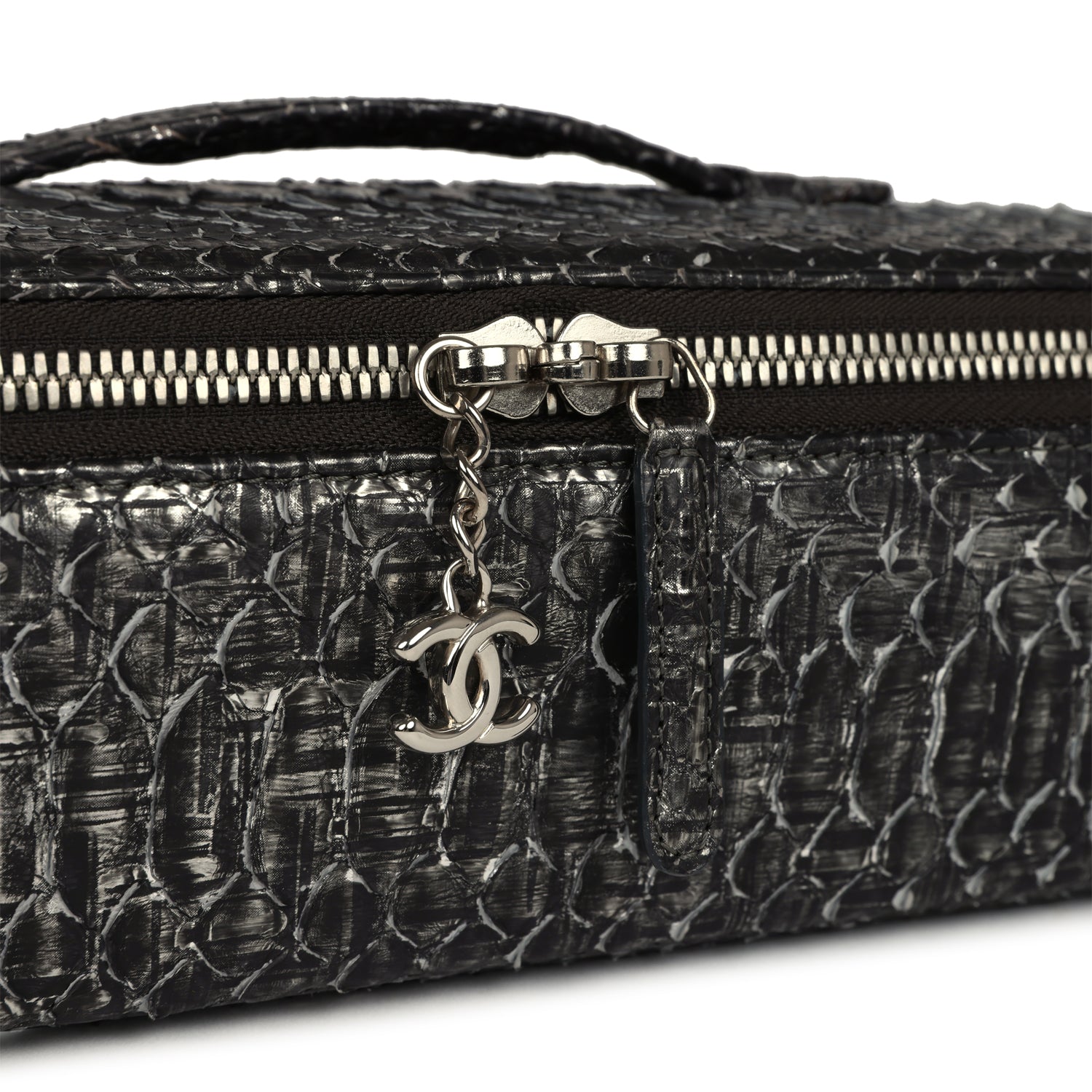 Chanel Vanity Case Black Metallic Python Silver Hardware