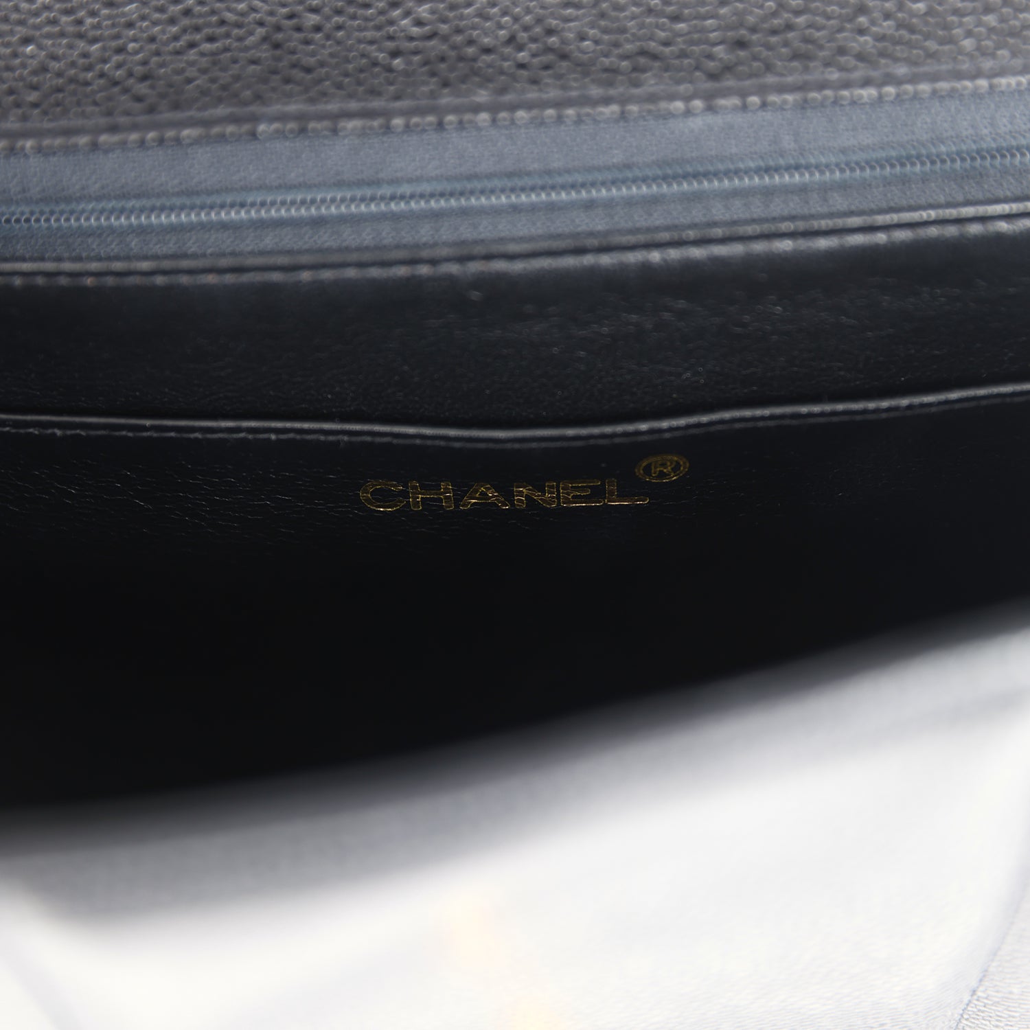 Chanel Vintage Black Quilted Caviar Jumbo Single Flap Bag Gold Hardware