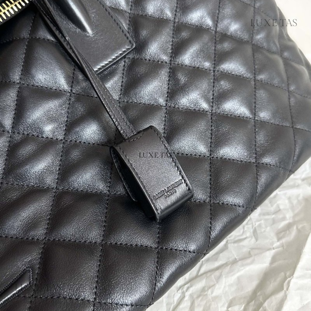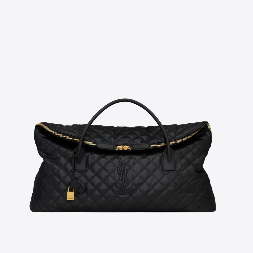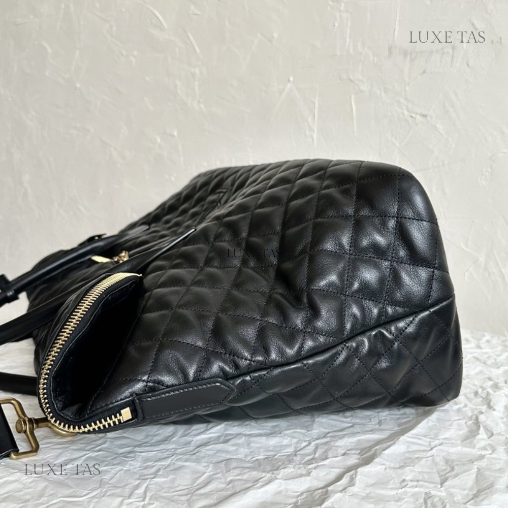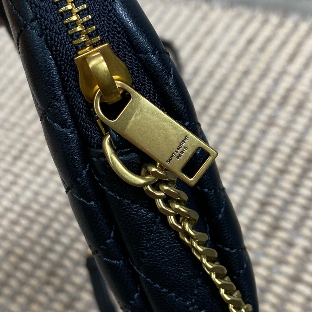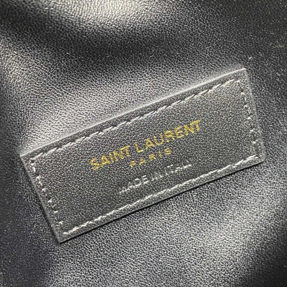 Bucket bag with a flap top, embellished with the iconic Cassandre and diamond-quilted overstitching. This versatile accessory features a rotating leather top handle and a detachable leather-and-chain strap, allowing for shoulder or crossbody carry.
