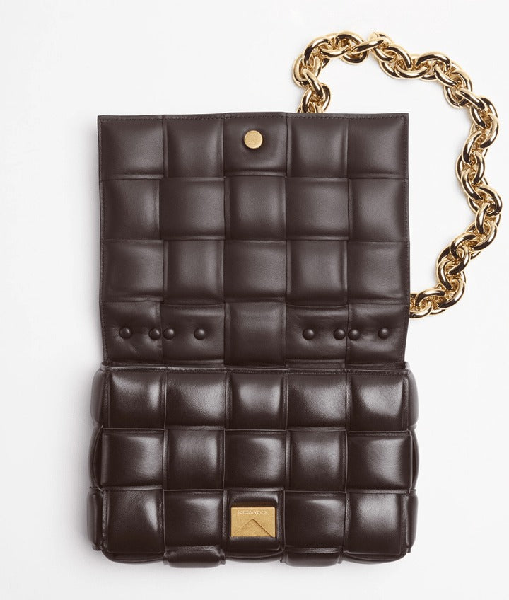 The Chain Cassette by BV embodies the brand's signature elements such as the Intrecciato weaving technique, high-quality materials, and distinctive colors. Handcrafted in Italy from the finest Nappa lambskin, this bag features a padded design that adds a touch of luxury to its overall look.