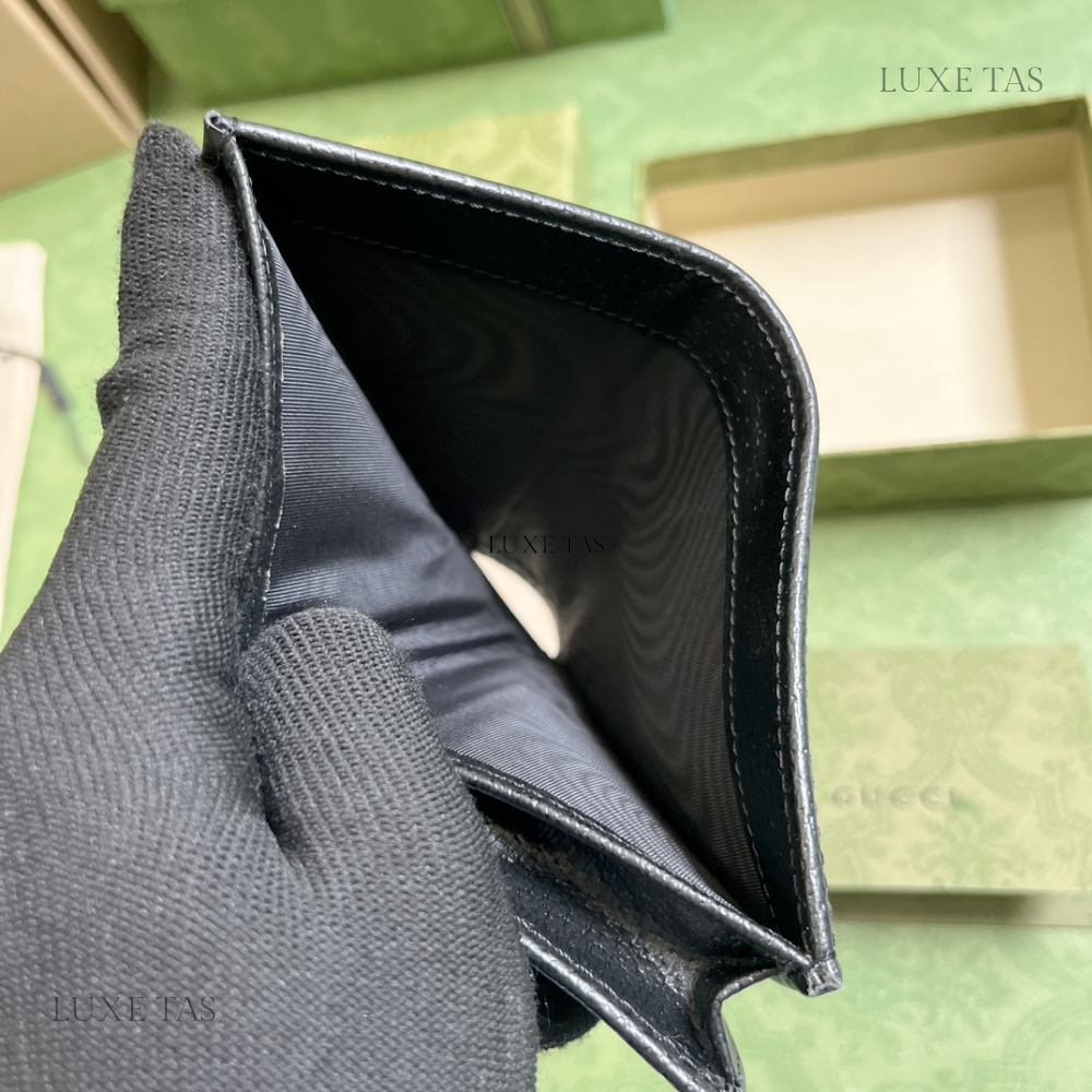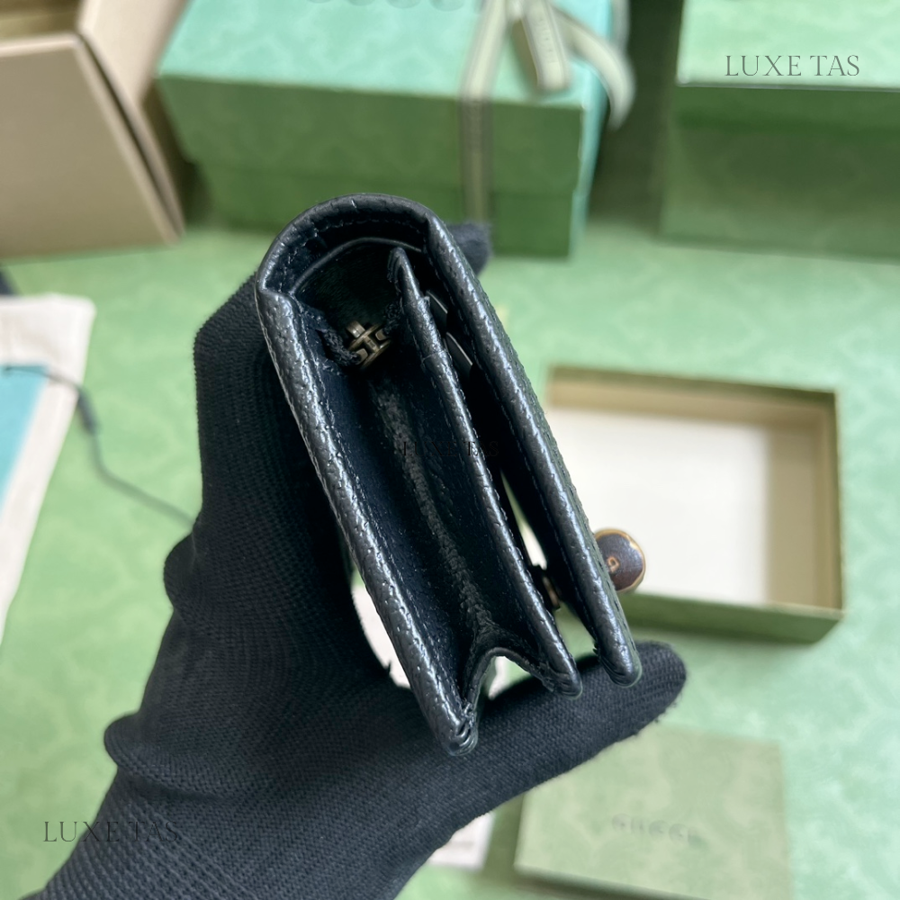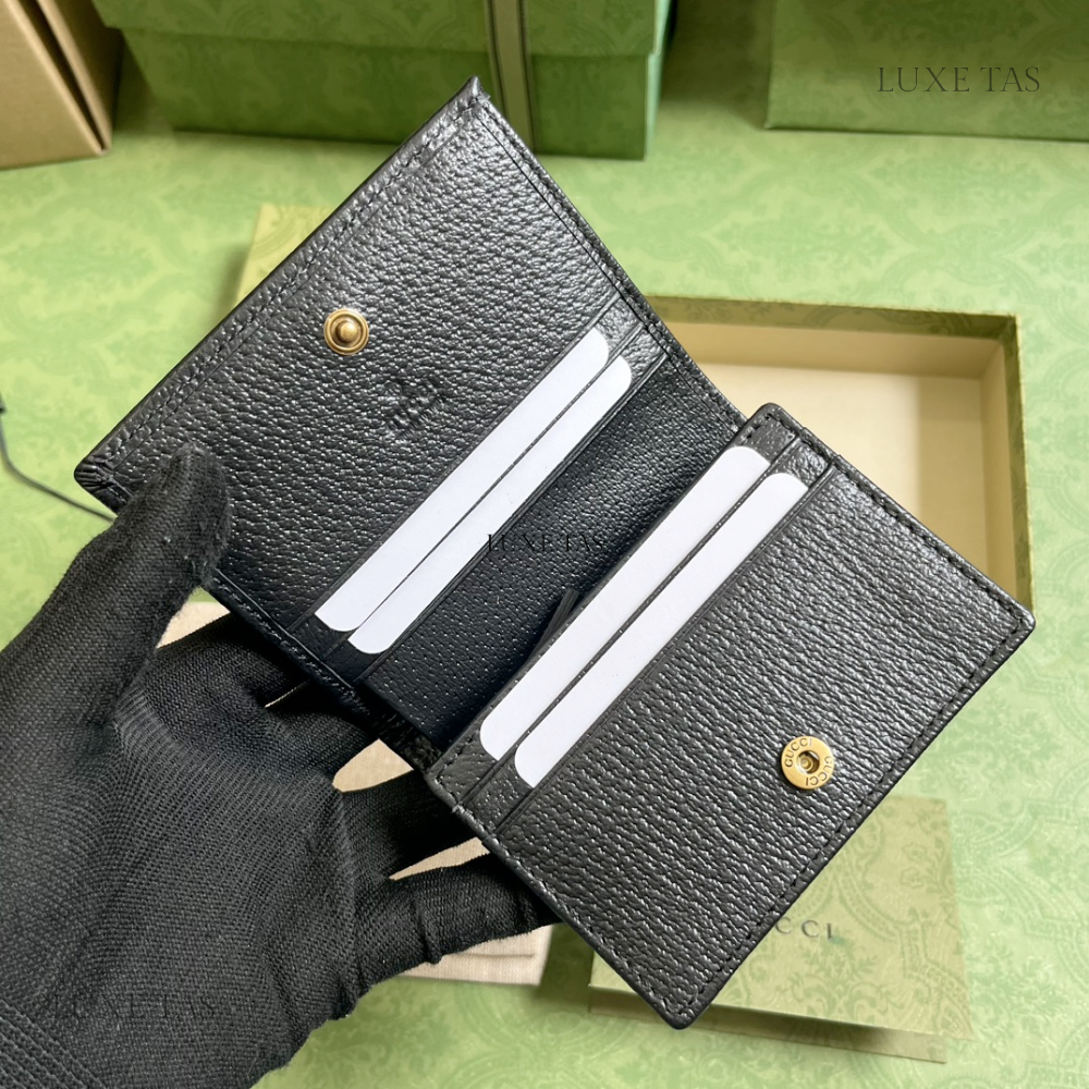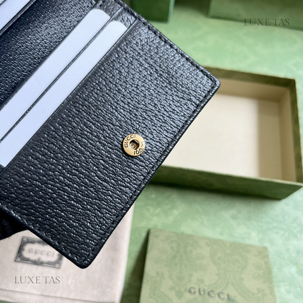 Celebrate GG's rich heritage with this captivating card case wallet featuring a symbolic bamboo closure. Meticulously crafted from sleek black leather, this accessory exudes timeless elegance. Adorning it is the iconic GG's monogram hardware, adding a touch of prestige to its impeccable design. Embrace the allure of tradition and luxury with every use of this exquisite piece.