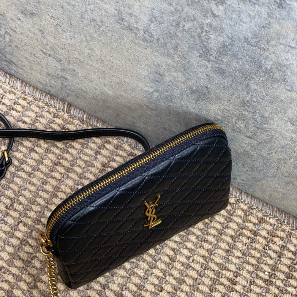 Gaby Zipped Pouch In Quilted Lambskin Black Leather Crossbody Bag for Women