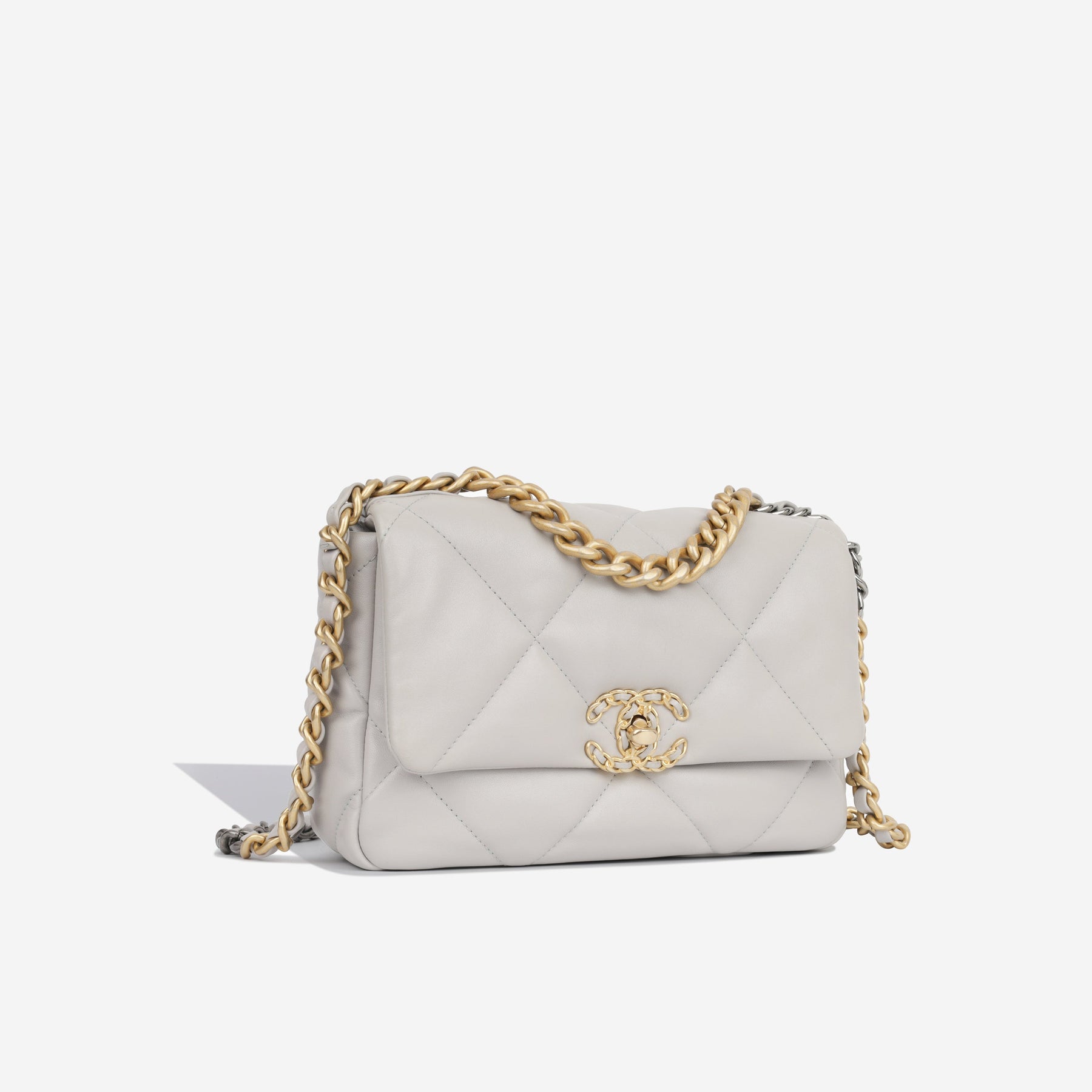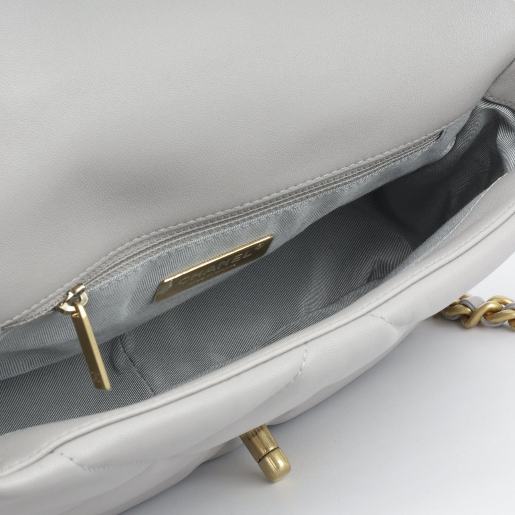Regular price $1,930.00 Sale price $430.00 Save $1,500.00For timeless Parisian-chic there is no better investment than a Chanel flap bag. However, for something both classic and on-trend, the Chanel 19 Flap Bag ticks all boxes. This neutral shade is classic and sought after; and it will compliment a range of outfits in your wardrobe. The interwoven chain sits elegantly on your shoulder or doubled up on your arm.