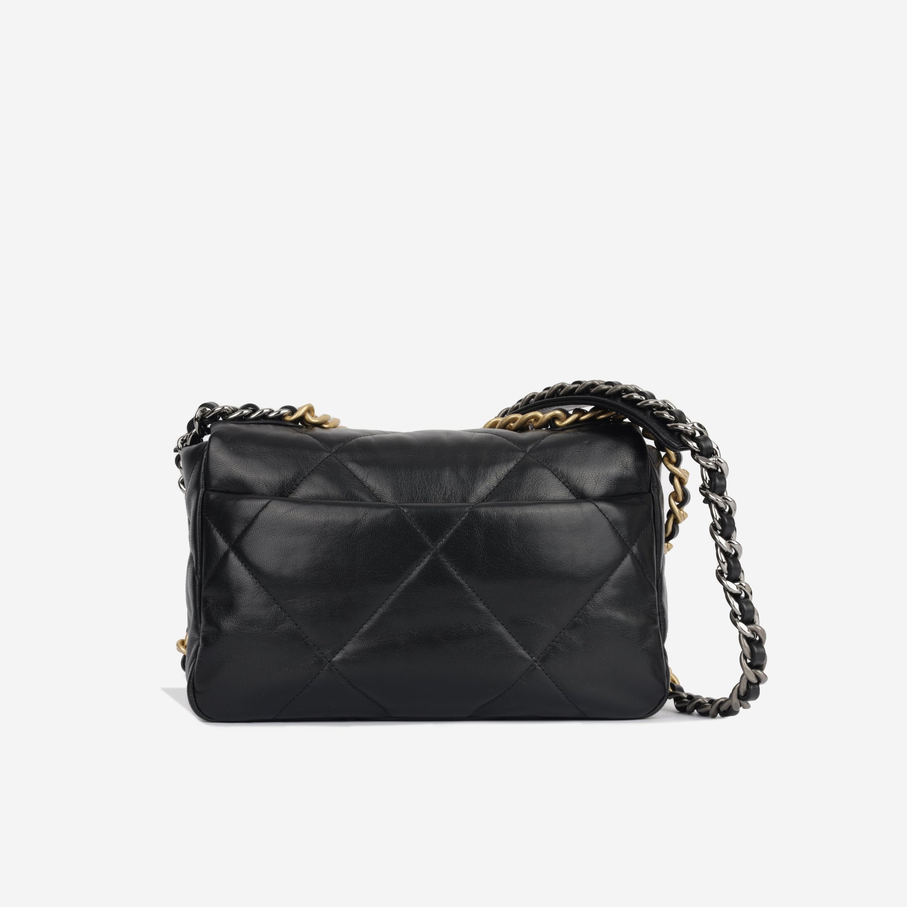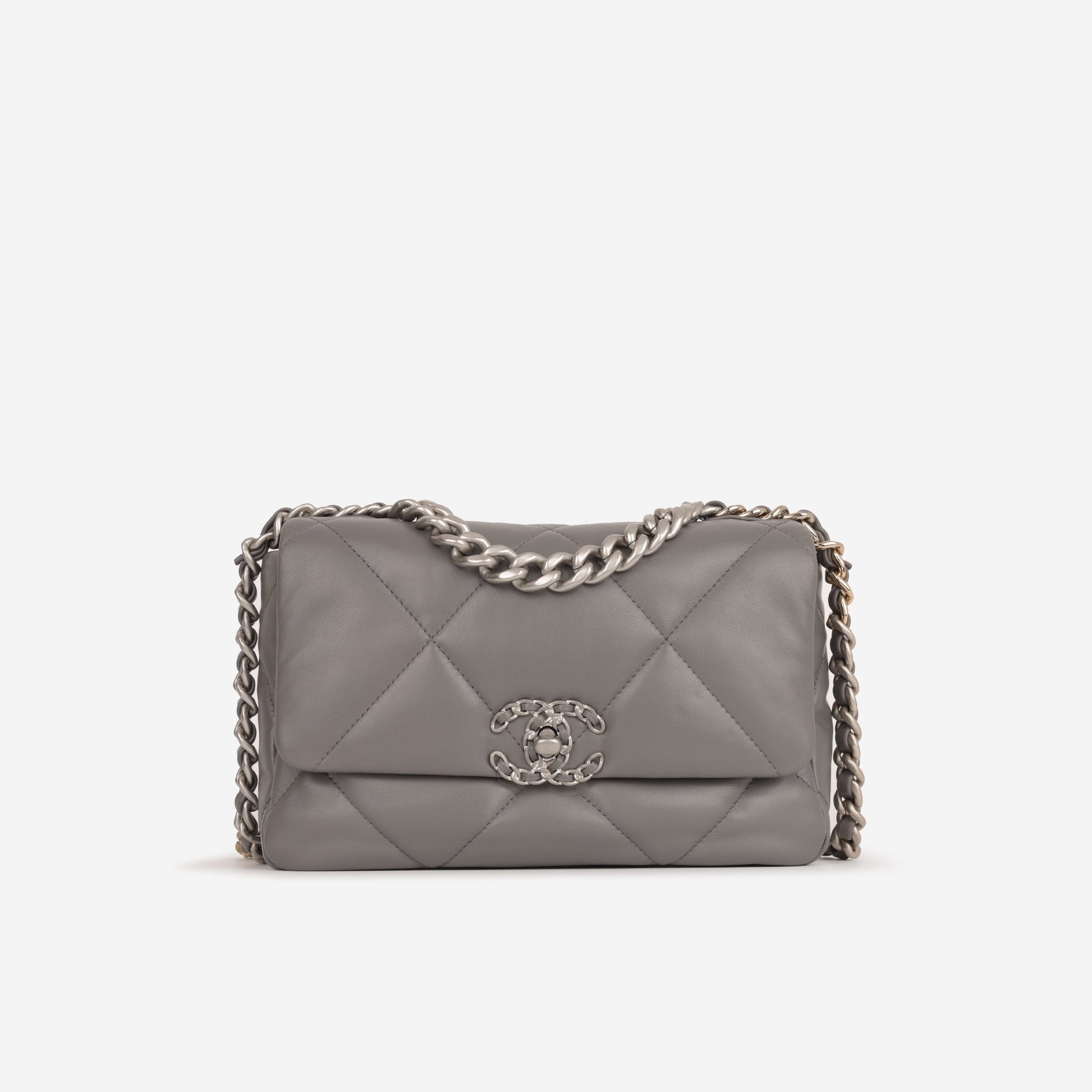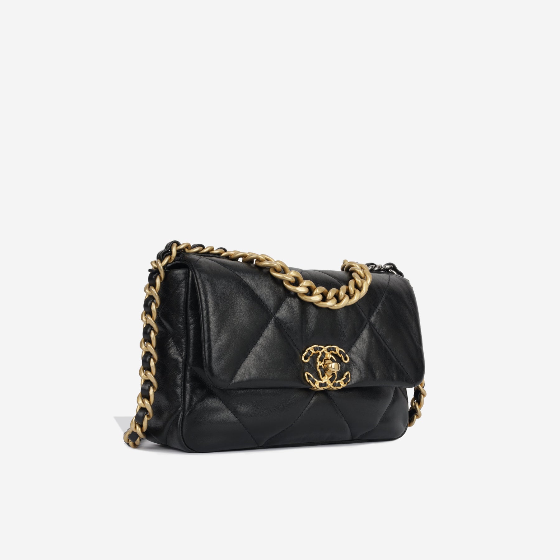 Regular price $2,350.00 Sale price $450.00 Save $1,900.00For timeless Parisian-chic there is no better investment than a Chanel flap bag. This particular Chanel 19 is crafted from lambskin leather. The interwoven chain sits elegantly on your shoulder or doubled up on your arm. Under the creative direction of Karl Lagerfeld, Chanel continues with its line of classic quilted bags.
