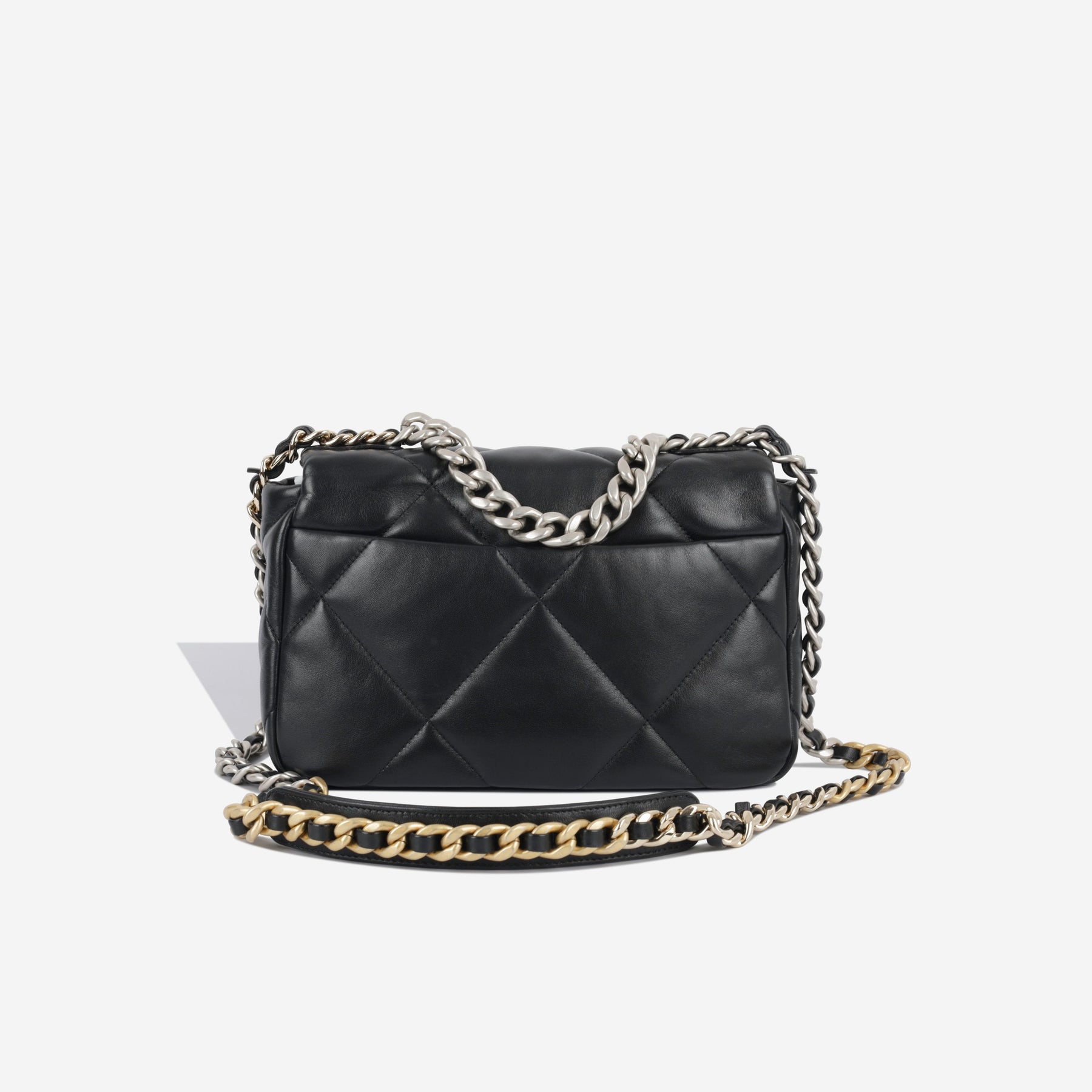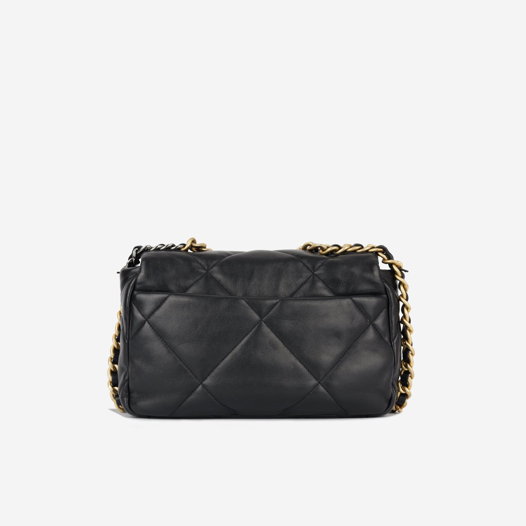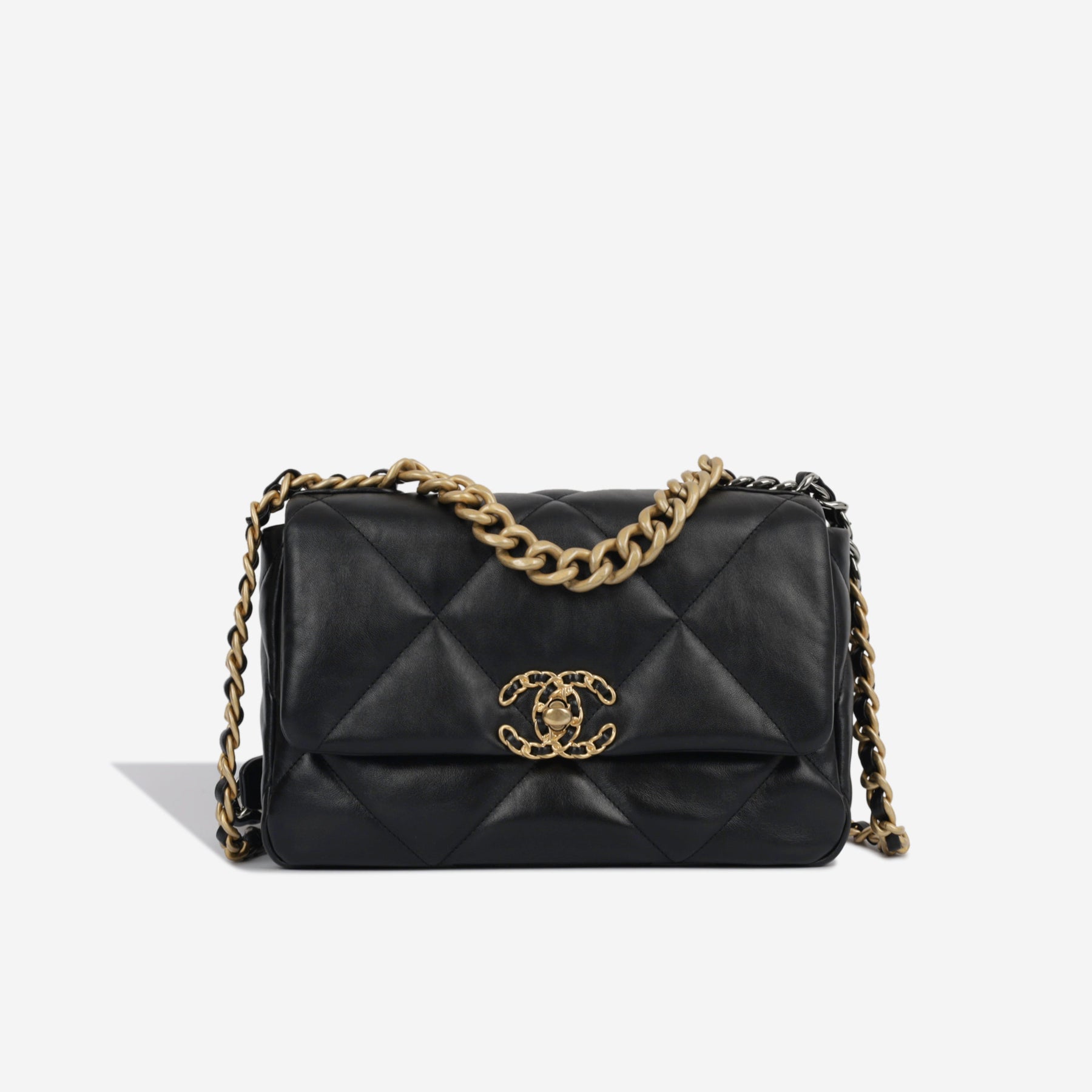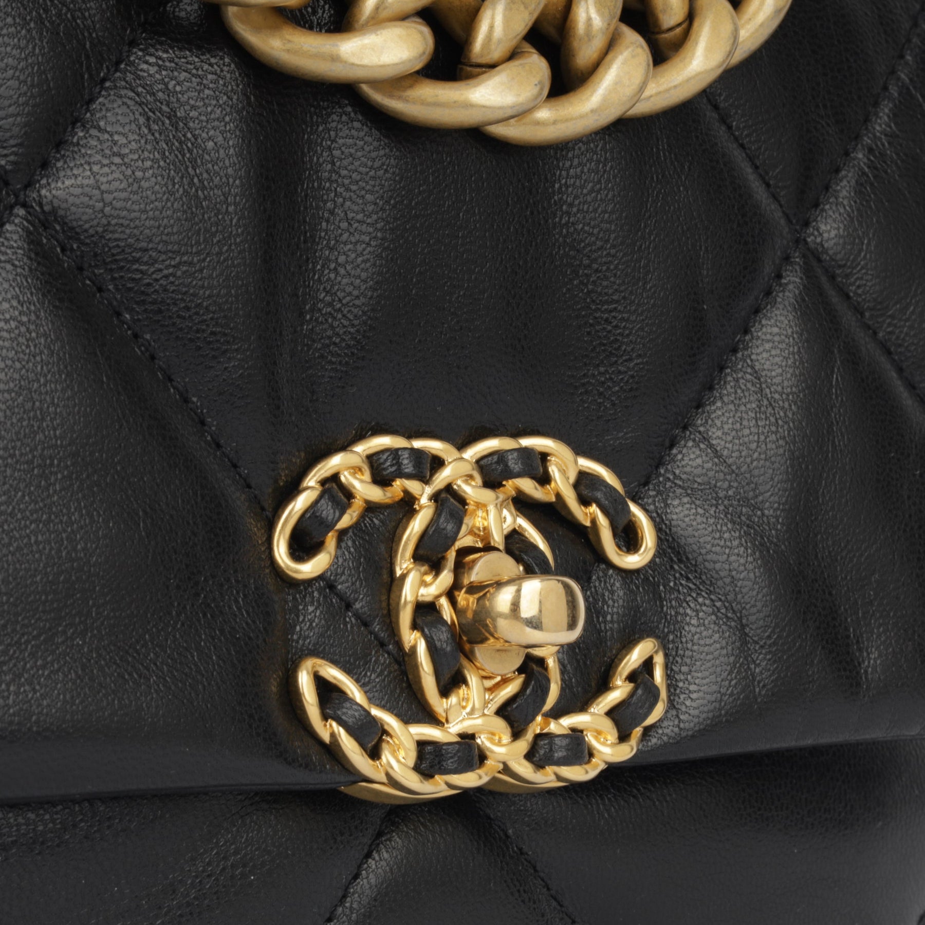 Regular price $2,350.00 Sale price $450.00 Save $1,900.00For timeless Parisian-chic there is no better investment than a Chanel flap bag. This particular Chanel 19 is crafted from lambskin leather. The interwoven chain sits elegantly on your shoulder or doubled up on your arm. Under the creative direction of Karl Lagerfeld, Chanel continues with its line of classic quilted bags.