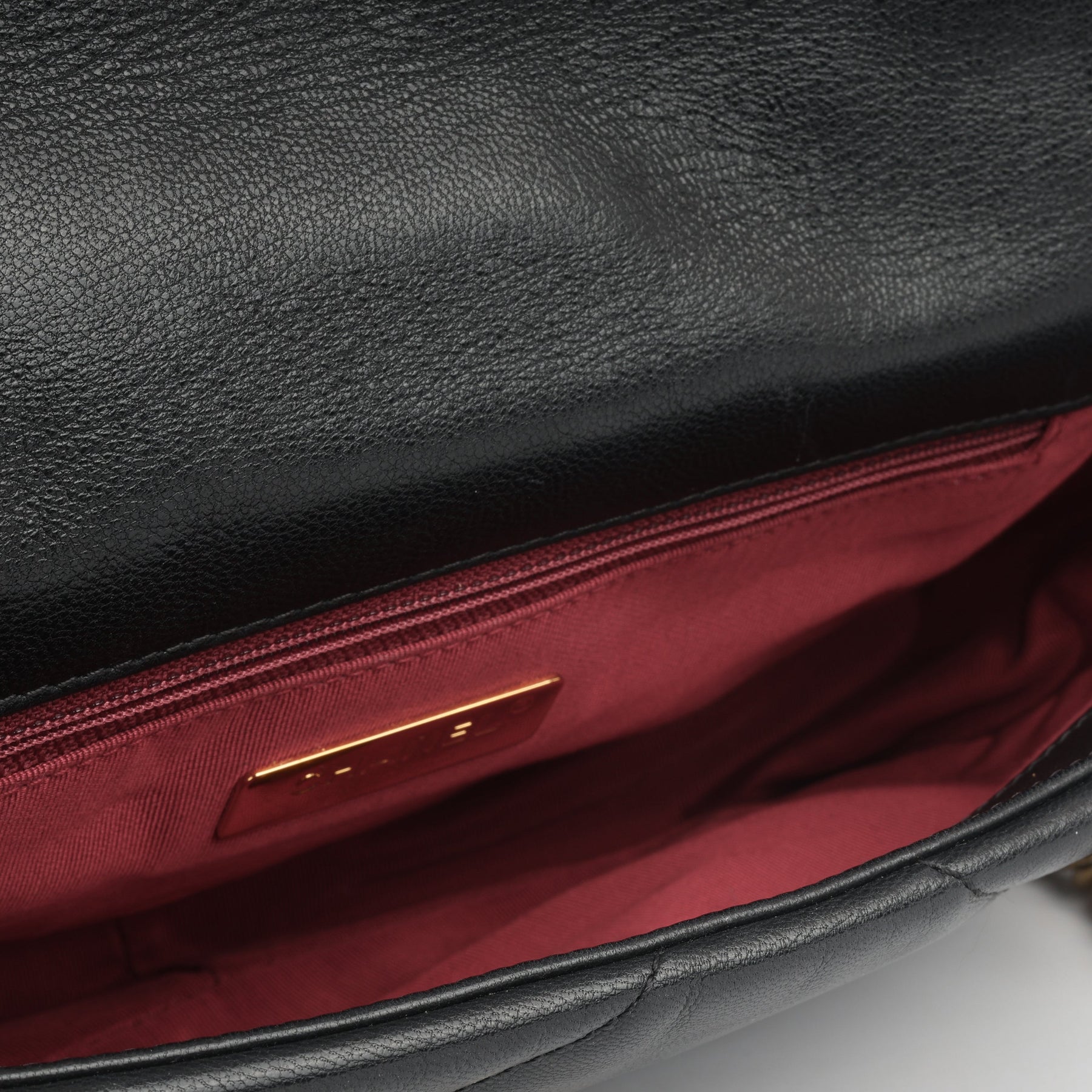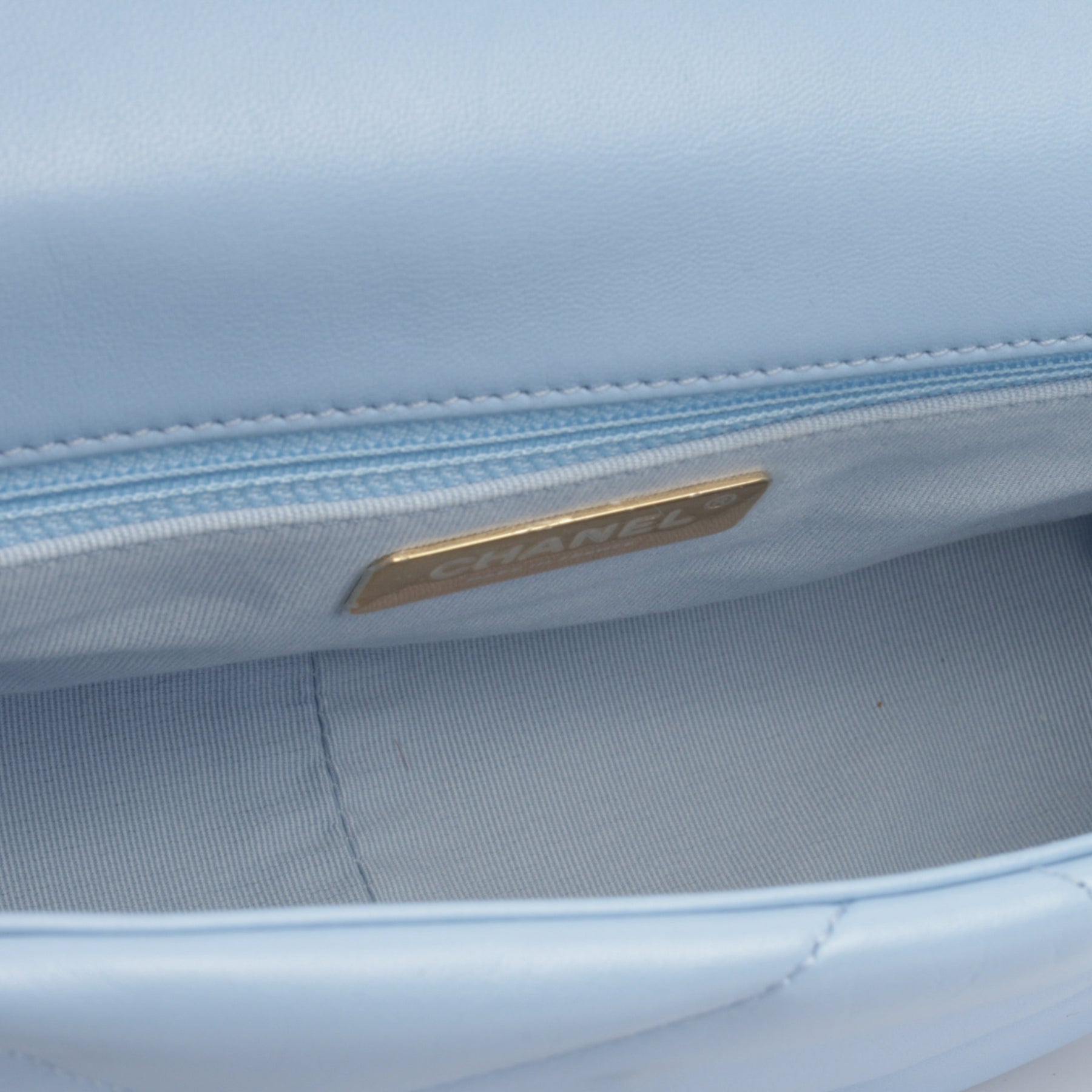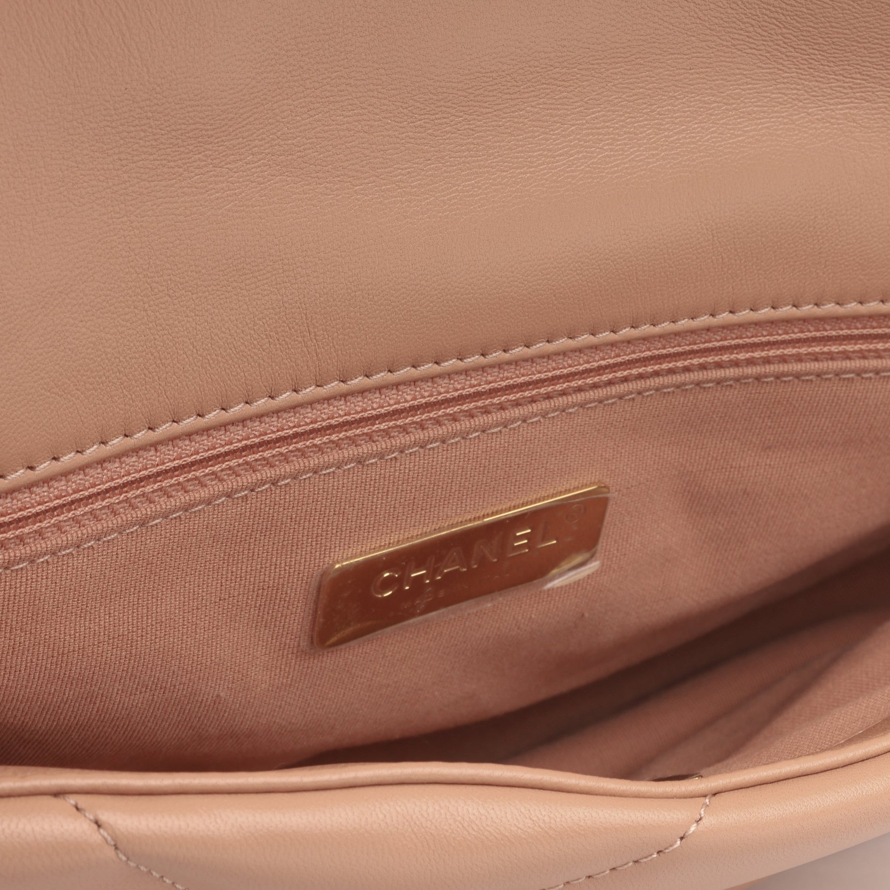 - ‘Chanel’ engraved in metal hardware plaque
