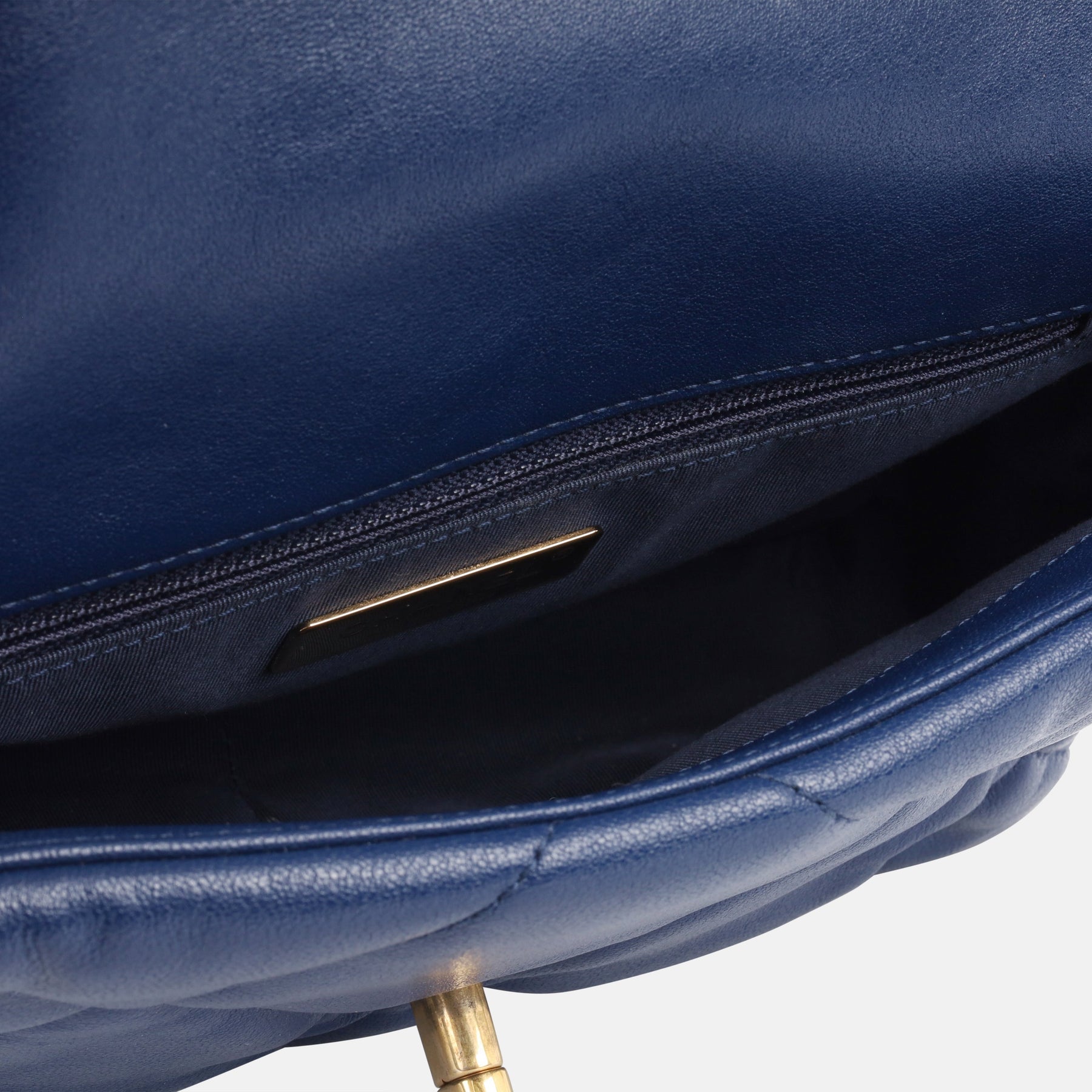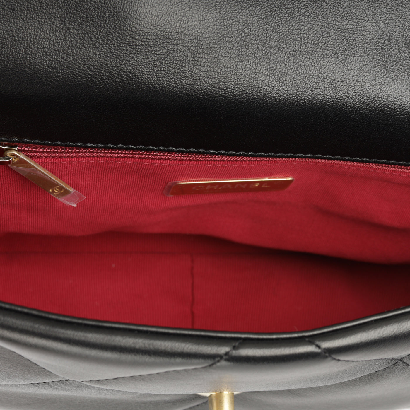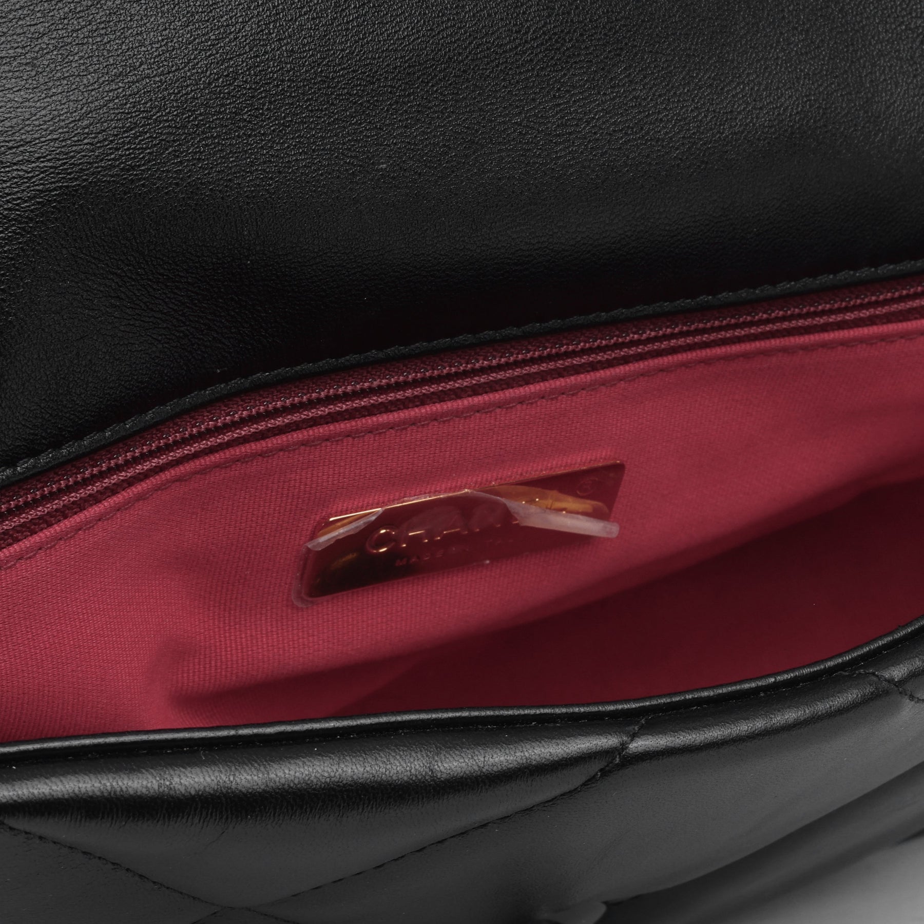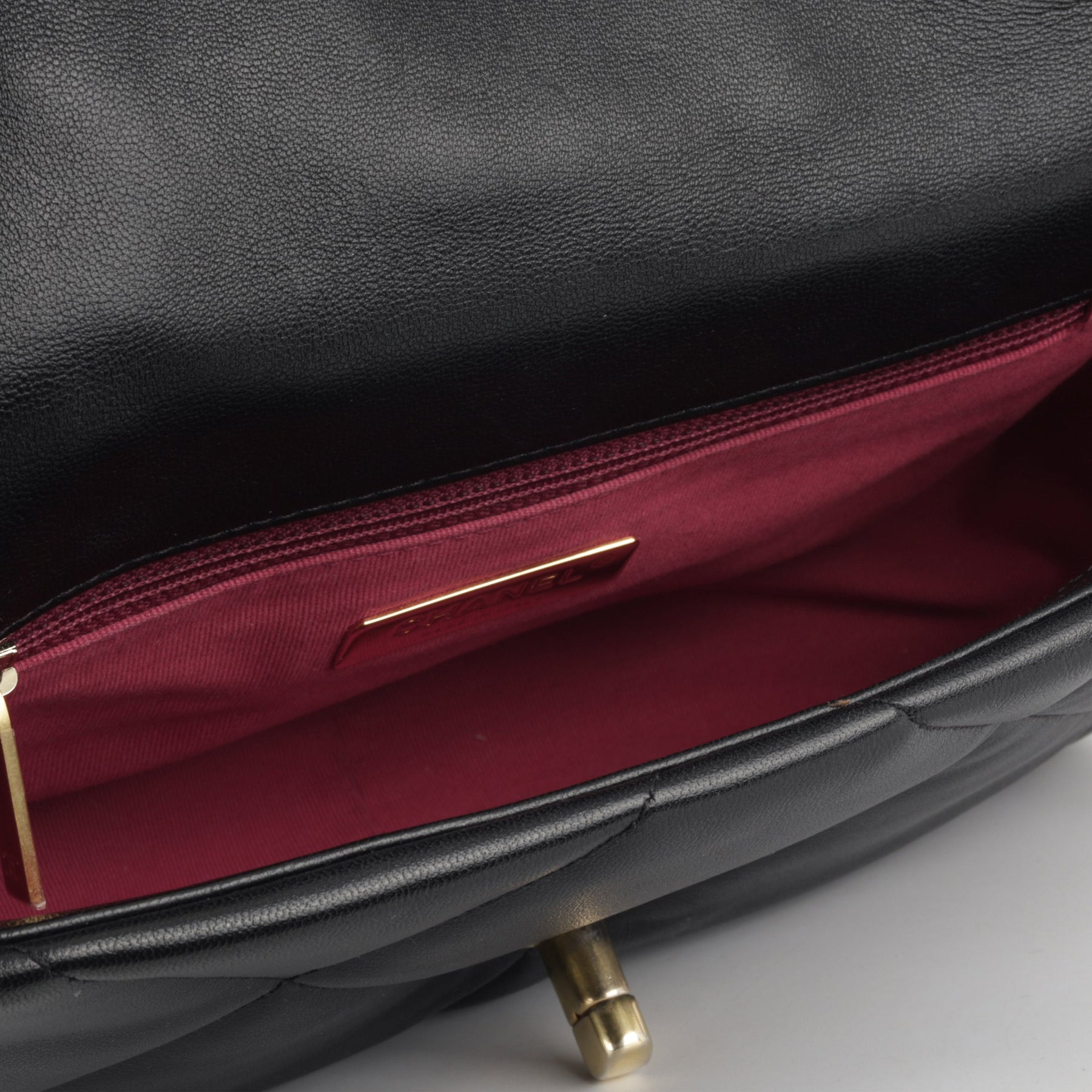 - ‘Chanel’ engraved in metal hardware plaque