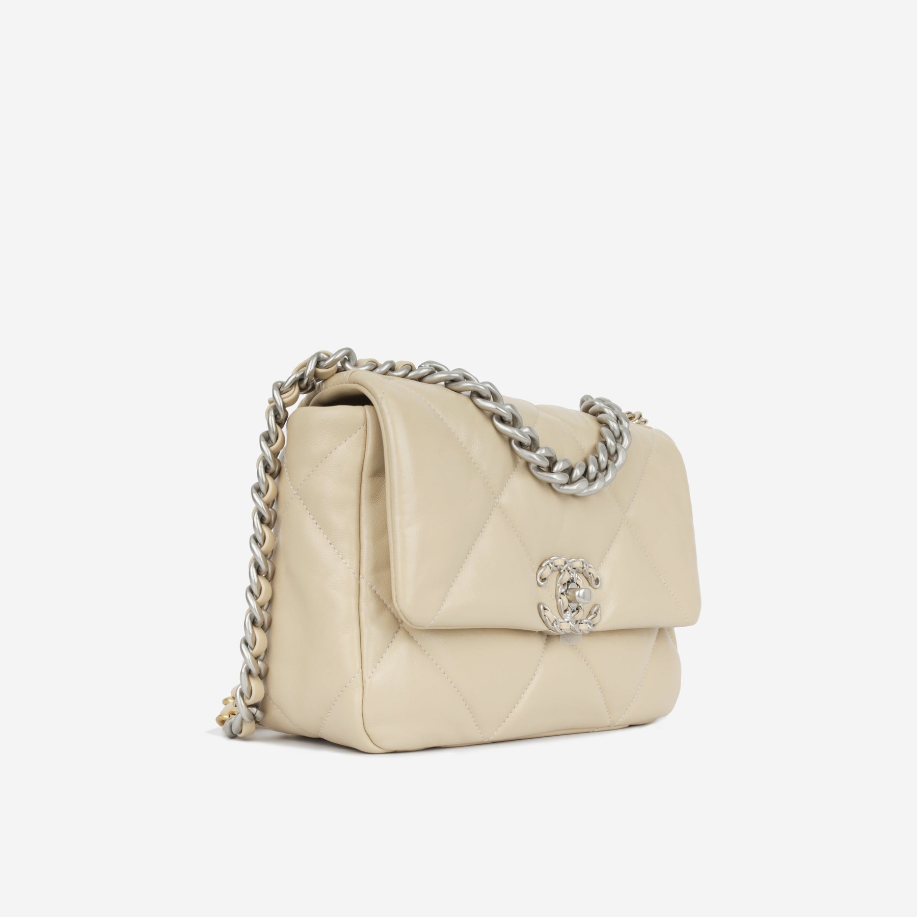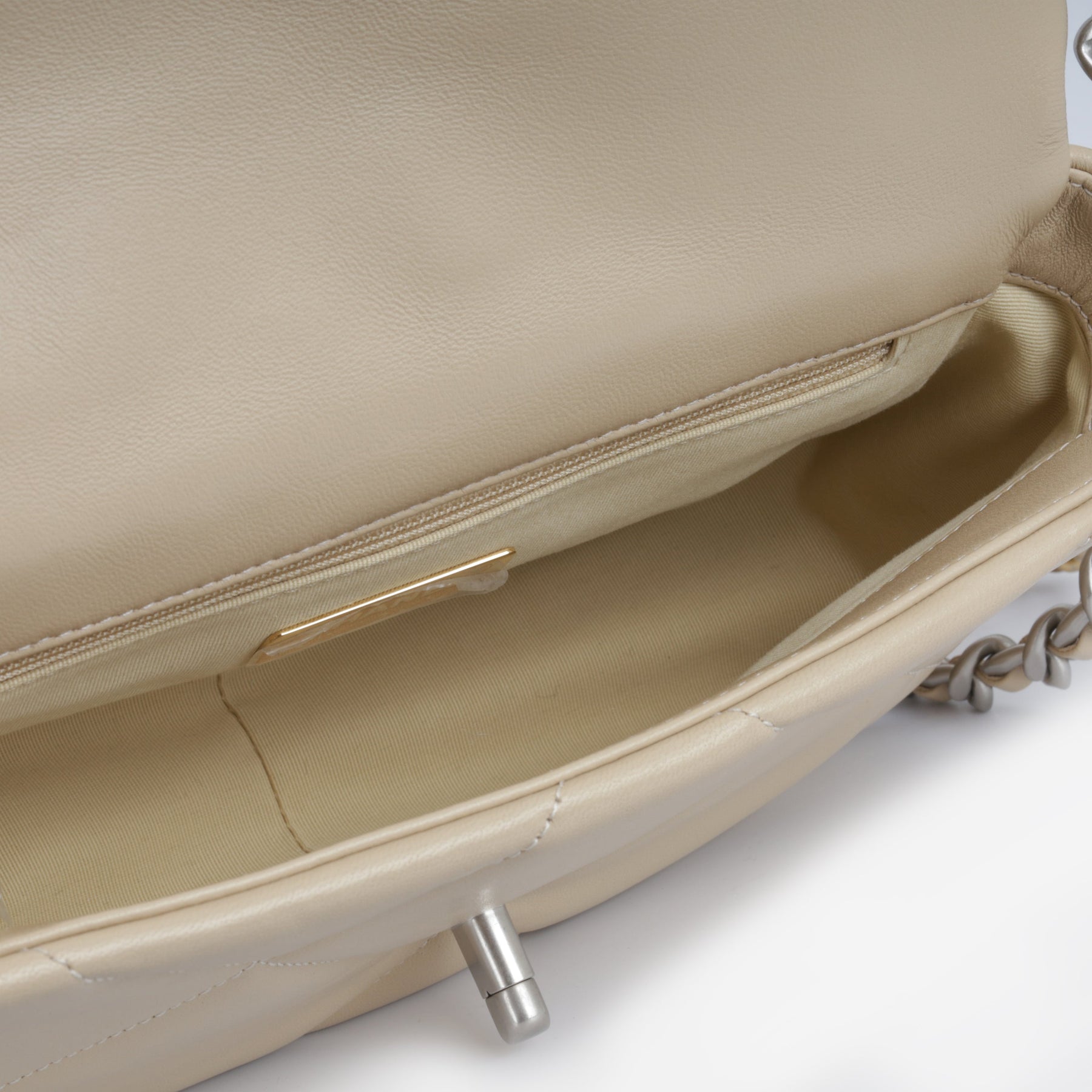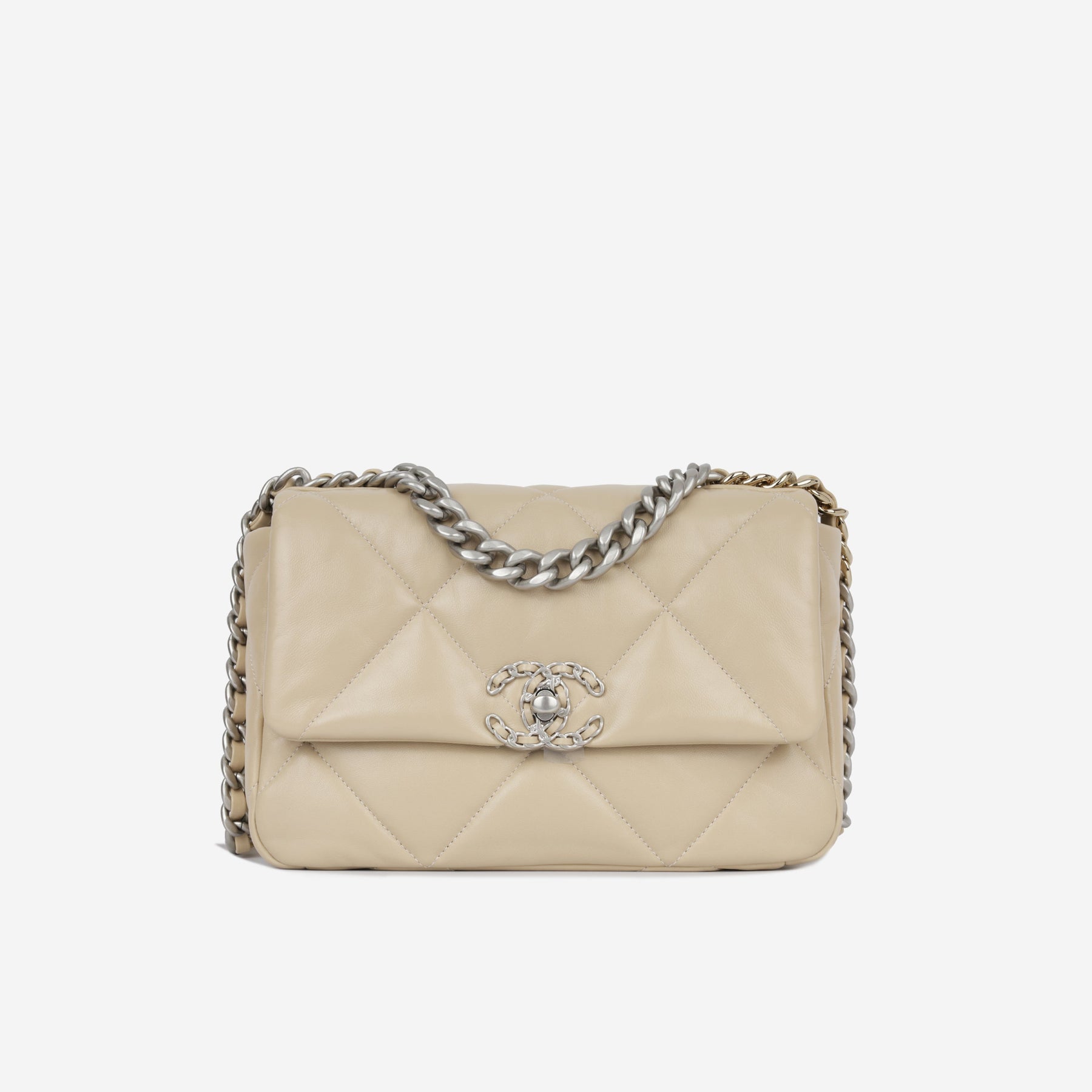 Regular price $2,170.00 Sale price $450.00 Save $1,720.00For timeless Parisian-chic there is no better investment than a Chanel flap bag. However, for something both classic and on-trend, the Chanel 19 Flap Bag ticks all boxes. This beige is unique and particularly sought after; and it will compliment a range of outfits in your wardrobe. The interwoven chain sits elegantly on your shoulder or doubled up on your arm.