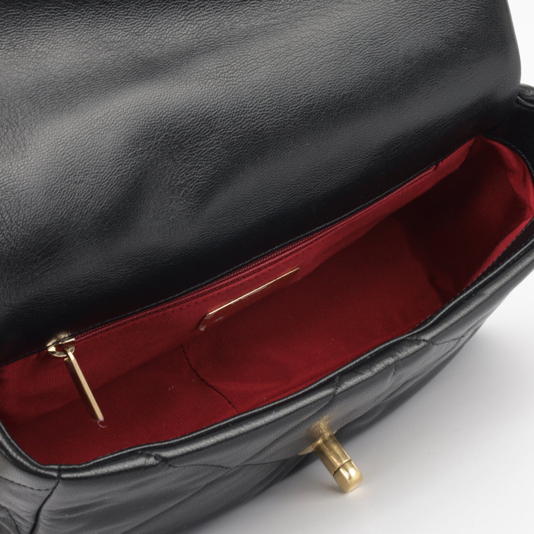 - Black lambskin leather exterior