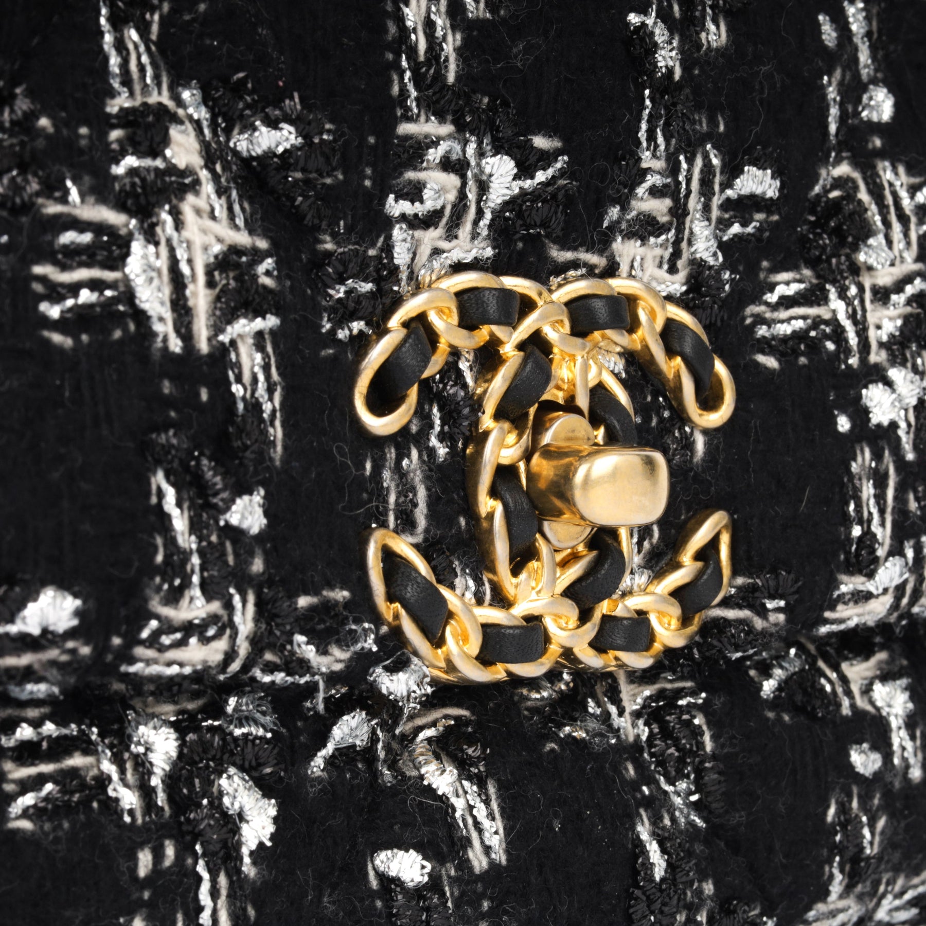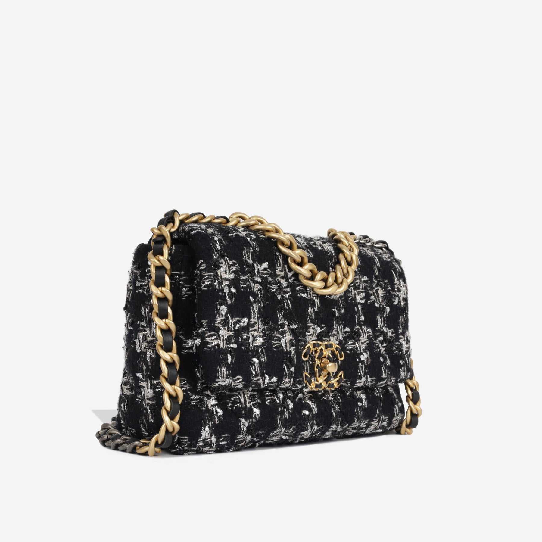 Regular price $2,550.00 Sale price $460.00 Save $2,090.00For timeless Parisian-chic there is no better investment than a Chanel flap bag. This particular Chanel 19 is crafted Chanel's bouclé tweed in a monochrome colour scheme. The interwoven chain sits elegantly on your shoulder or doubled up on your arm. Under the creative direction of Karl Lagerfeld, Chanel continues with its line of classic quilted bags.