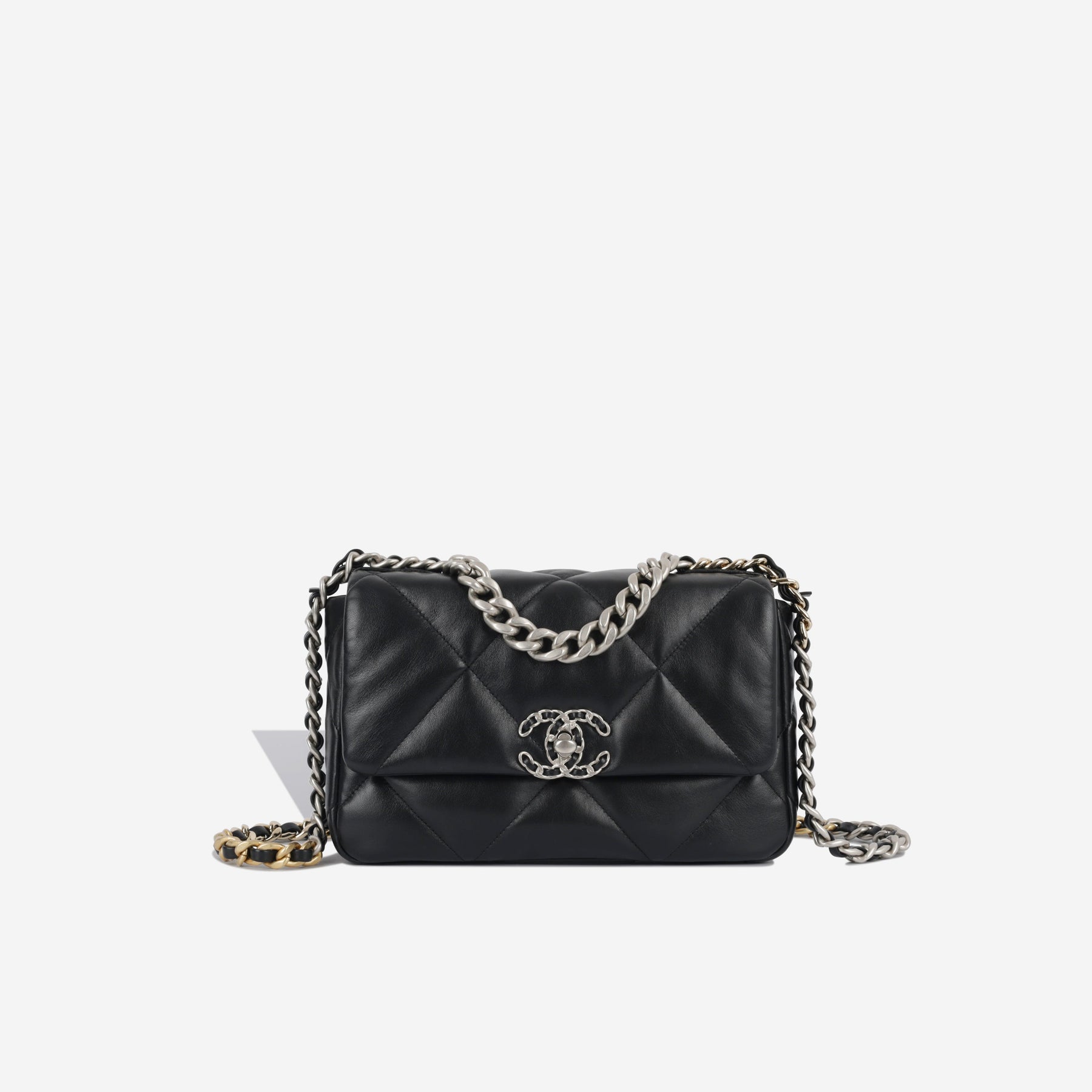 Regular price $2,270.00 Sale price $450.00 Save $1,820.00For timeless Parisian-chic there is no better investment than a Chanel flap bag. However, for something both classic and on-trend, the Chanel 19 Flap Bag ticks all boxes. You can't go wrong with Black Lambskin, with chic all black hardware. Its a bag that is particularly sought after; this classic bag that will compliment eNewthing in your wardrobe. The interwoven chain sits elegantly on your shoulder or doubled up on your arm.