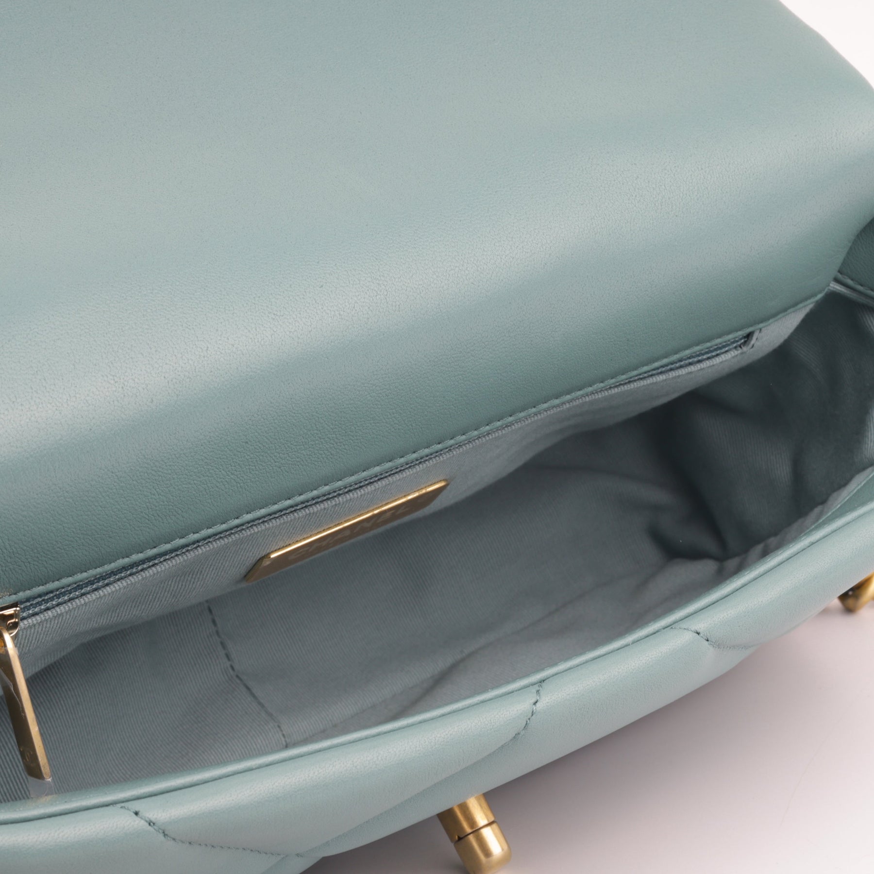 Regular price $2,690.00 Sale price $420.00 Save $2,270.00For timeless Parisian-chic there is no better investment than a Chanel flap bag. However, for something both classic and on-trend, the Chanel 19 Flap Bag ticks all boxes. This mint green shade is unique and sought after; and it will compliment a range of outfits in your wardrobe. The interwoven chain sits elegantly on your shoulder or doubled up on your arm.