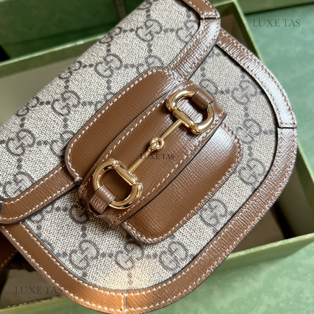 Regular price $1,240.00 Sale price $744.00 Save $496.00GG Supreme Fabric & Leather Handbag with Iconic Horsebit