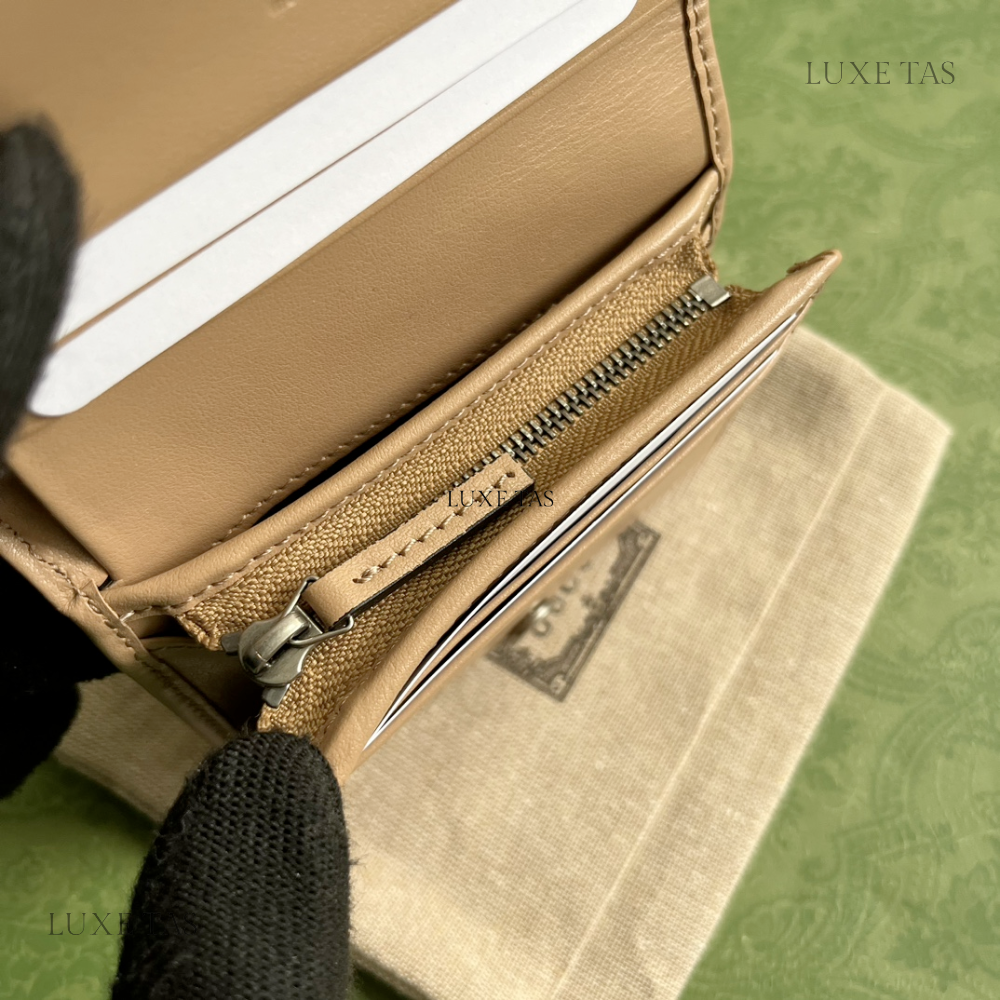- Inside: Six card slots, one flat pocket, one zip pocket with gusset