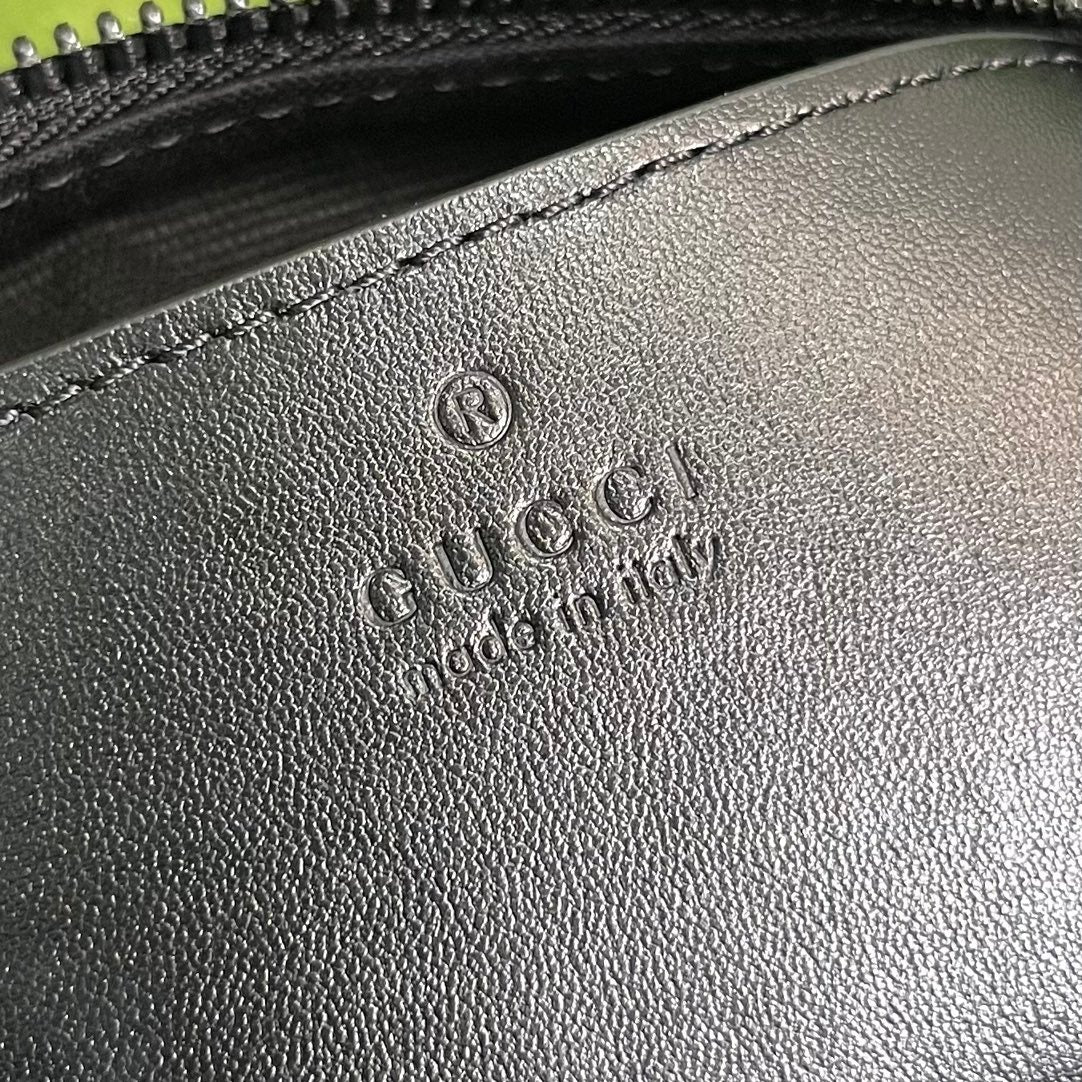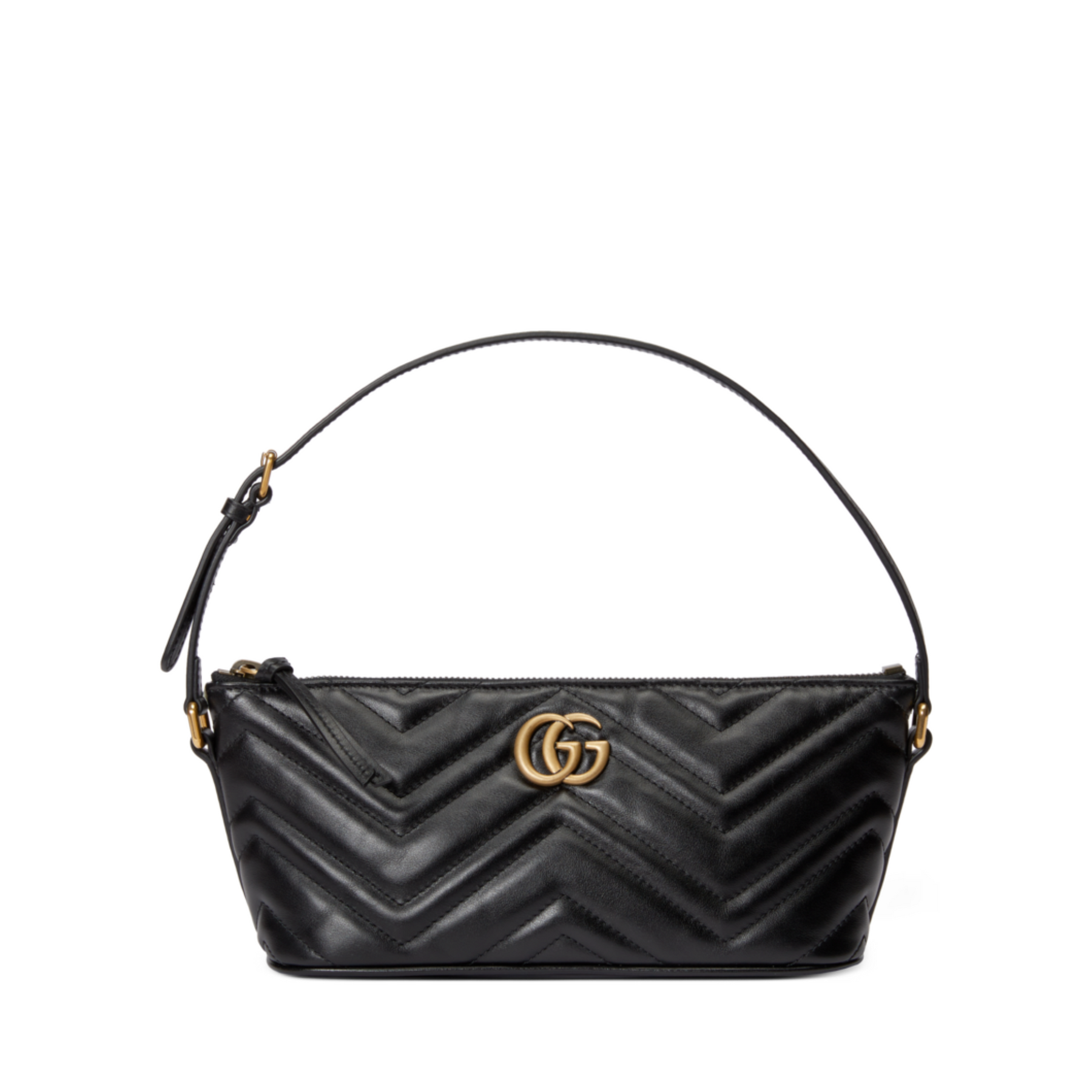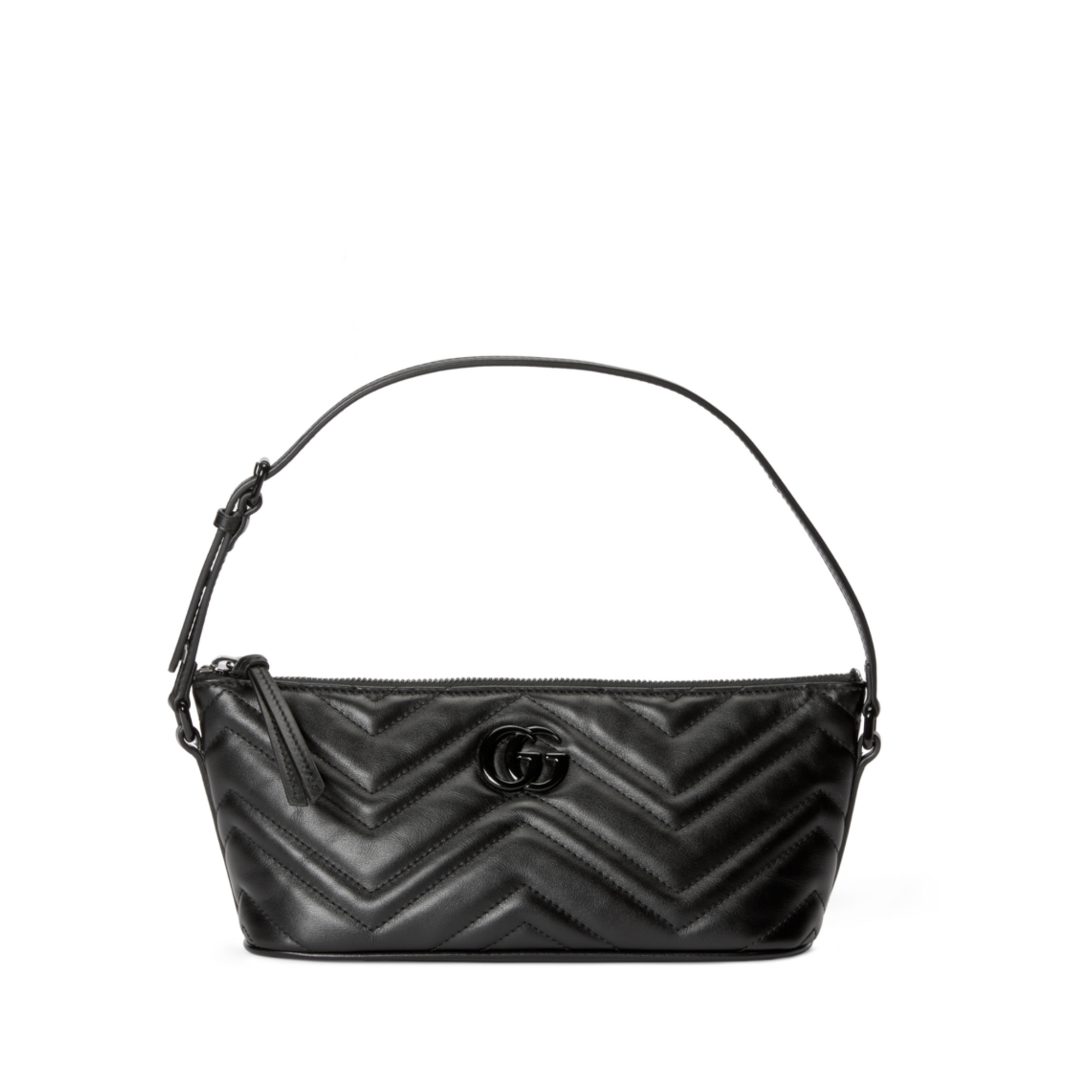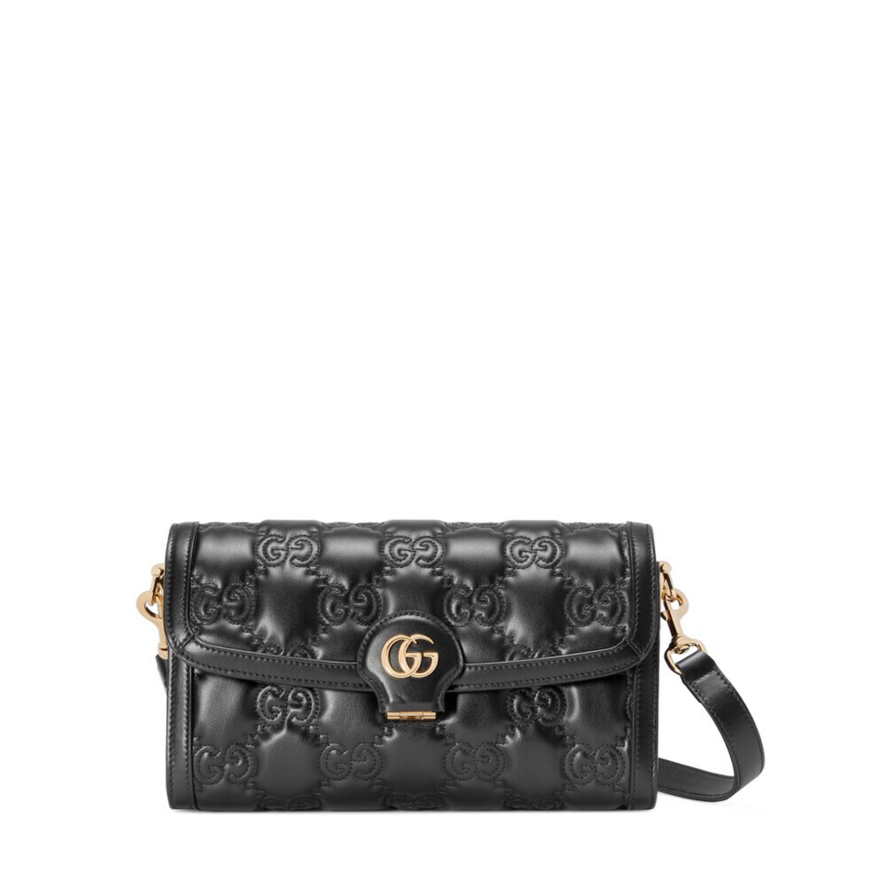 The Creative Director continues to showcase the versatility of matelassé leather with new and unique designs every season. This signature material, known for its super soft finish, takes on a textured geometric motif in the latest G collections, offering a modern take on the '90s logo trend. Featuring two interchangeable straps, this small shoulder bag comes in classic black and is a perfect addition to any outfit.