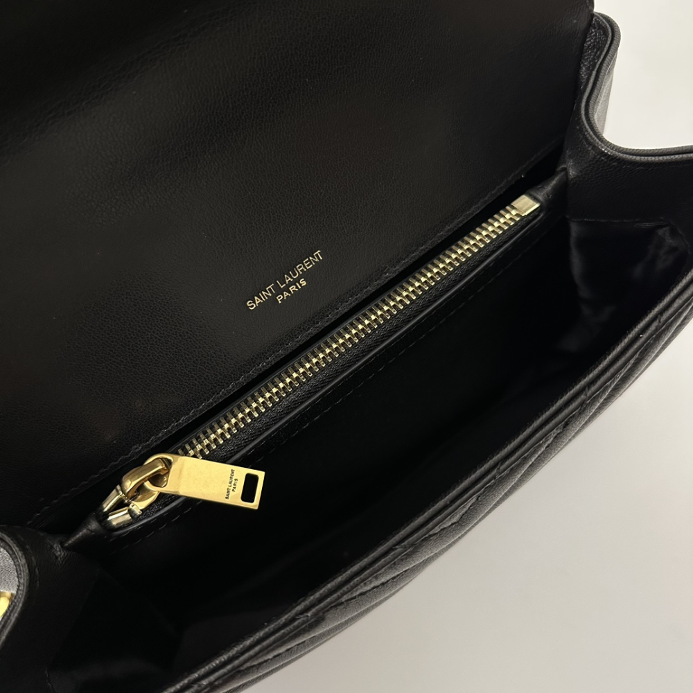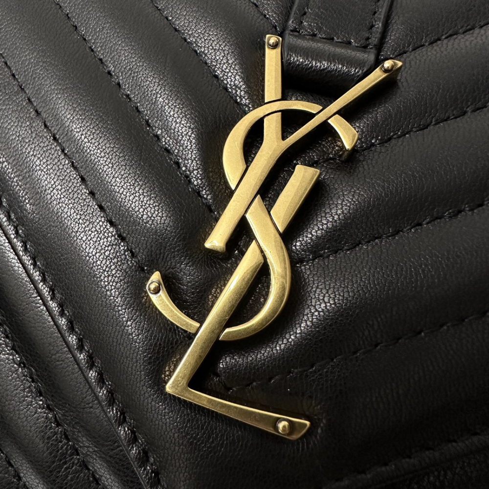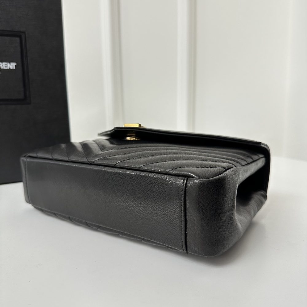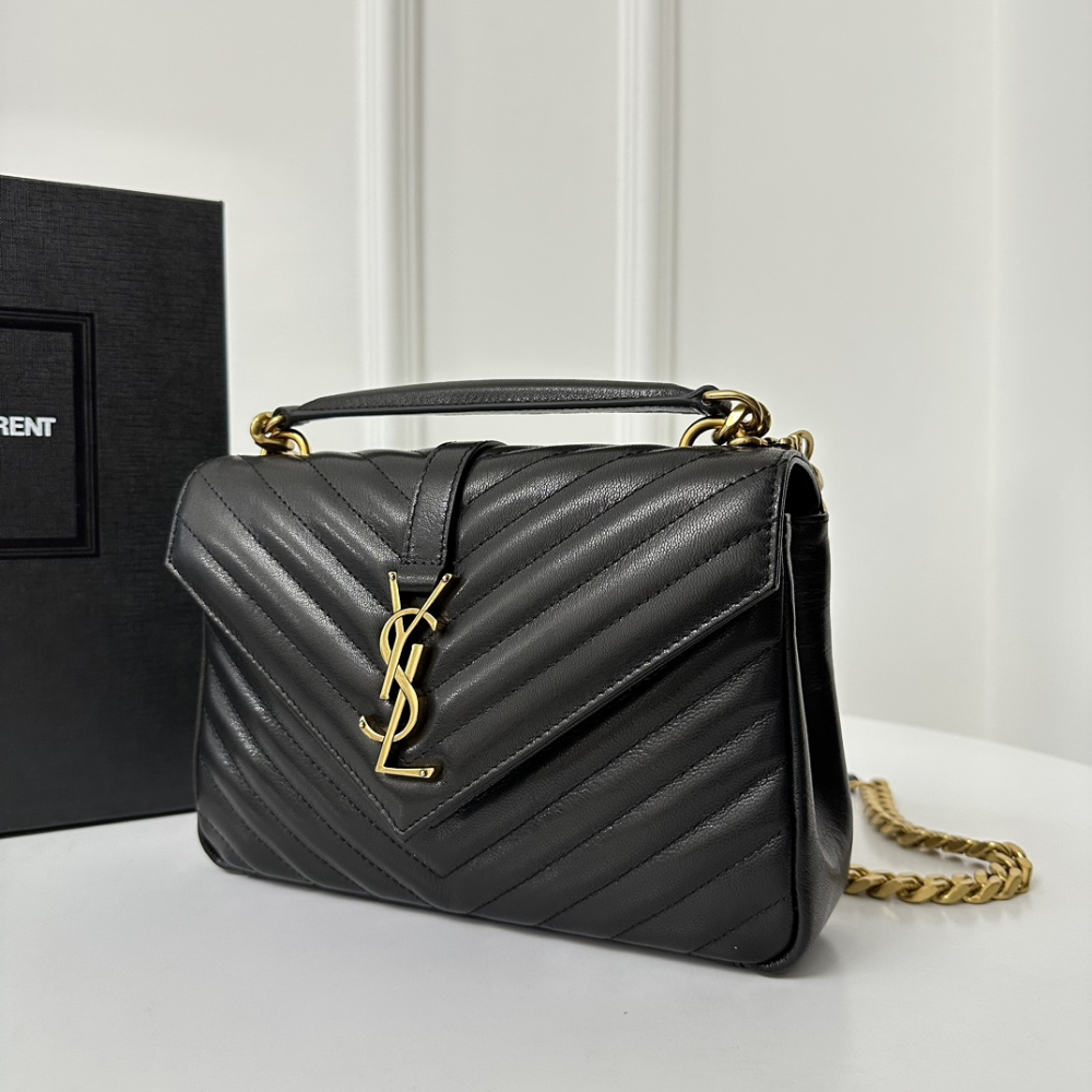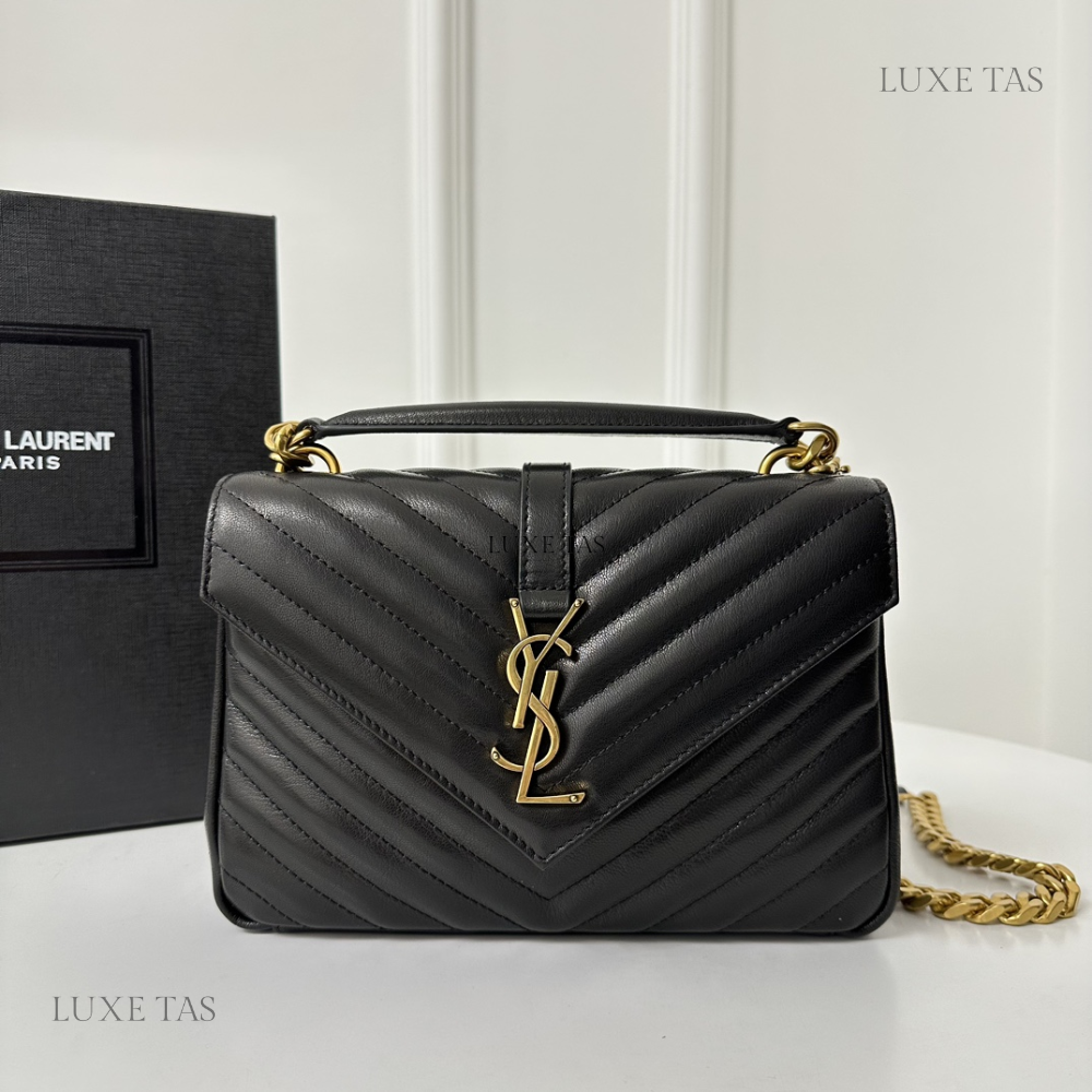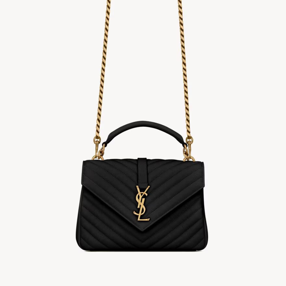 Elevate your everyday look with the College Medium Quilted Leather Handbag, crafted from soft lambskin with signature chevron quilt overstitching and finished with elegant gold hardware and the iconic Cassandre logo. Designed for both style and function, this leather satchel for women features dual compartments separated by a zipped pocket and a convenient back slot.