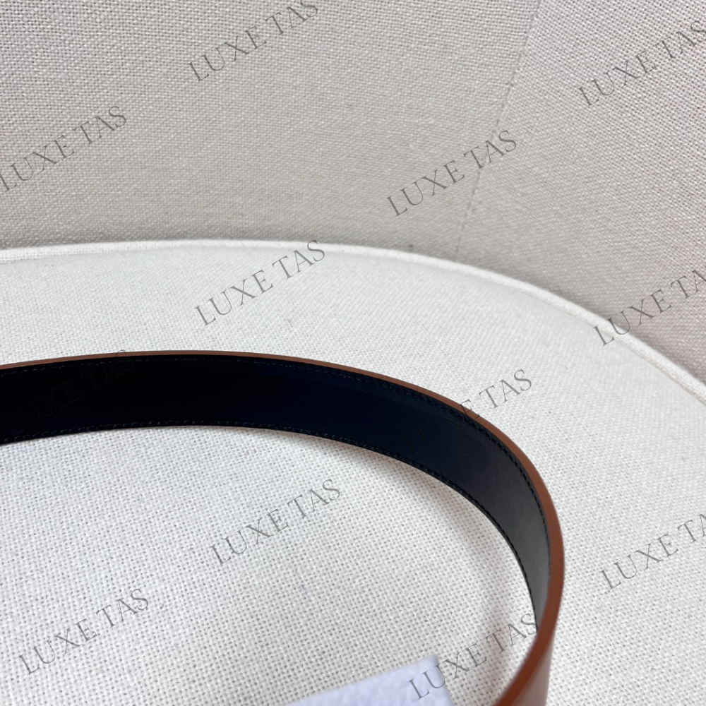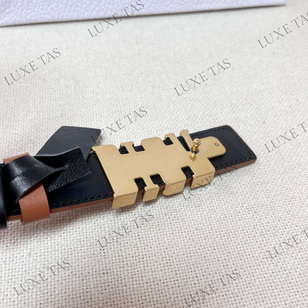 Achieve a bold and sophisticated aesthetic with the D-Fence reversible belt, offering versatility with its removable buckle. Crafted in smooth calfskin, it showcases a golden saddle hue on one side and a sleek black shade on the other. The standout feature is the antique gold-finish metal Dior buckle, adding a touch of glamour. Additionally, the belt includes two removable loops that can be styled in a tonal or contrasting manner. Enhancing the waist with grace, this belt effortlessly complements jeans, skirts, and dresses for a polished ensemble.