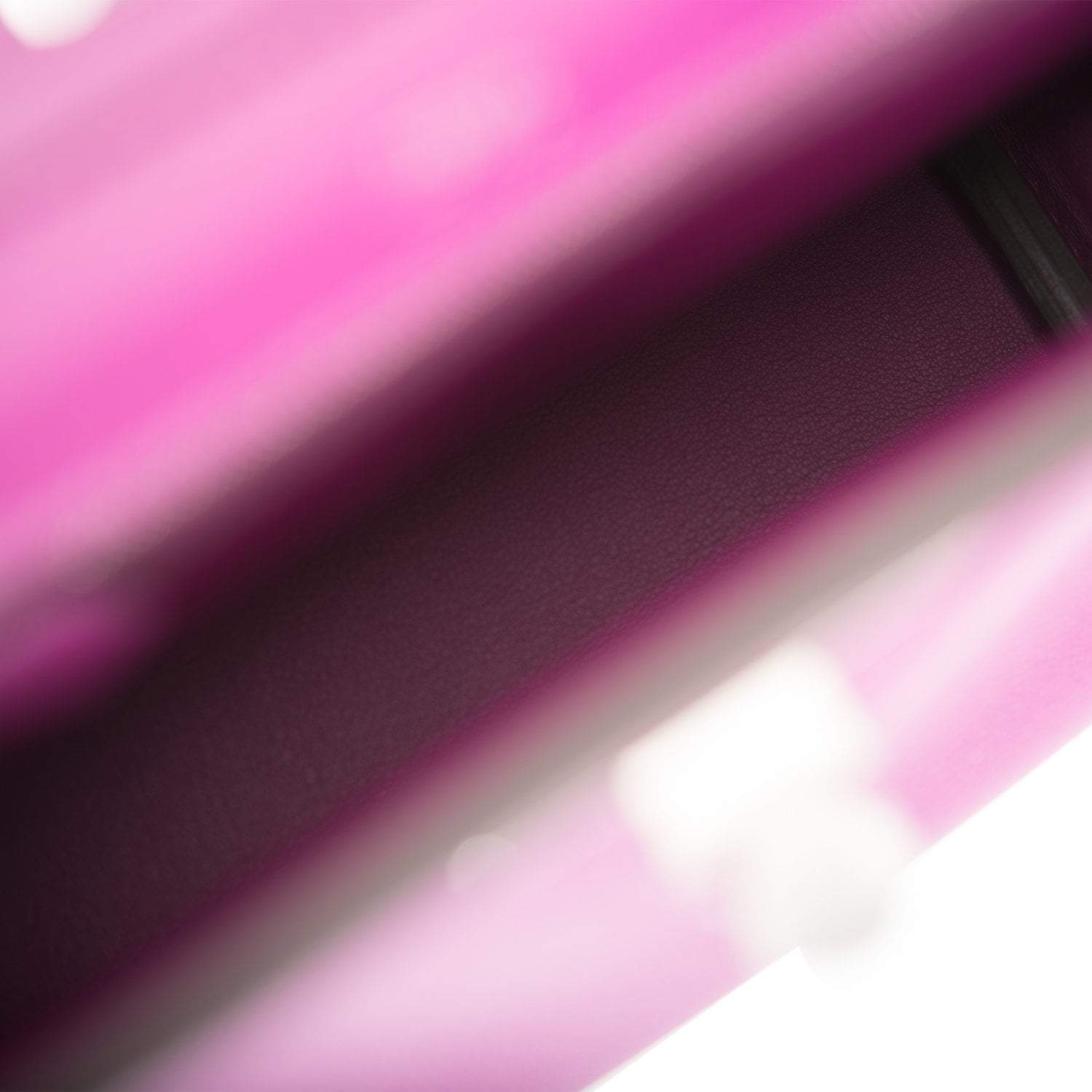 Regular price $1,362.50 Sale price $817.50 Save $545.00This Mini 24/24 bag is crafted in Anemone Evercolor and Swift leather with Palladium hardware. It features tonal stitching, a front turn-lock closure, an open rear pocket, a single flap top handle, and a removable strap for versatile wear.