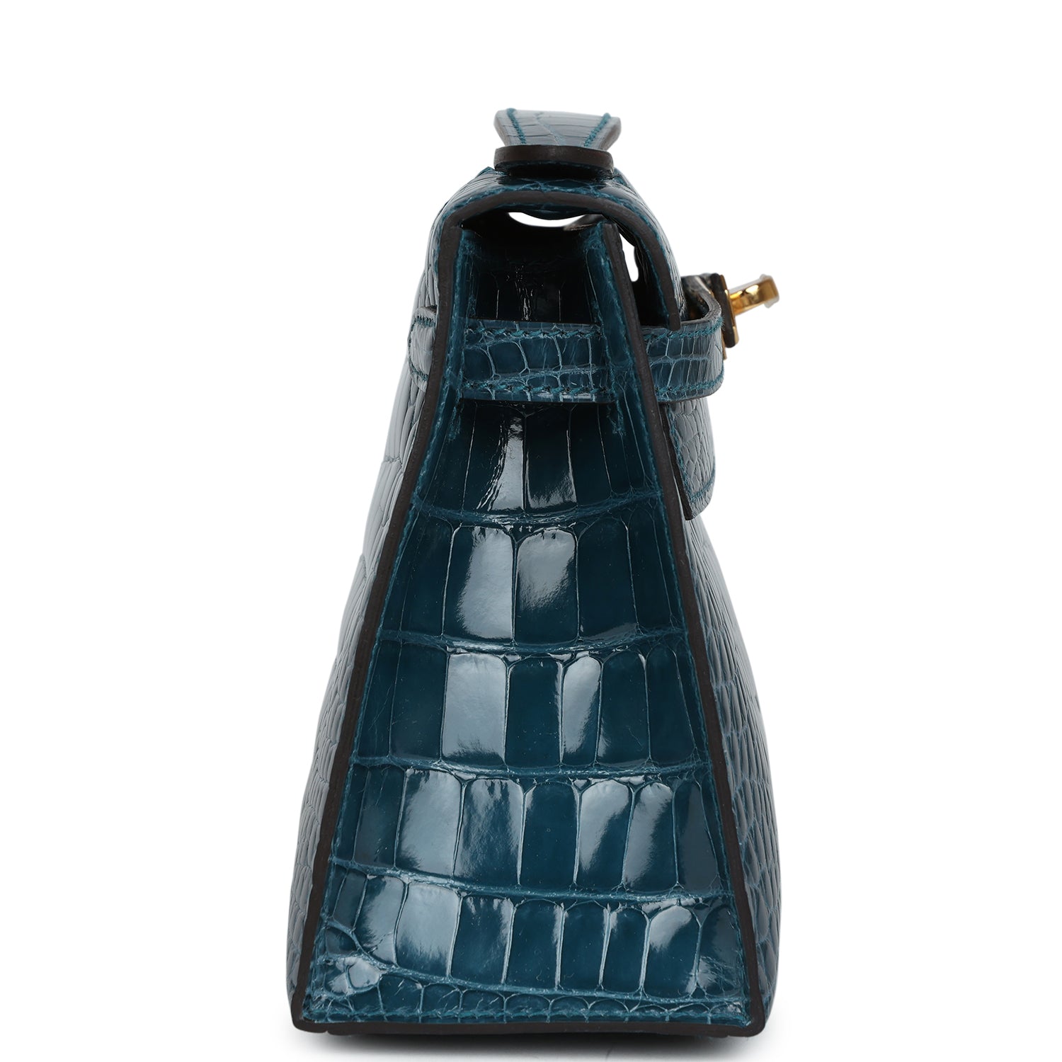 Hermes Kelly Pochette Vert Bosphore Shiny Alligator Gold Hardware