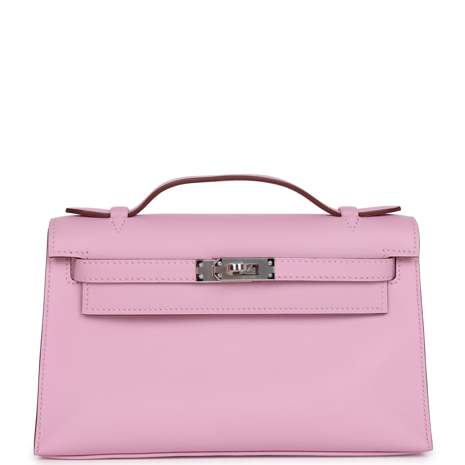 Hermes Kelly Pochette Rose Azalee Swift Palladium Hardware