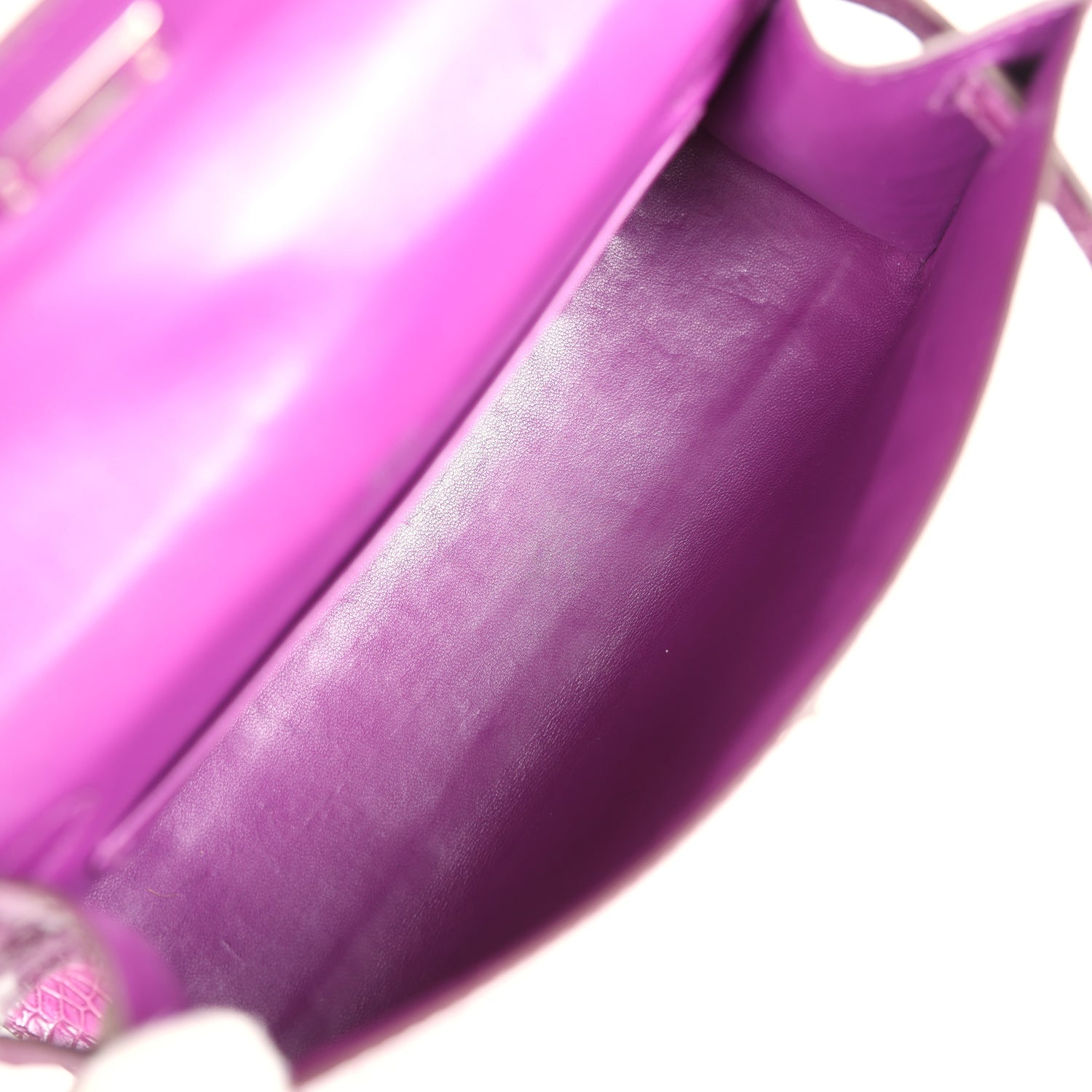 Hermes Kelly Pochette Violet Shiny Niloticus Crocodile Palladium Hardware