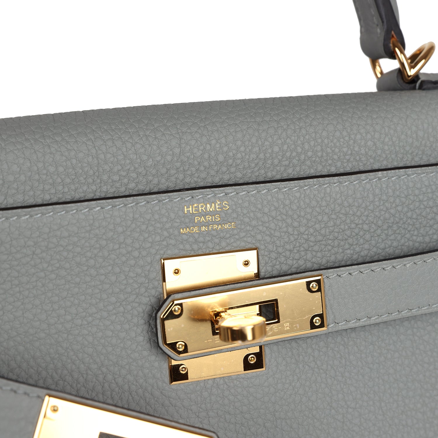 Hermes Kelly Retourne 28 Gris Mouette Togo Gold Hardware