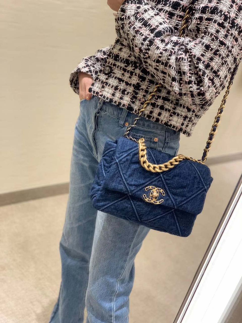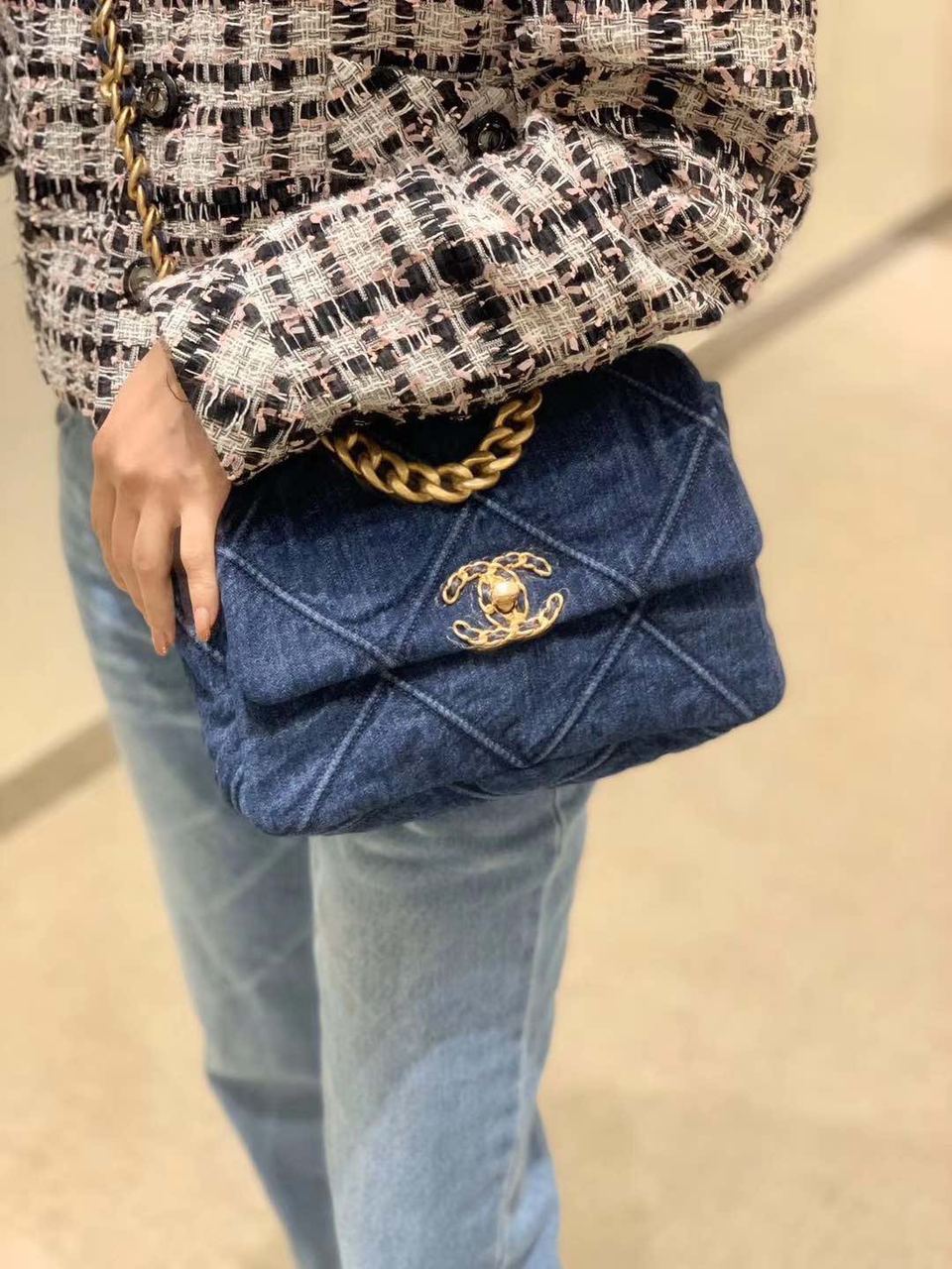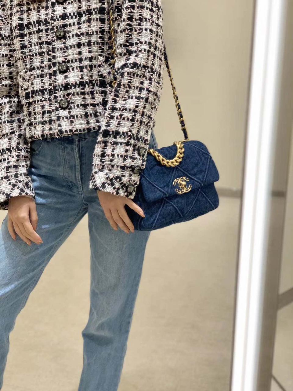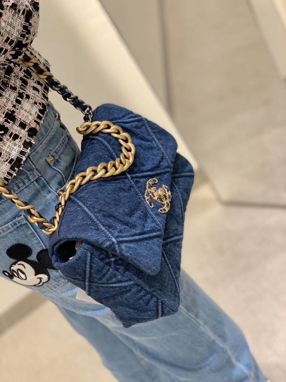 Chanel 19 Flap Bag 26cm Goatskin Leather Spring/Summer Act 1 Collection, Blue Jean