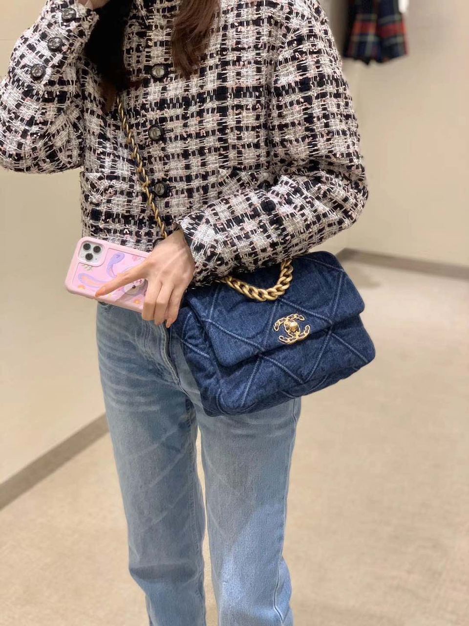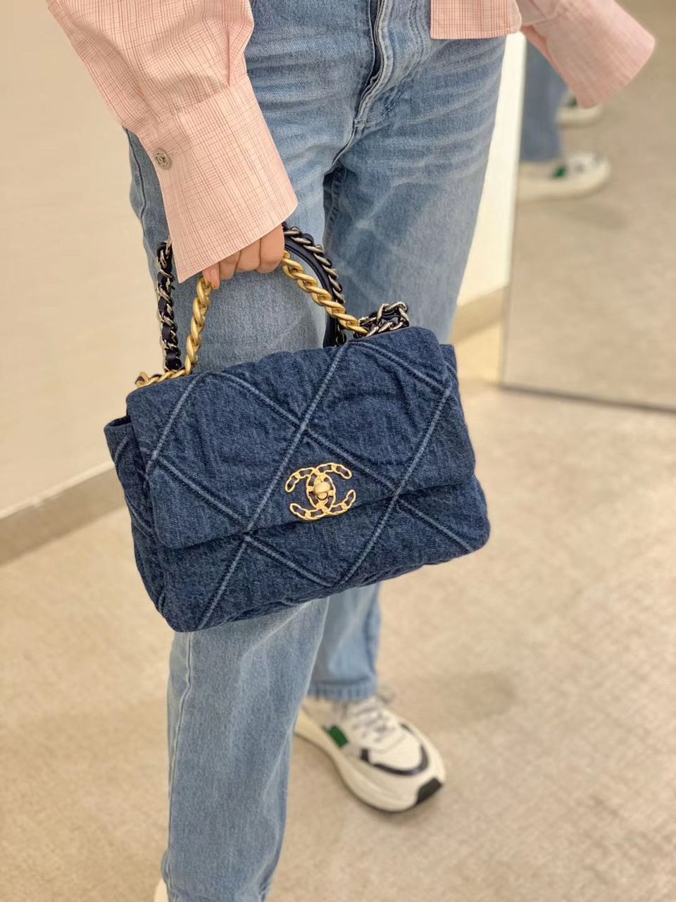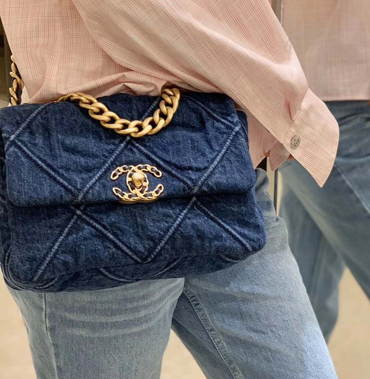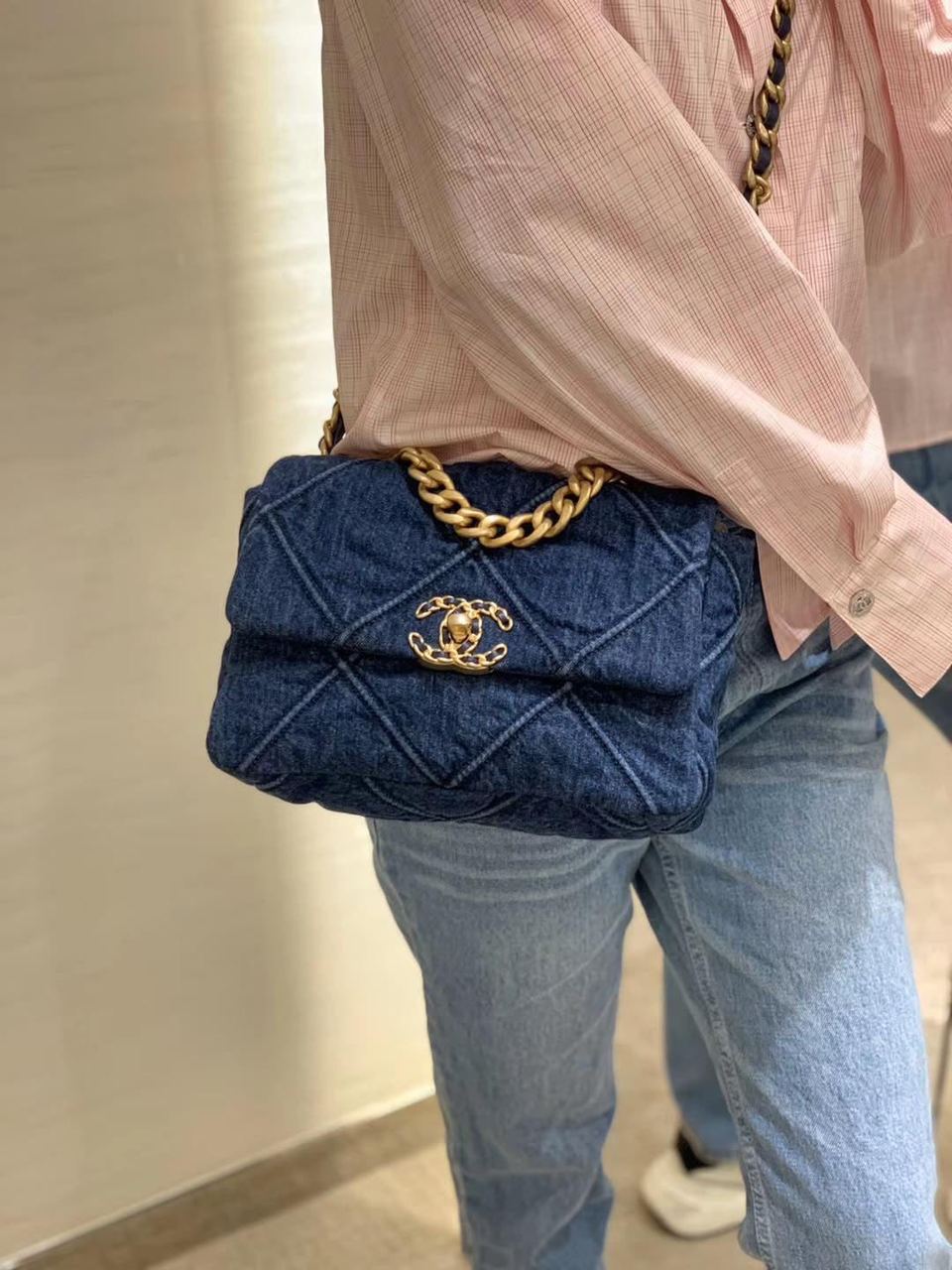 Chanel 19 Flap Bag 26cm Goatskin Leather Spring/Summer Act 1 Collection, Blue Jean