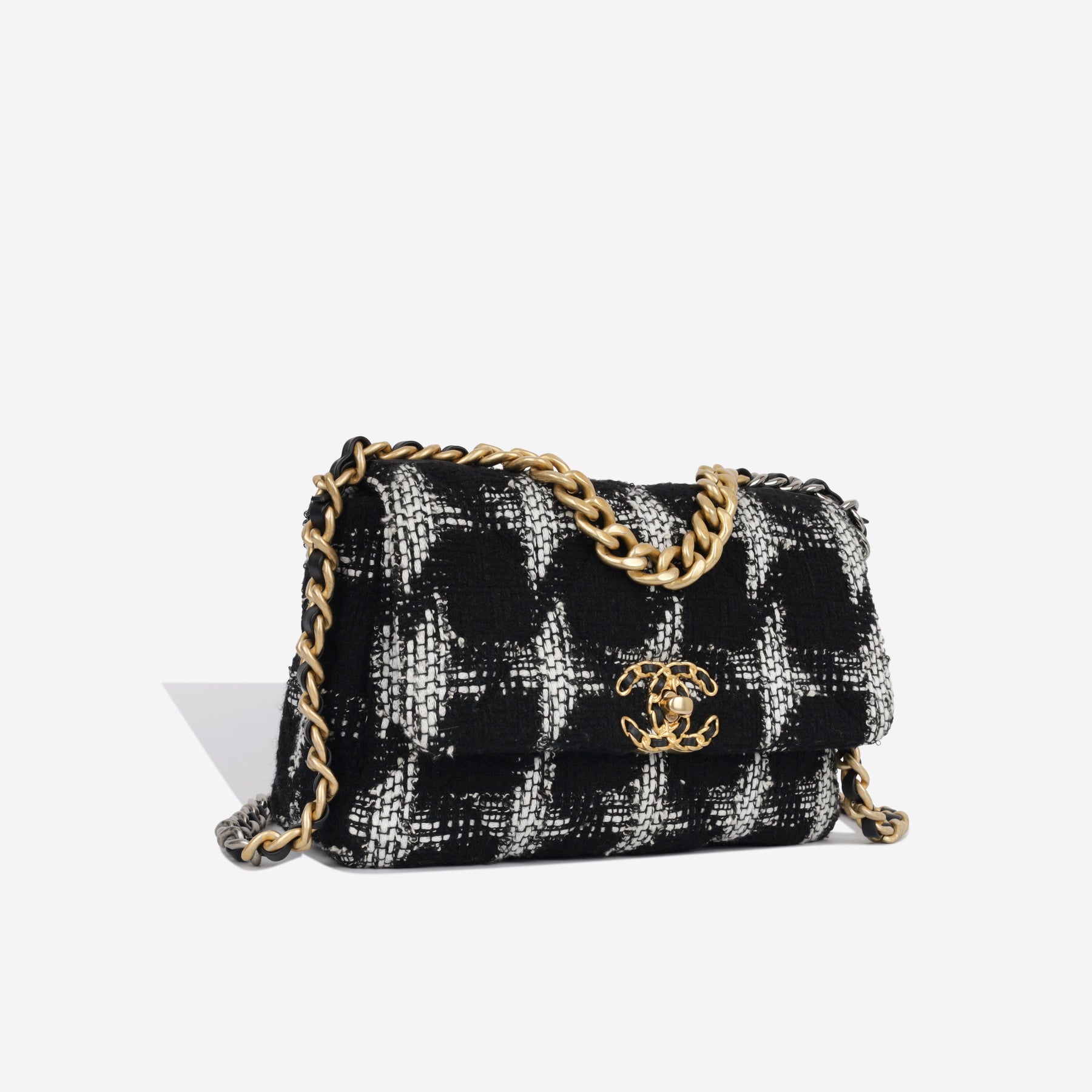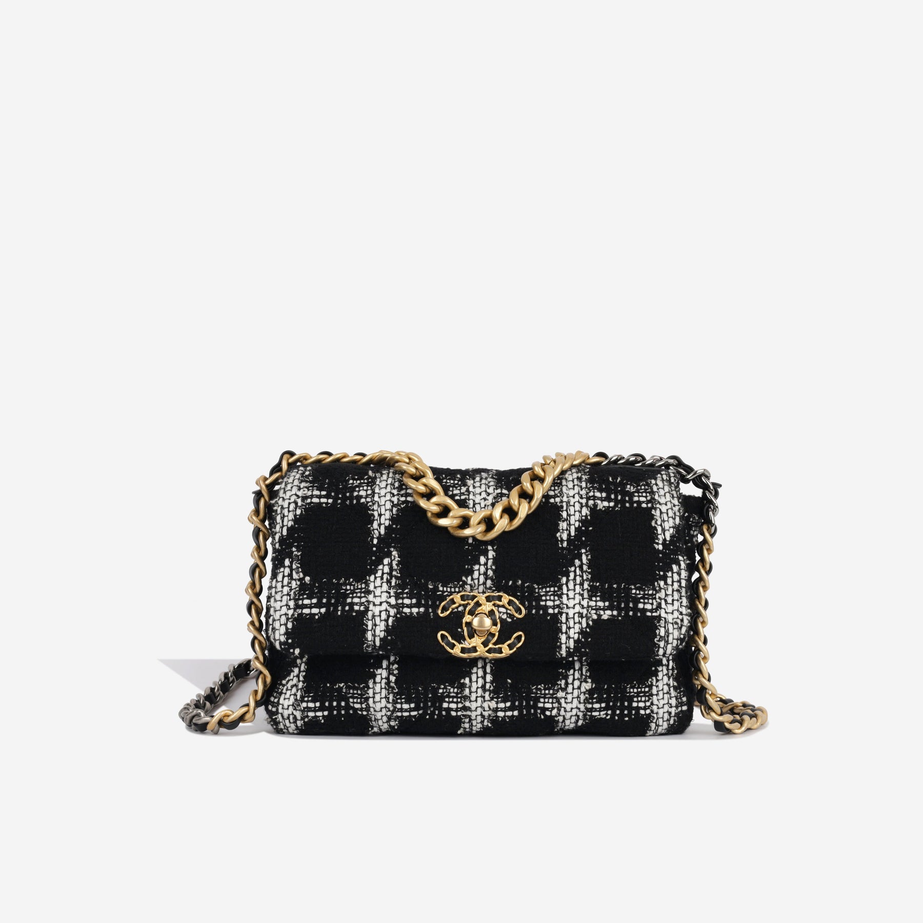 Regular price $2,660.00 Sale price $420.00 Save $2,240.00For timeless Parisian-chic there is no better investment than a Chanel flap bag. This particular Chanel 19 from the 20C Collection and is crafted Chanel's iconic Tweed and Ribbon in a beautiful Black & White Houndstooth pattern. Perfect for any monochromatic look. The interwoven chain sits elegantly on your shoulder or doubled up on your arm. Under the creative direction of Karl Lagerfeld, Chanel continues with its line of classic quilted bags. Style with absolutely everything...really!