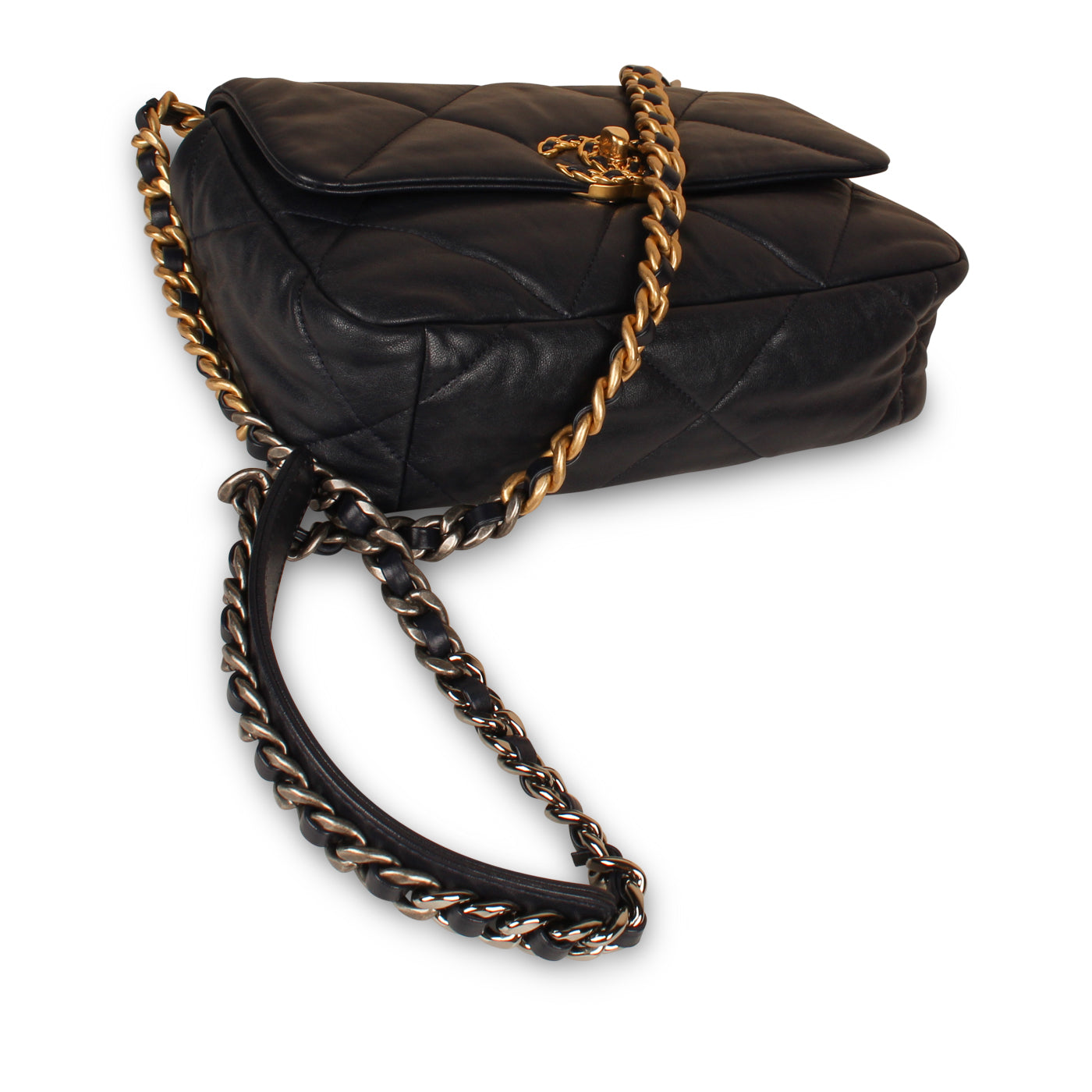 Regular price $2,790.00 Sale price $460.00 Save $2,330.00For timeless Parisian-chic there is no better investment than a Chanel flap bag. However, for something both classic and on-trend, the Chanel 19 Flap Bag ticks all boxes and is quite possibly the most sought after bag in the world at this moment. Constructed from buttery soft black lambskin and paired with two-tone hardware, both Gold and Ruthenium, this icon is a real statement piece. The interwoven chain sits elegantly on your shoulder or doubled up on your arm. Under the creative direction of Karl Lagerfeld, Chanel continues with its line of classic quilted bags. Style with absolutely everything...really!