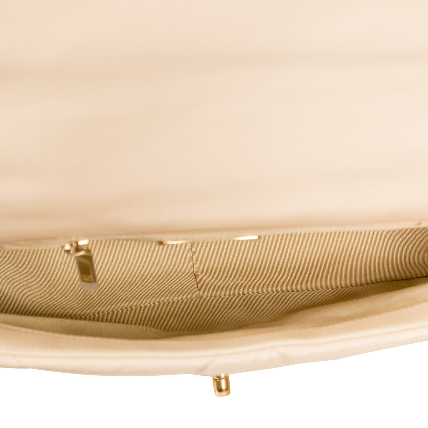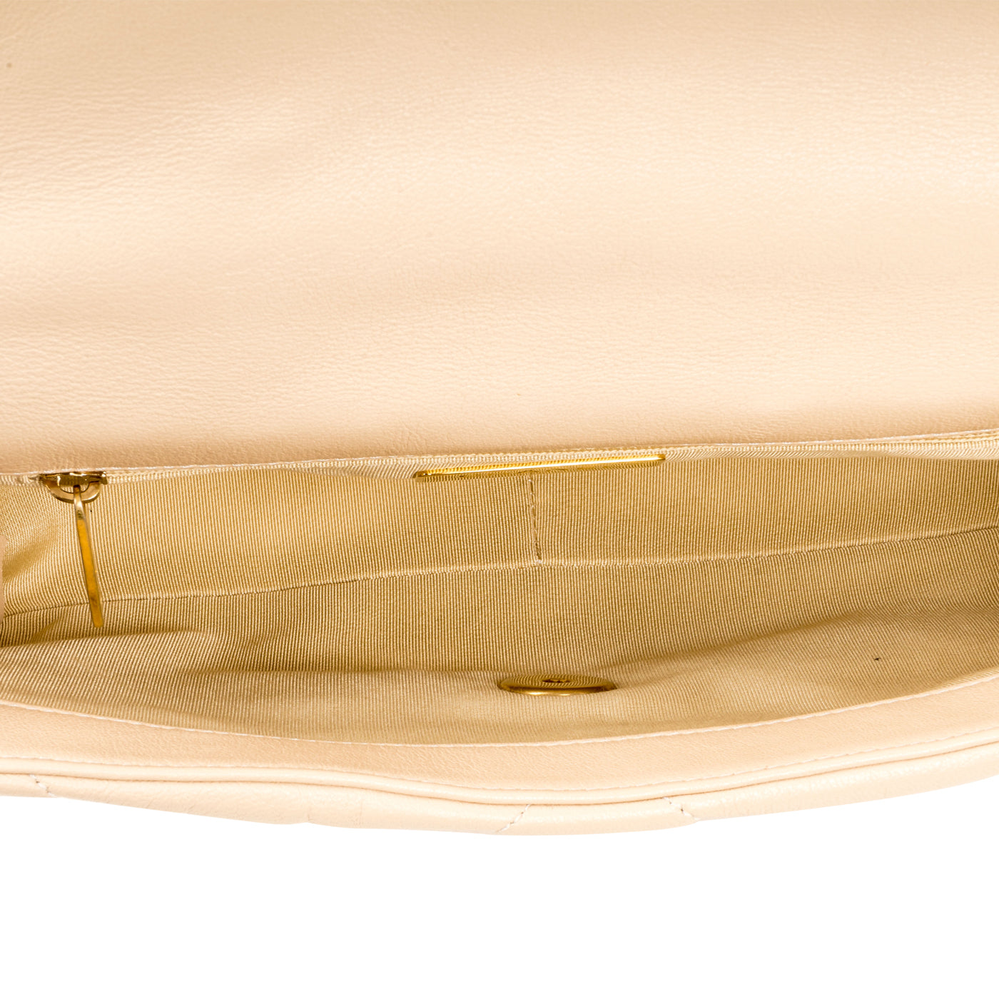 Regular price $2,880.00 Sale price $440.00 Save $2,440.00For timeless Parisian-chic there is no better investment than a Chanel flap bag. However, for something both classic and on-trend, the Chanel 19 Flap Bag ticks all boxes and is quite possibly the most sought after bag in the world at this moment. Constructed from buttery soft beige lambskin and paired with two-tone hardware, both Gold and Ruthenium, this icon is a real statement piece. The interwoven chain sits elegantly on your shoulder or doubled up on your arm. Under the creative direction of Karl Lagerfeld, Chanel continues with its line of classic quilted bags. Style with absolutely everything...really!