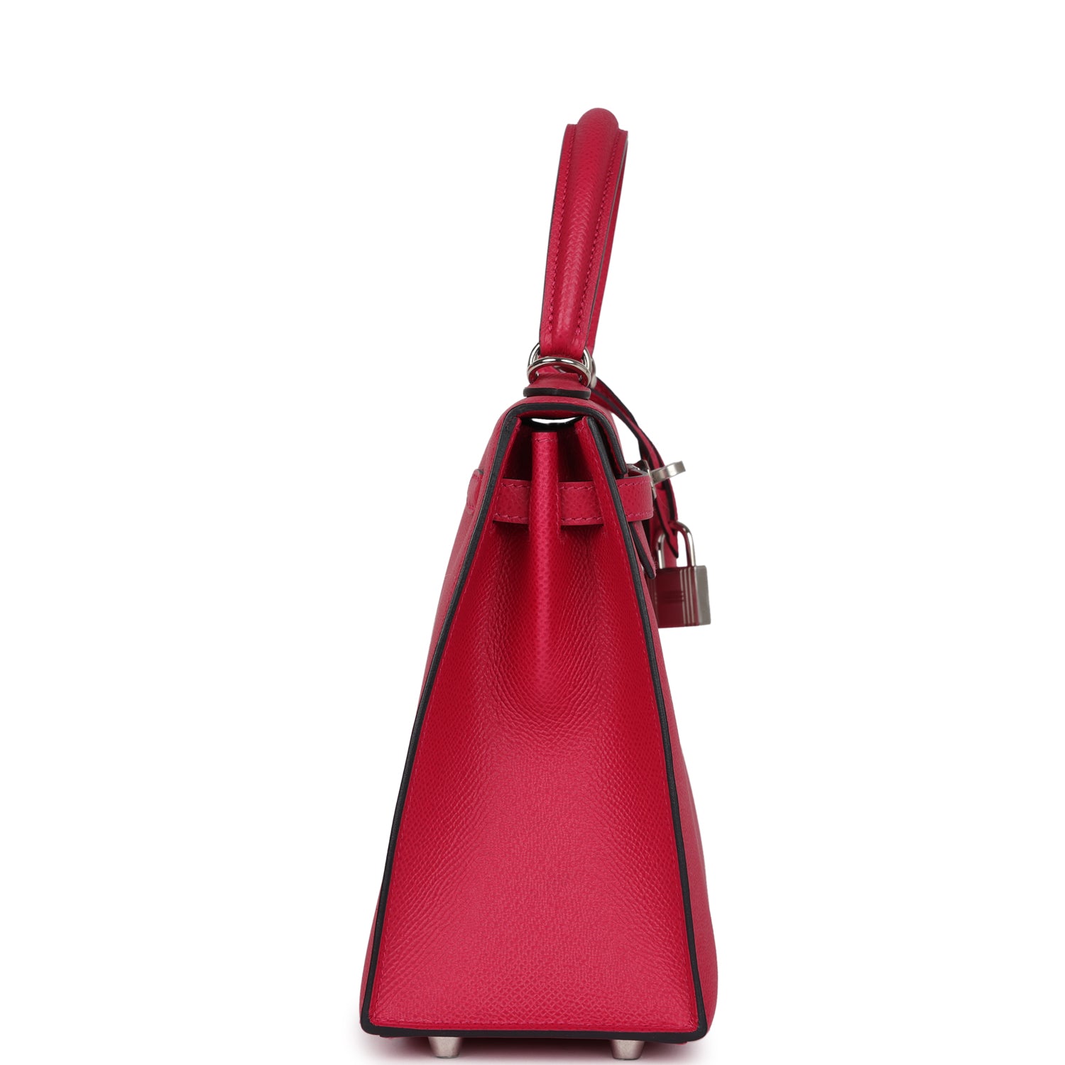 Regular price $1,925.00 Sale price $1,155.00 Save $770.00This Verso Kelly, in the Sellier style, is in Framboise epsom leather with palladium hardware, has tonal stitching, front flap, two straps with center toggle closure, clochette with lock and two keys a single rolled handle and removable shoulder strap.