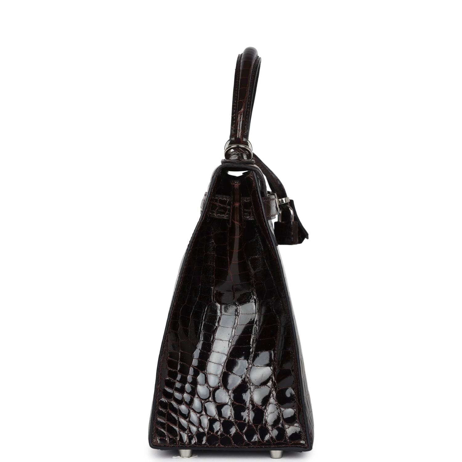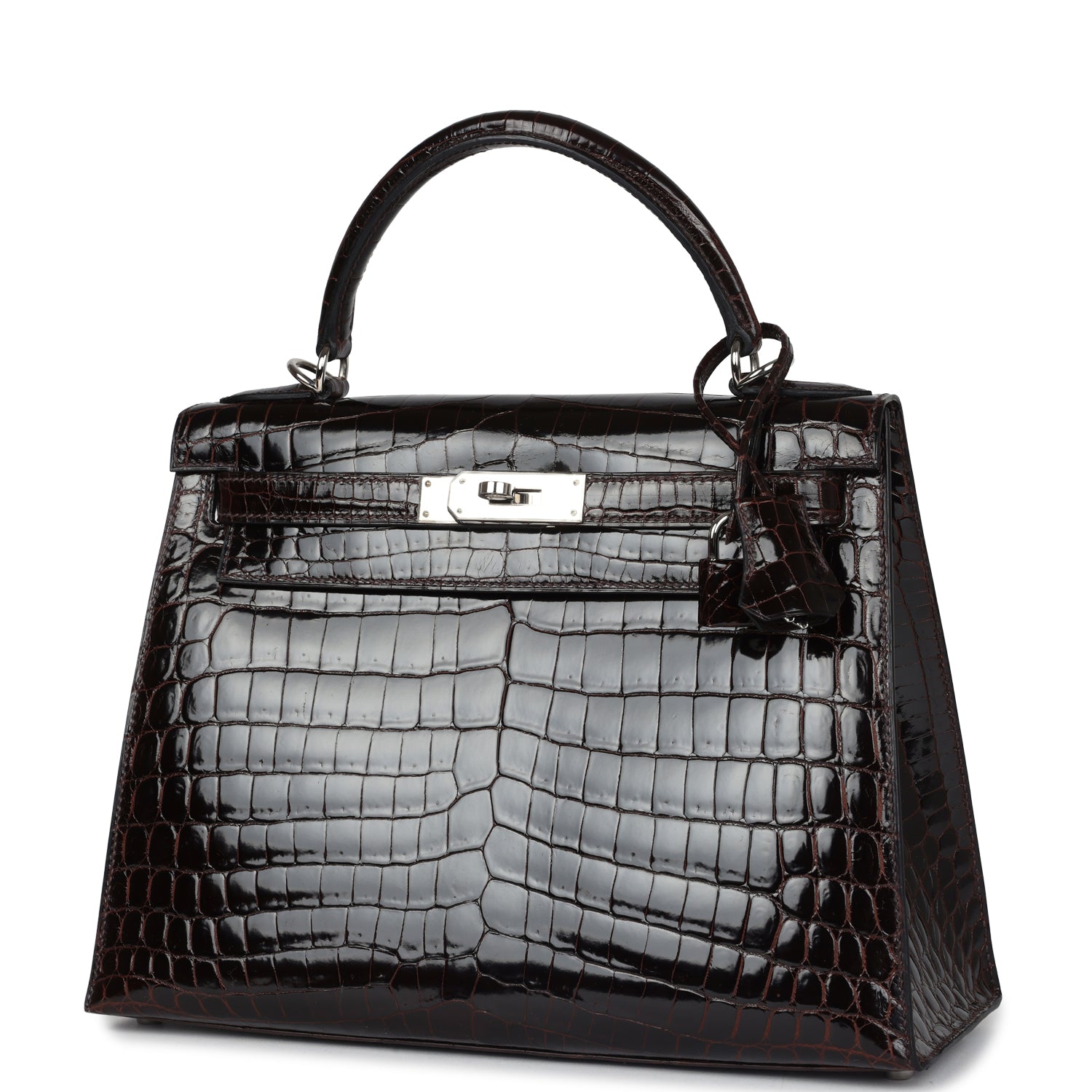 Hermes Kelly Sellier 28 Cocoan Shiny Niloticus Crocodile Palladium Hardware