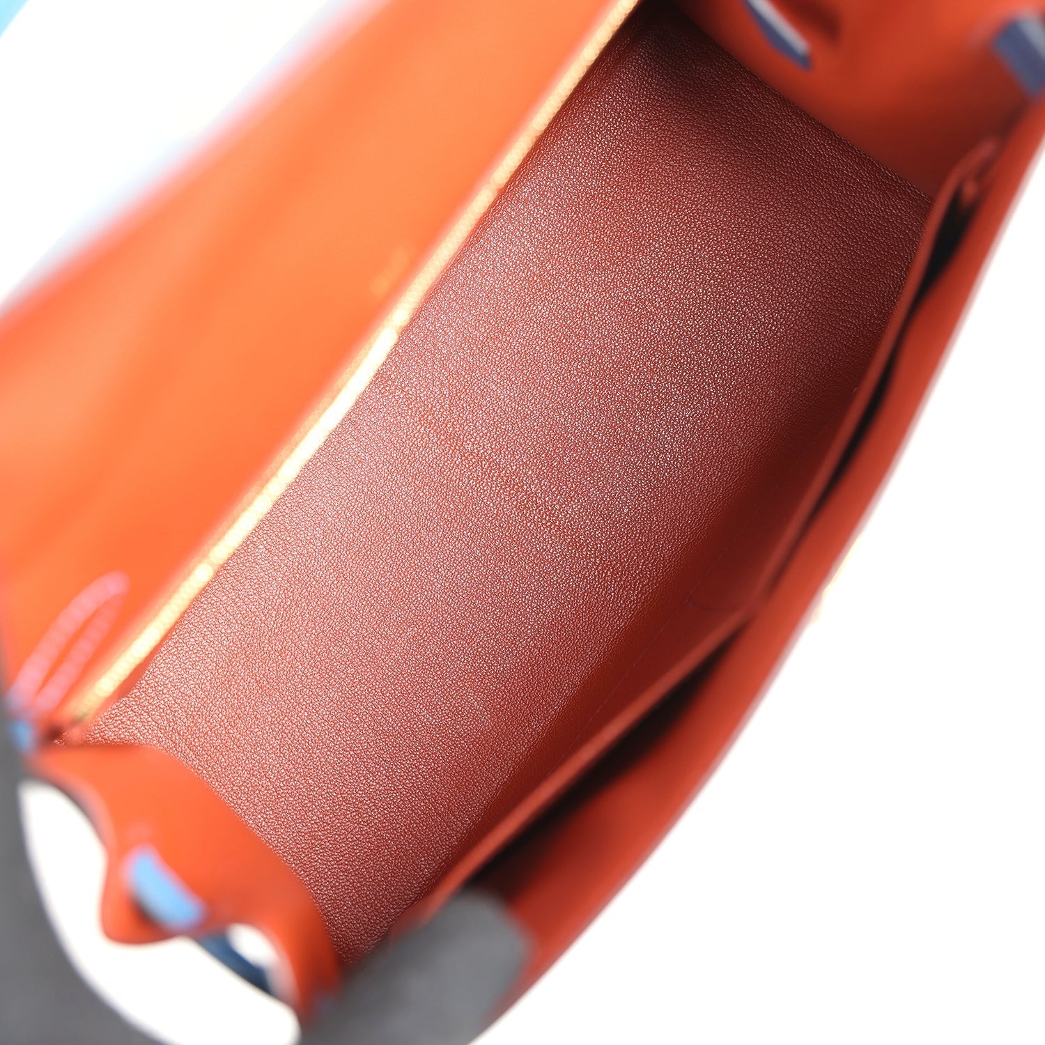 Hermes Kelly Sellier 25 Vert Vertigo and Bleu Iris Ostrich Brushed Gold Hardware