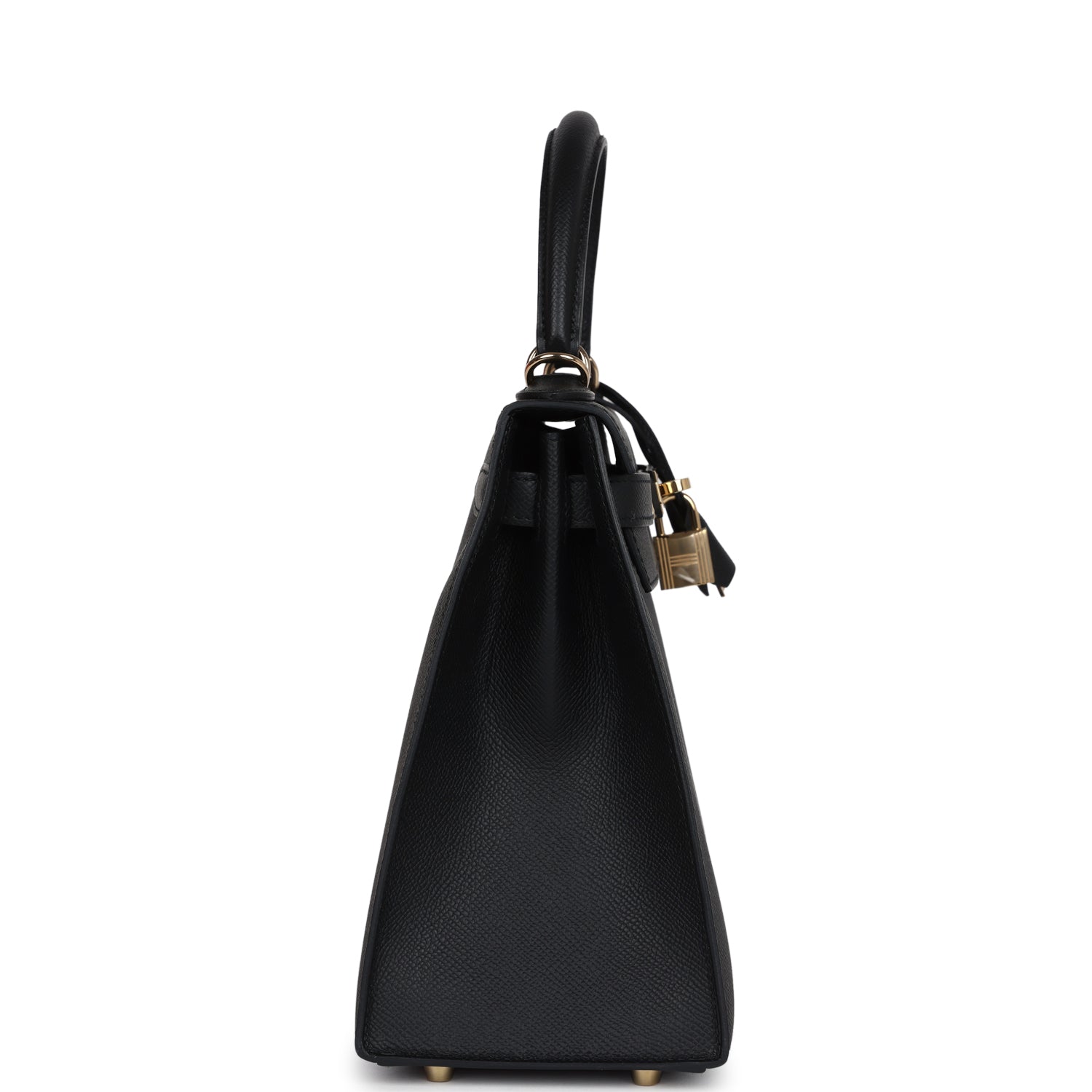 Regular price $1,899.00 Sale price $1,139.40 Save $759.60This Kelly, in the Sellier style, is in Black Doblis with gold hardware and has tonal stitching, two straps with front toggle closure, clochette with lock and two keys, single rolled handle and removable shoulder strap.