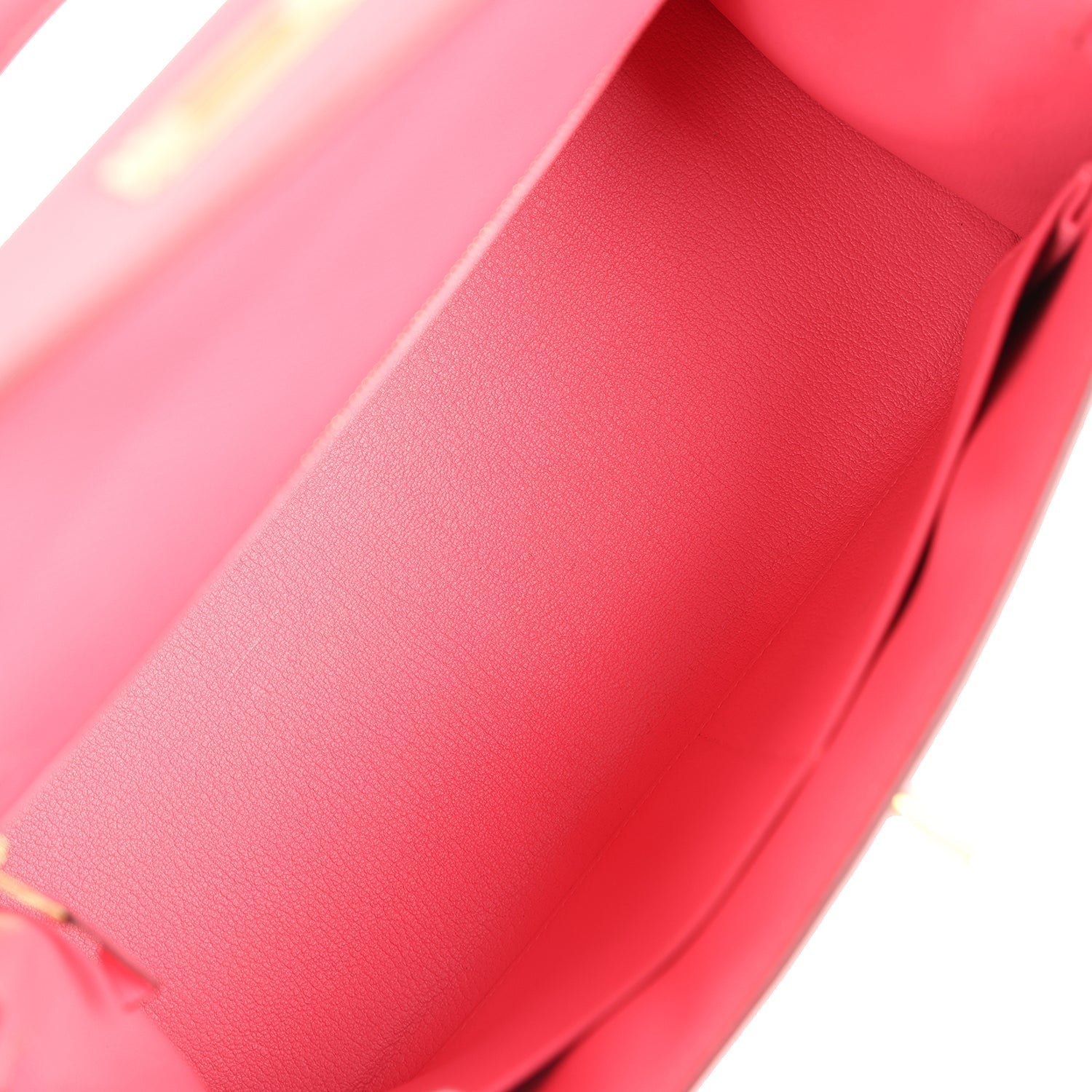 The interior is lined in Rose Tyrien chevre and has one zip pocket with Hermes engraved pull and two open pockets on the opposite side.