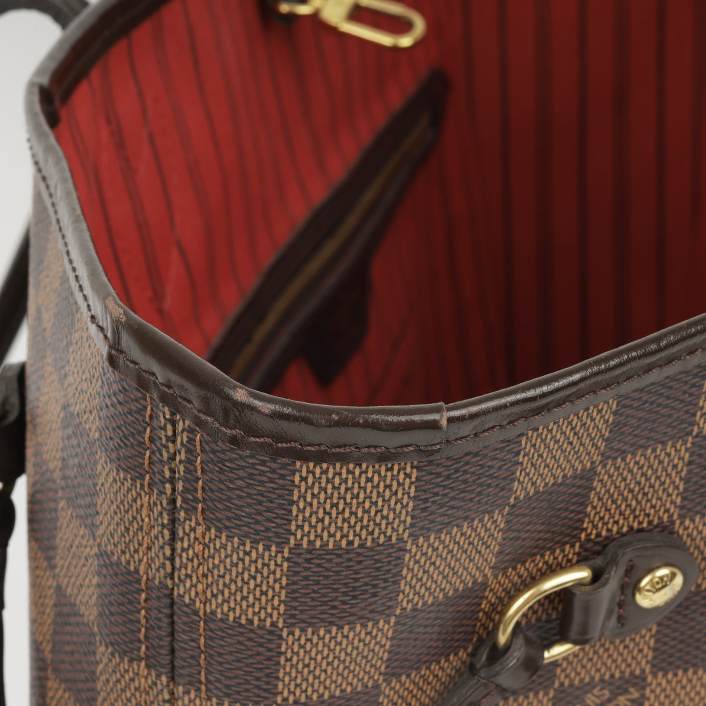 Louis Vuitton - Neverfull PM - Damier Ebene / Red Striped Lining GHW - Very Good - 2015