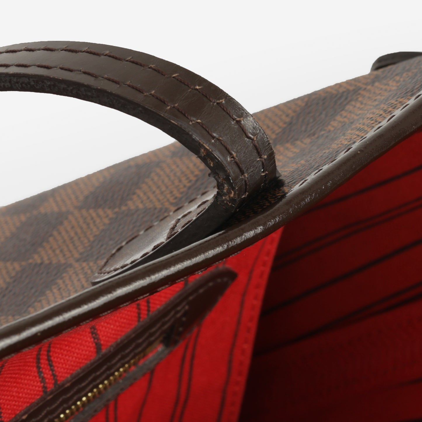 Louis Vuitton - Neverfull MM - Damier Ebene / Red Striped Lining GHW -