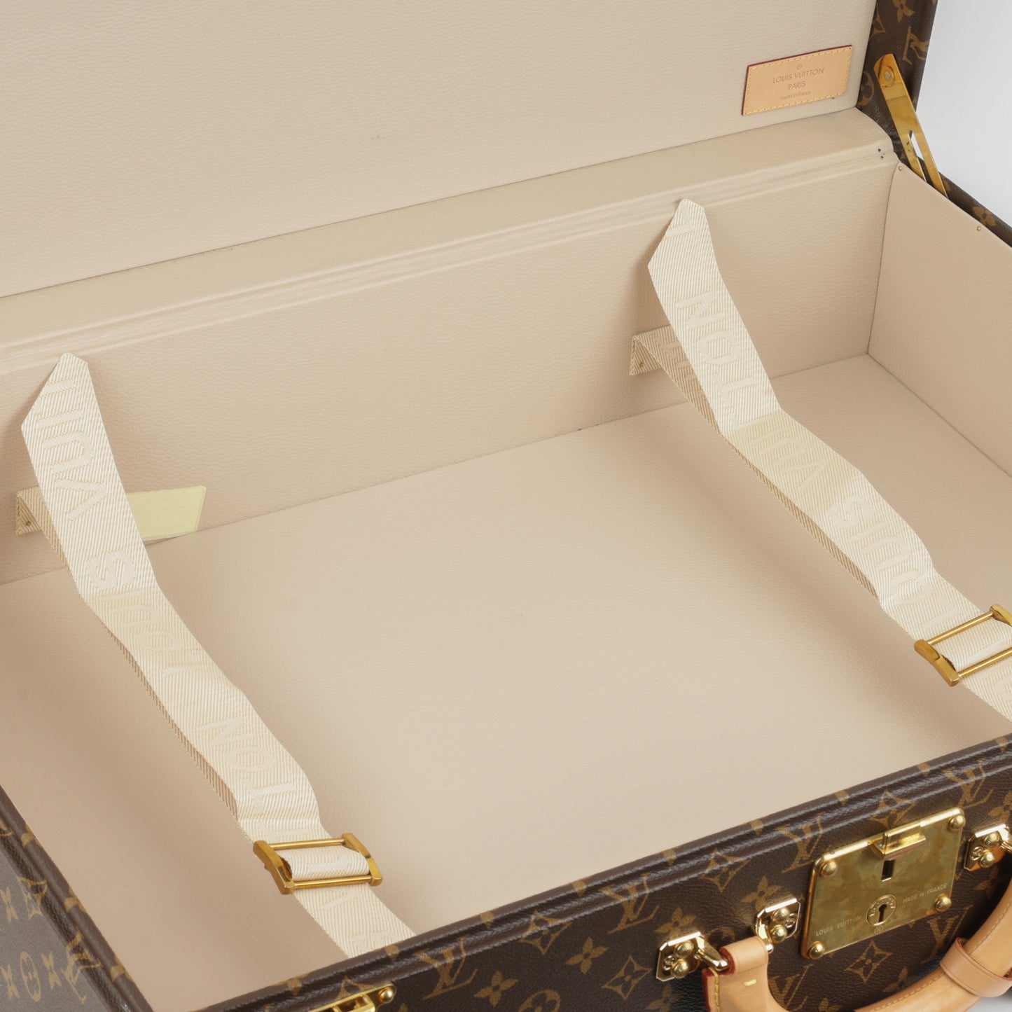 - Beige monogram fabric lining