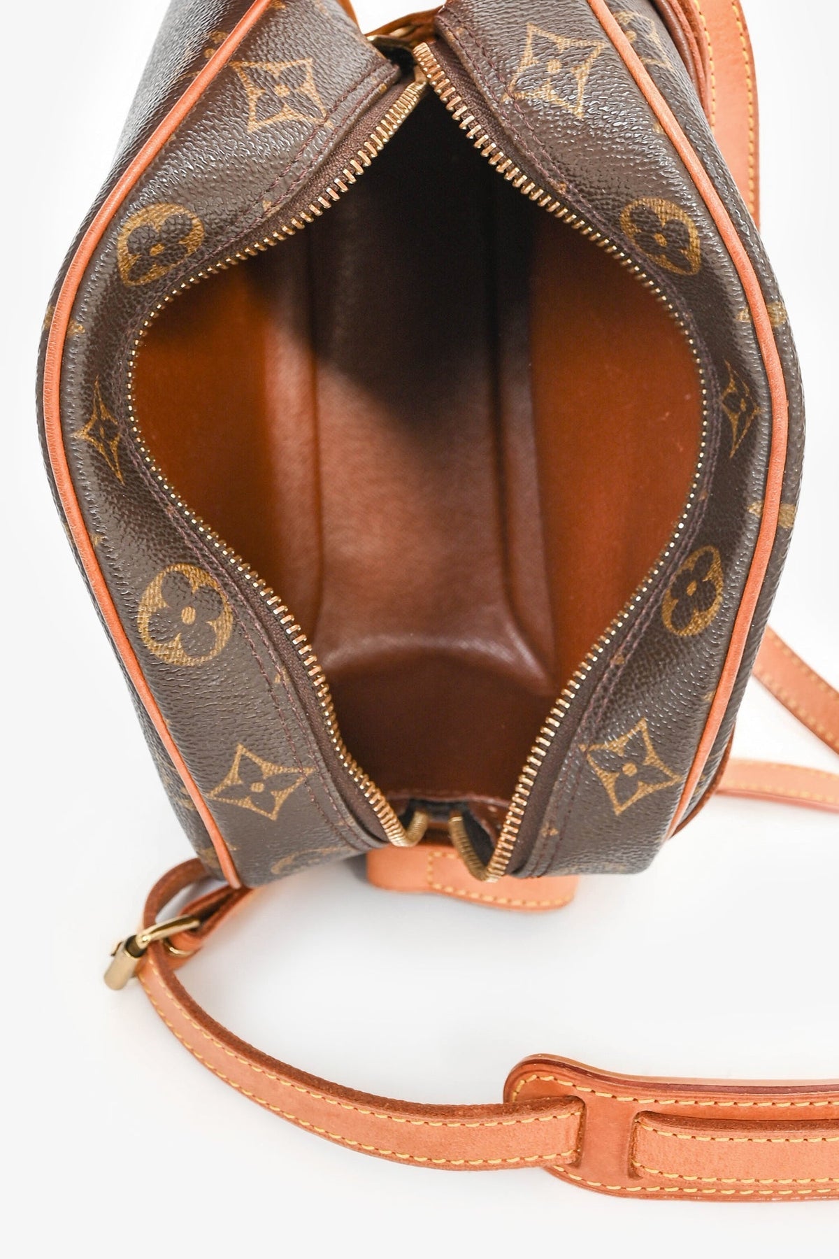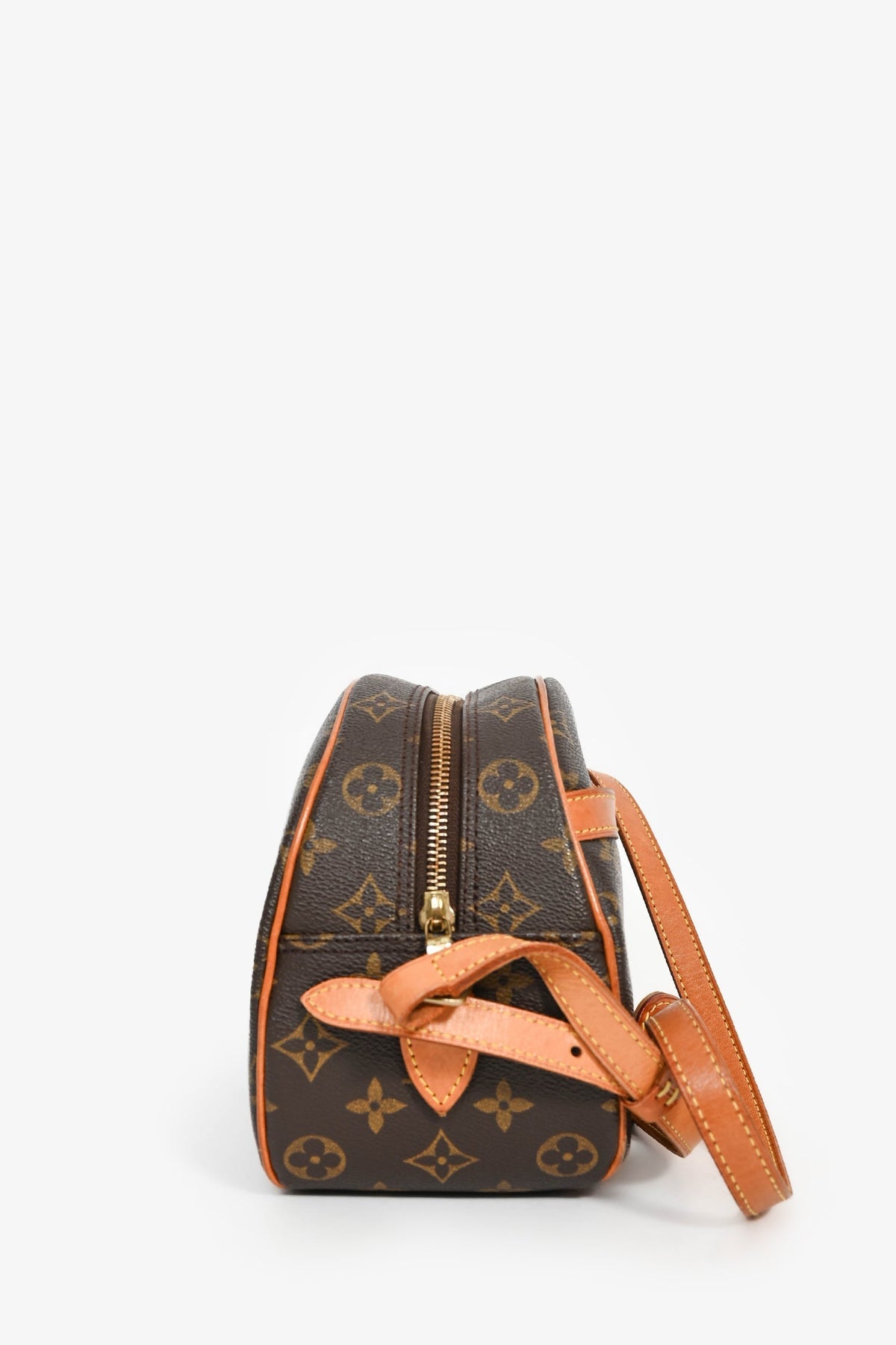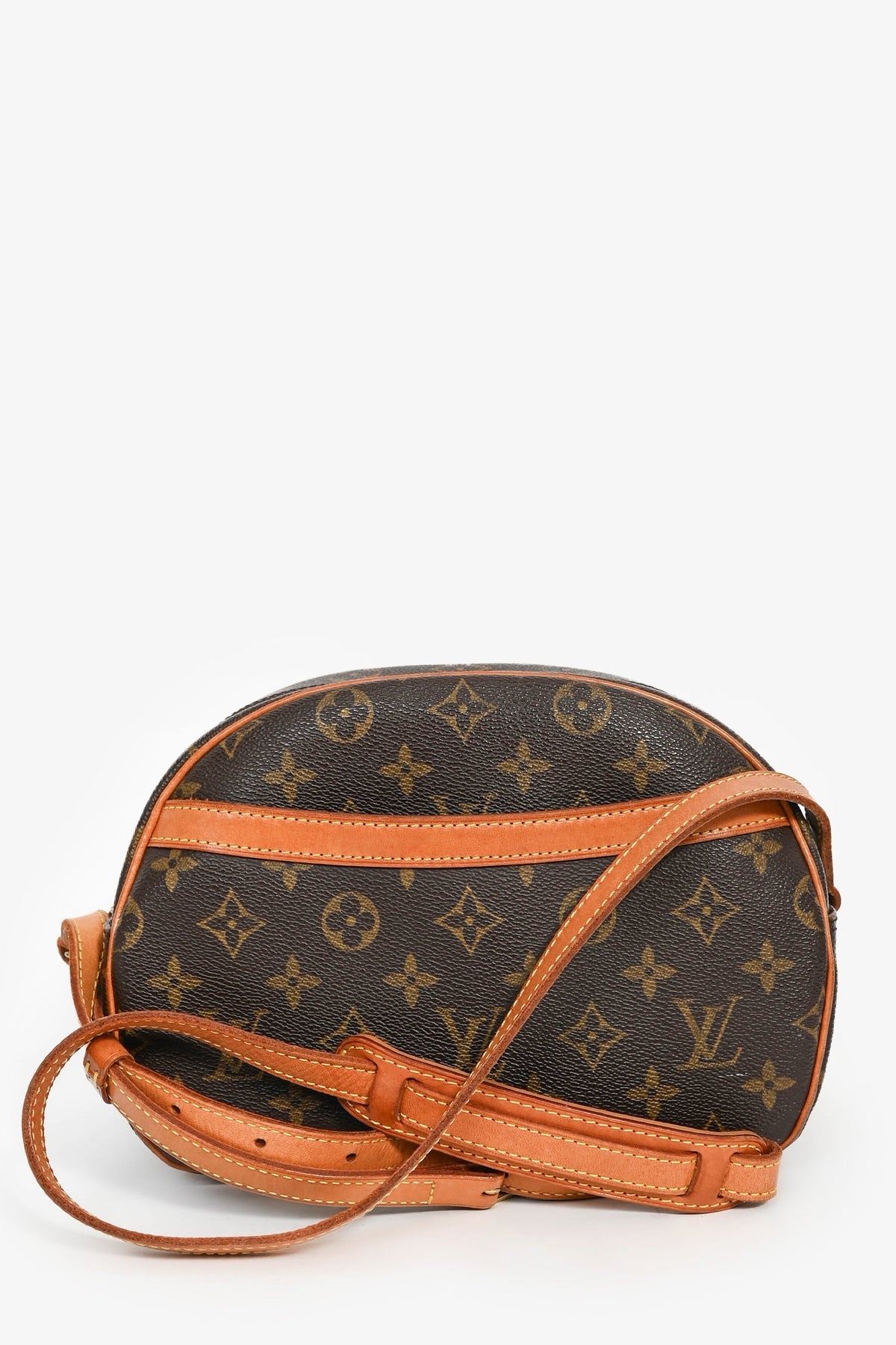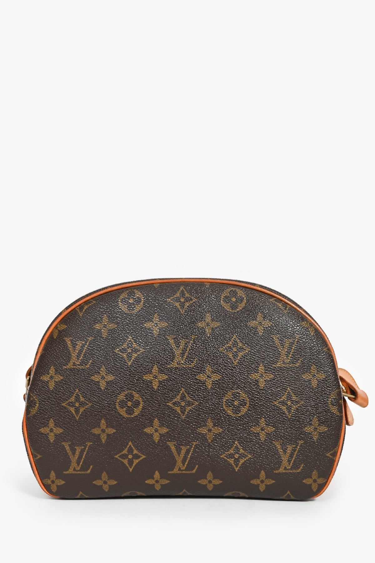 Louis Vuitton 2002 Monogram 'Blois' Crossbody Bag. Top zipper closure. Exterior wall slip pocket. Single compartment with a wall slip pocket. Tonal leather lining. Adjustable strap. Gold-tone hardware. Tonal stitching.