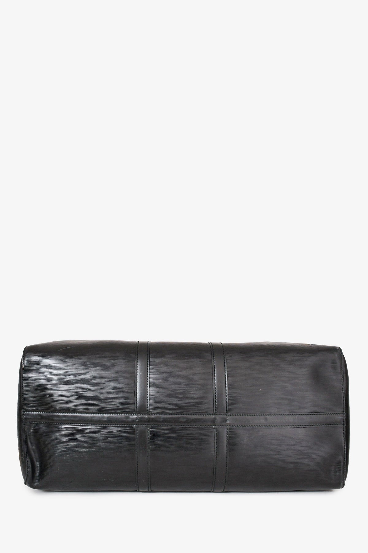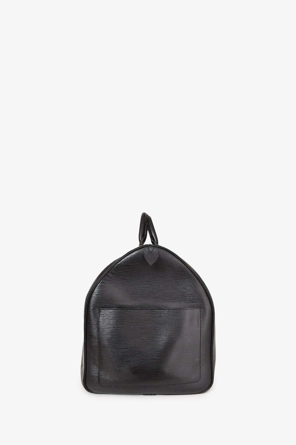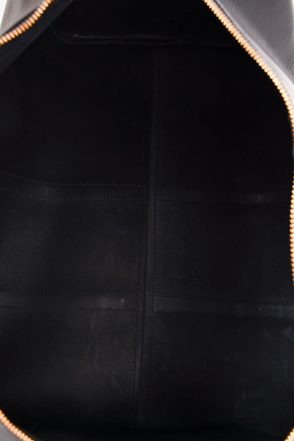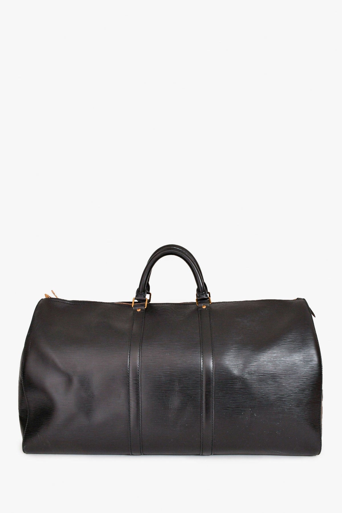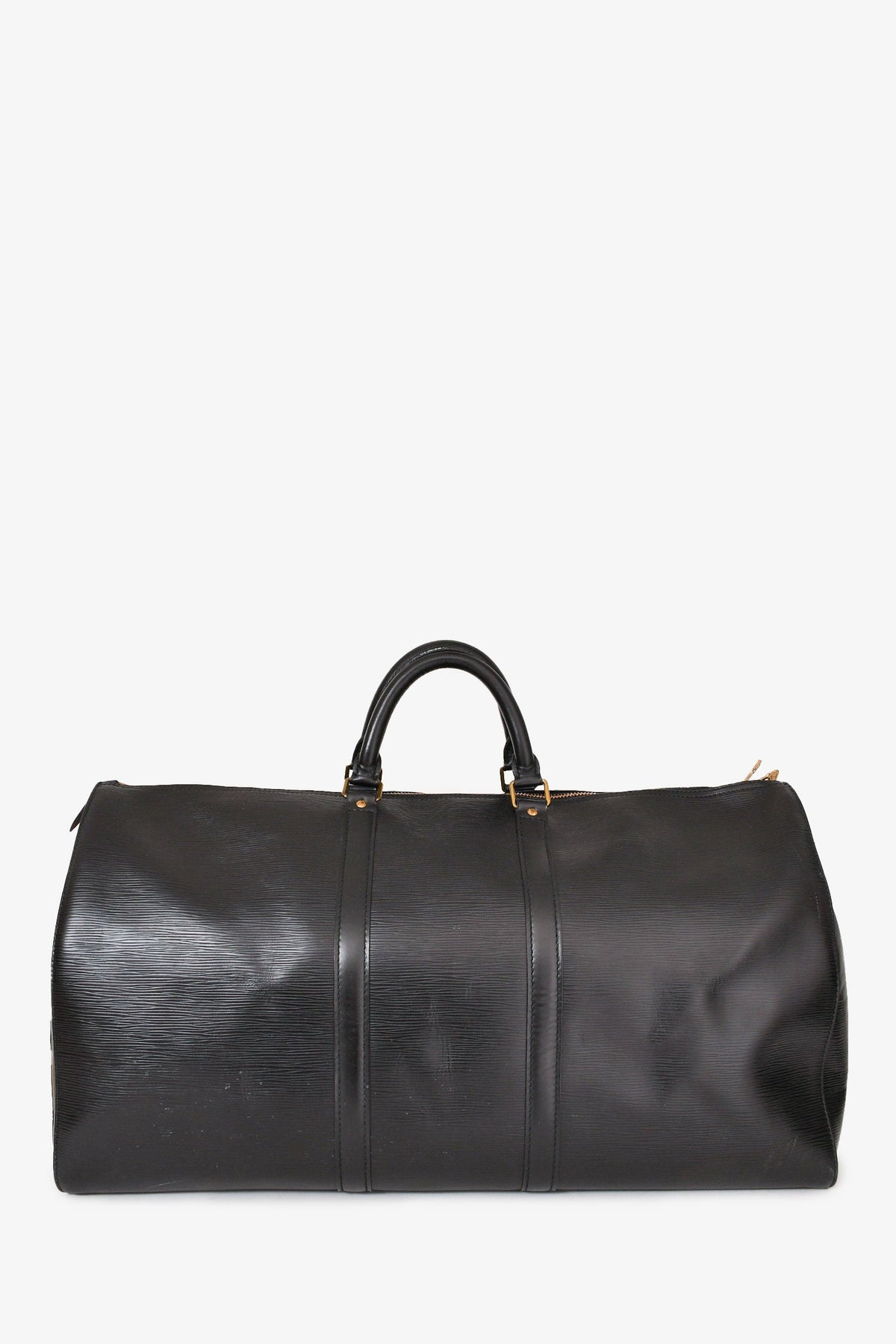 Regular price $1,860.00 Sale price $480.00 Save $1,380.00Louis Vuitton 1988 Black Epi Leather Keepall 55. Dual handle. Top zipper closure. Side exterior slip pocket. Suede lining. Gold-tone hardware. Tonal stitching.