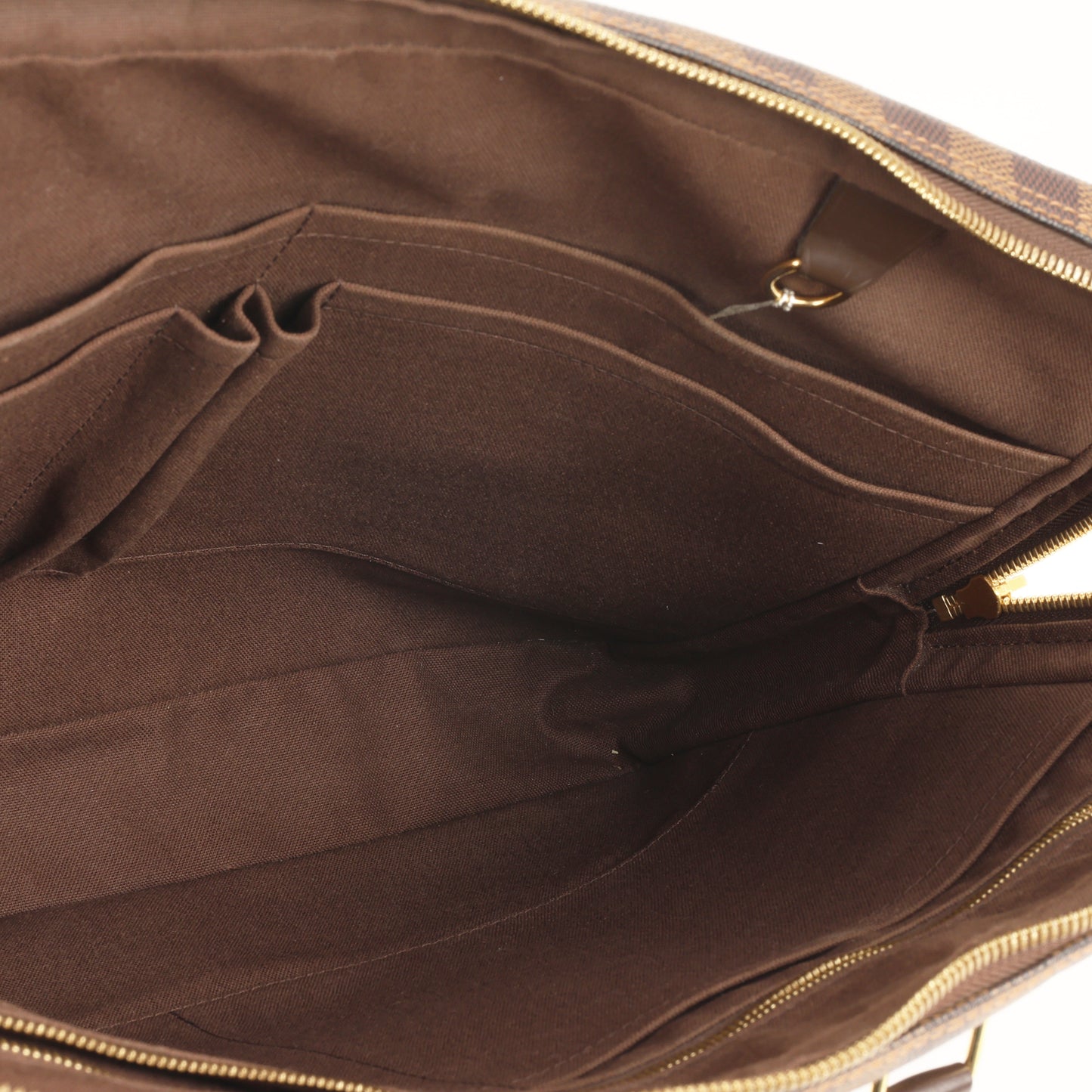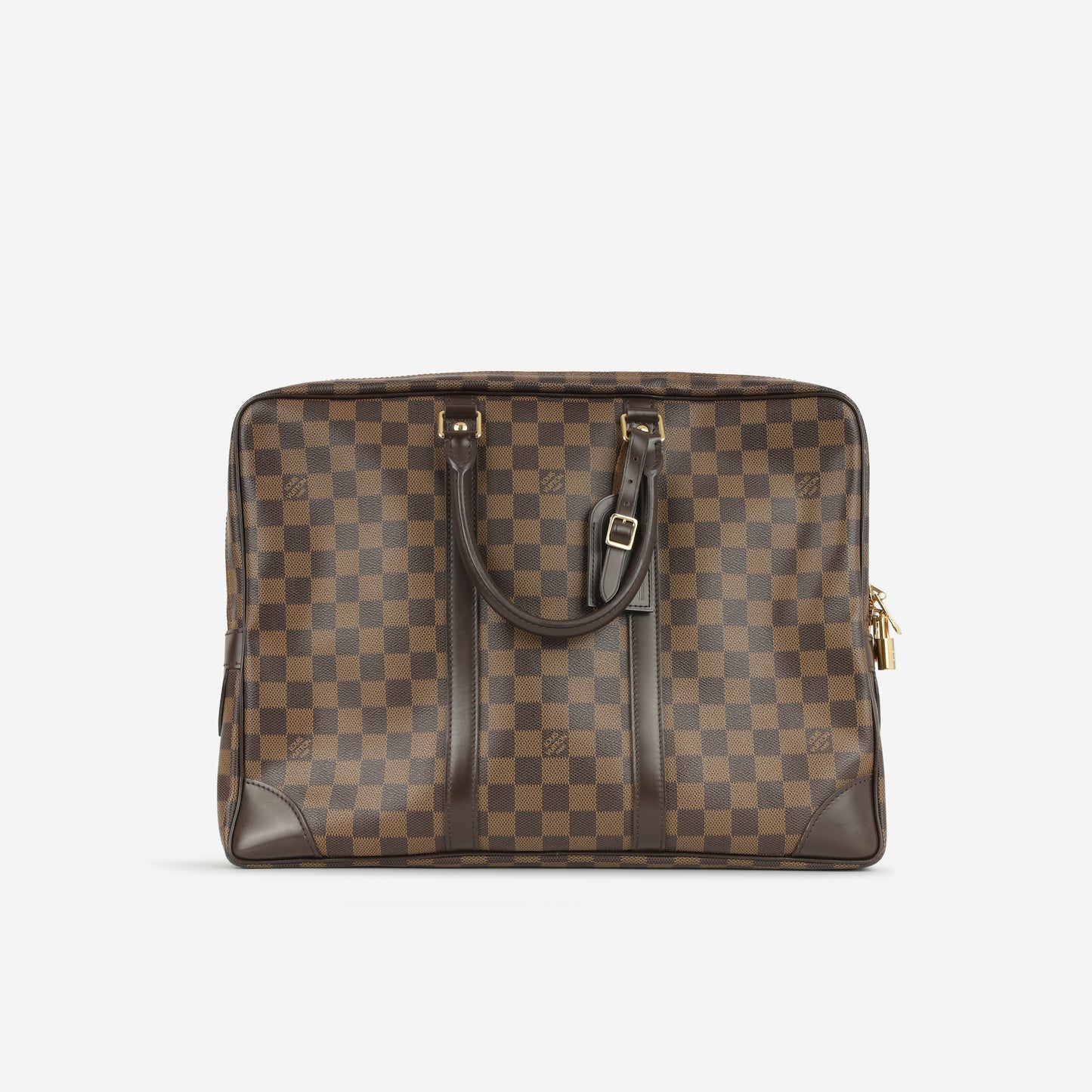 Regular price $2,000.00 Sale price $490.00 Save $1,510.00Louis Vuitton 1996 100th Anniversary Damier Ebene Leather Trimmed West-End GM Bag with Strap. Front fold-over flap with buckle closure. Open compartment with a wall pocket with zipper closure. Adjustable and detachable straps. Gold-tone hardware. Tonal stitching.