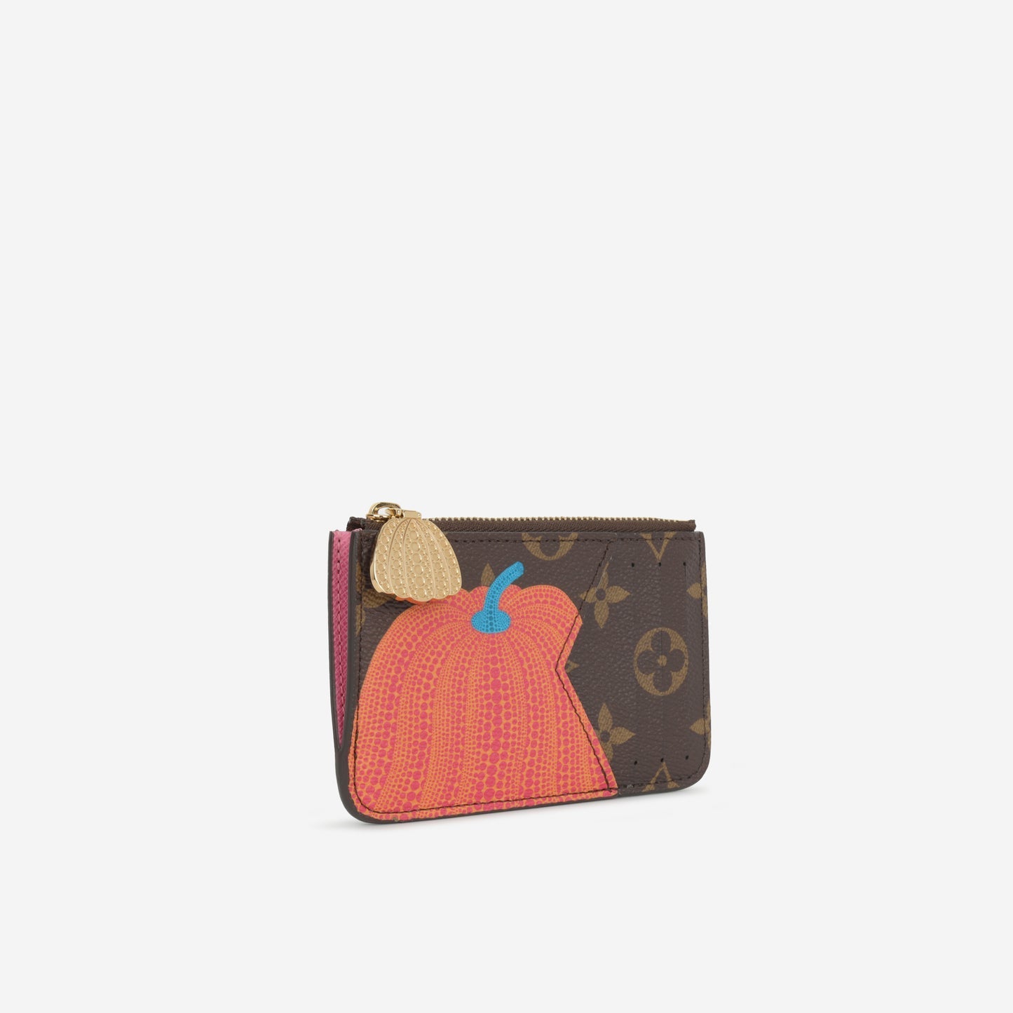 Part of a limited-edition collaboration between the luxury fashion house and Kusama, known for her signature polka dots and vibrant use of color, this card holder stands out with its playful pumpkin motif. The bold, cheerful orange pumpkin design is printed on the classic monogram canvas, creating a striking contrast against the rich brown LV monogram. A true celebration of art, fashion, and craftsmanship, this piece is a must-have for collectors and admirers of both luxury fashion and contemporary art.