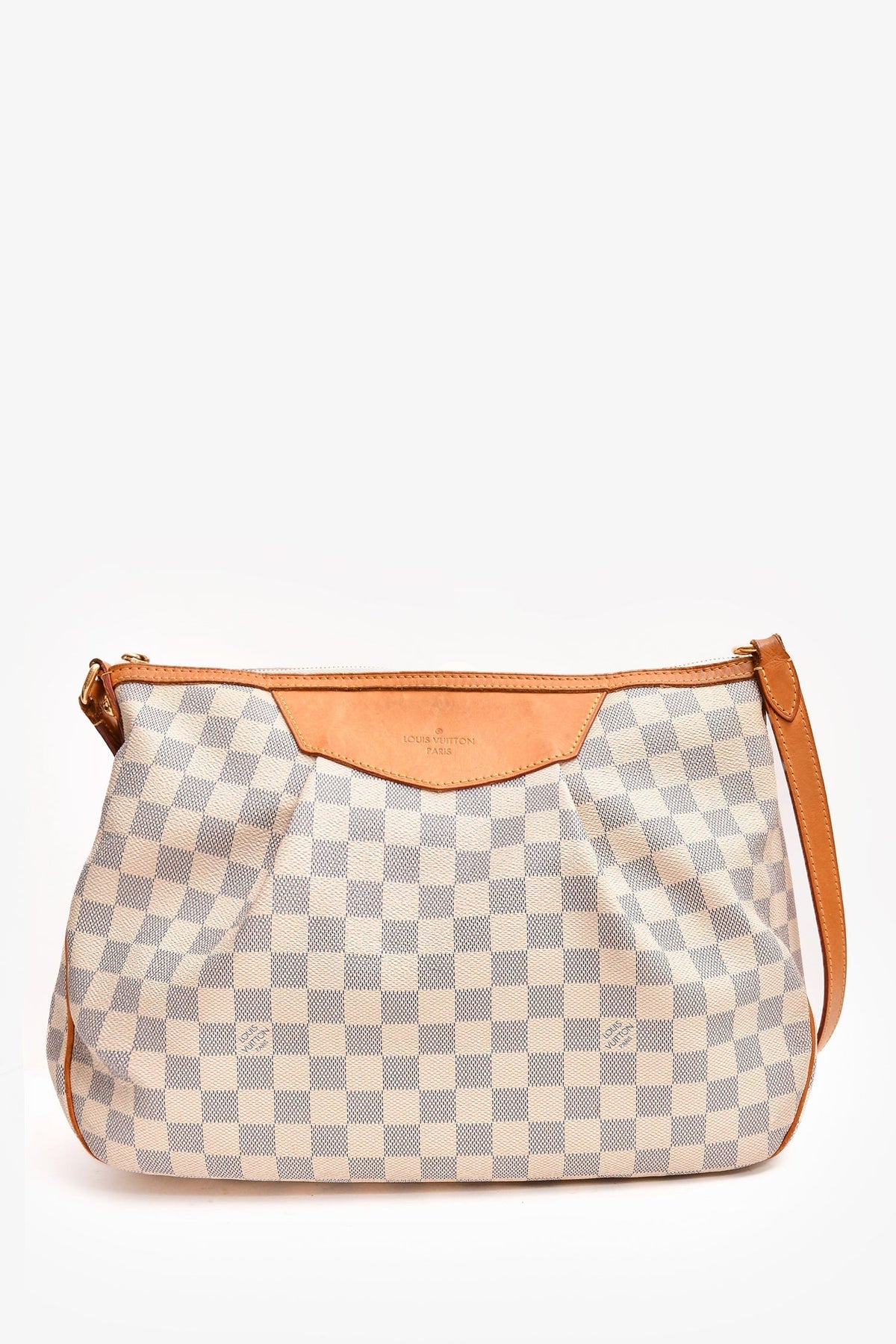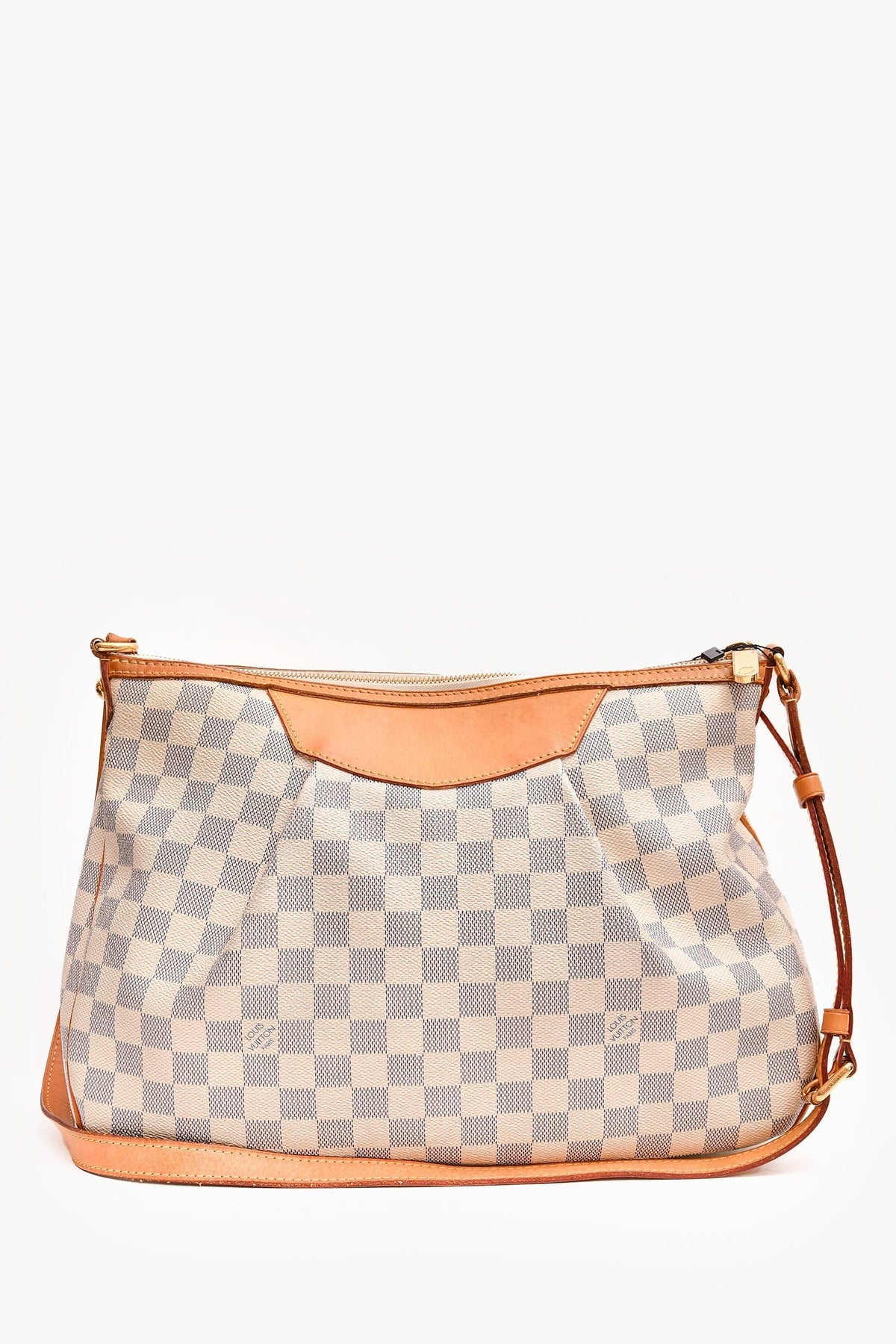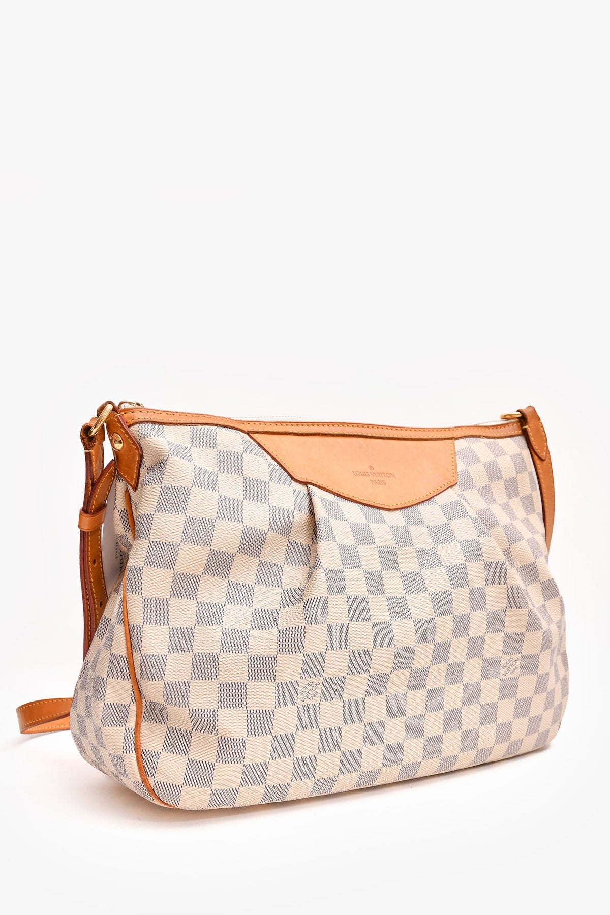 Regular price $1,990.00 Sale price $490.00 Save $1,500.00Louis Vuitton 2012 Damier Azur Siracusa MM Messenger Crossbody Bag. Top zip closure. Beige textile interior lining. 2 interior wall slip pockets. Adjustable strap. Gold-tone hardware.