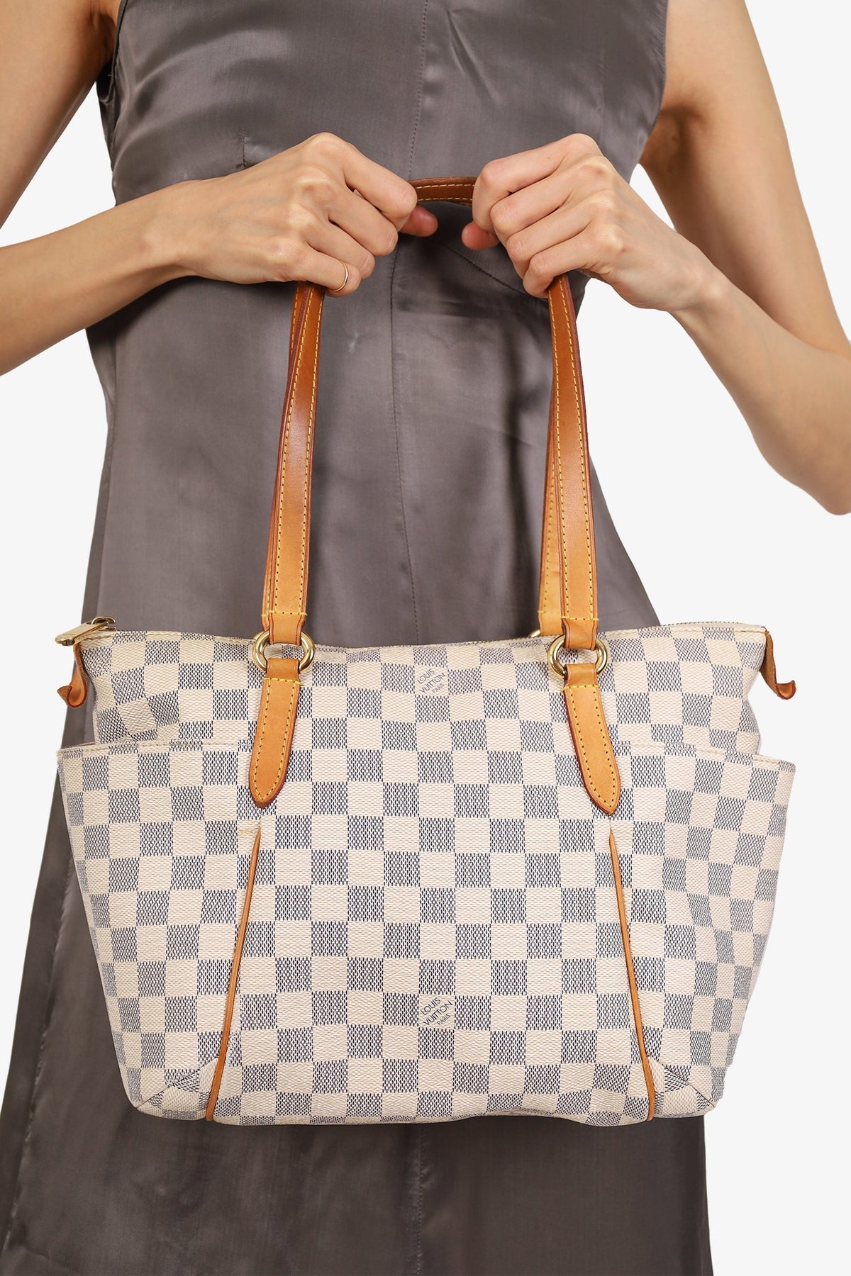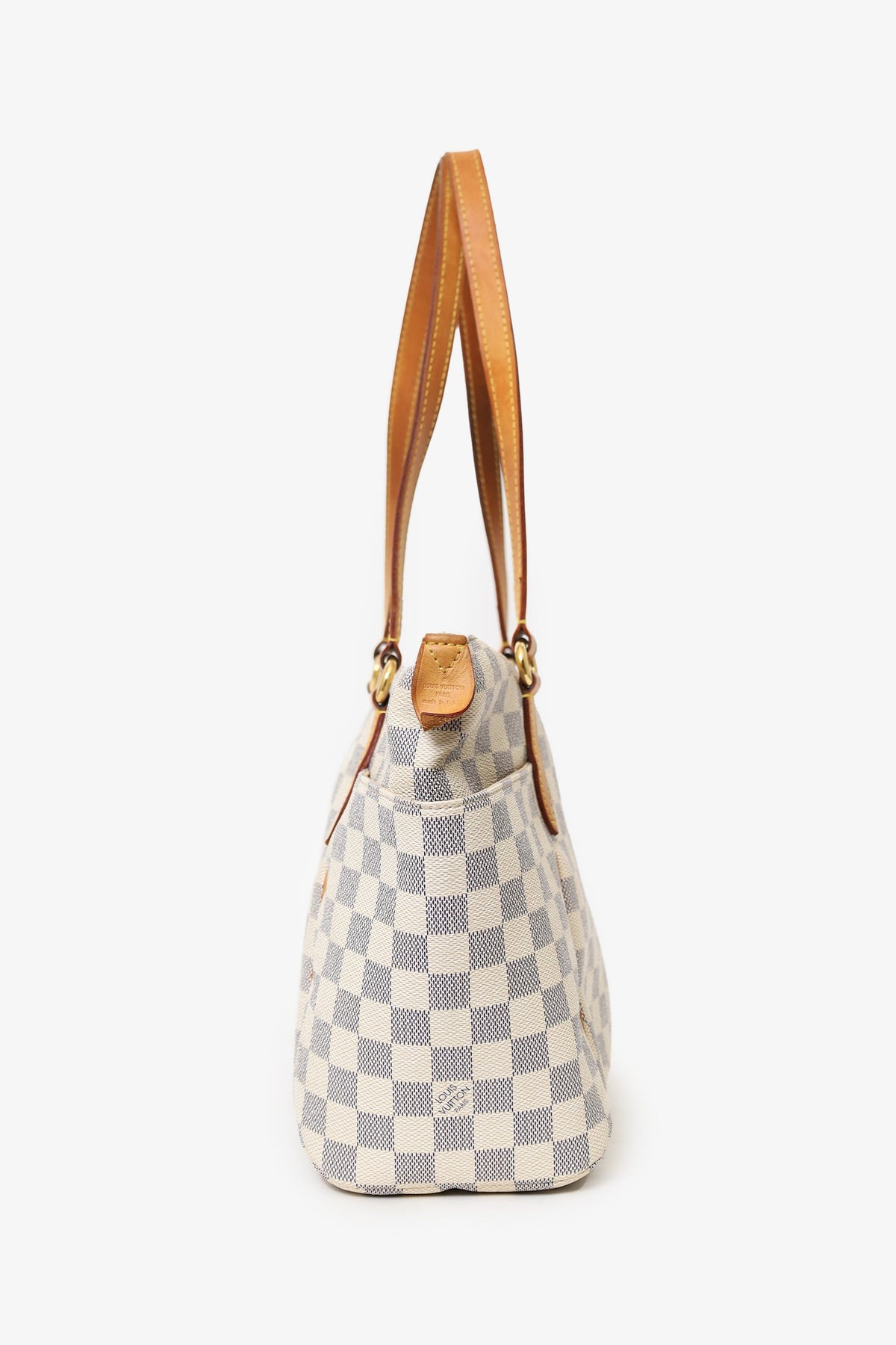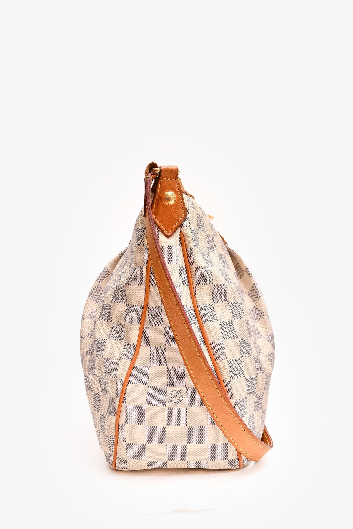 Regular price $1,990.00 Sale price $490.00 Save $1,500.00Louis Vuitton 2012 Damier Azur Siracusa MM Messenger Crossbody Bag. Top zip closure. Beige textile interior lining. 2 interior wall slip pockets. Adjustable strap. Gold-tone hardware.