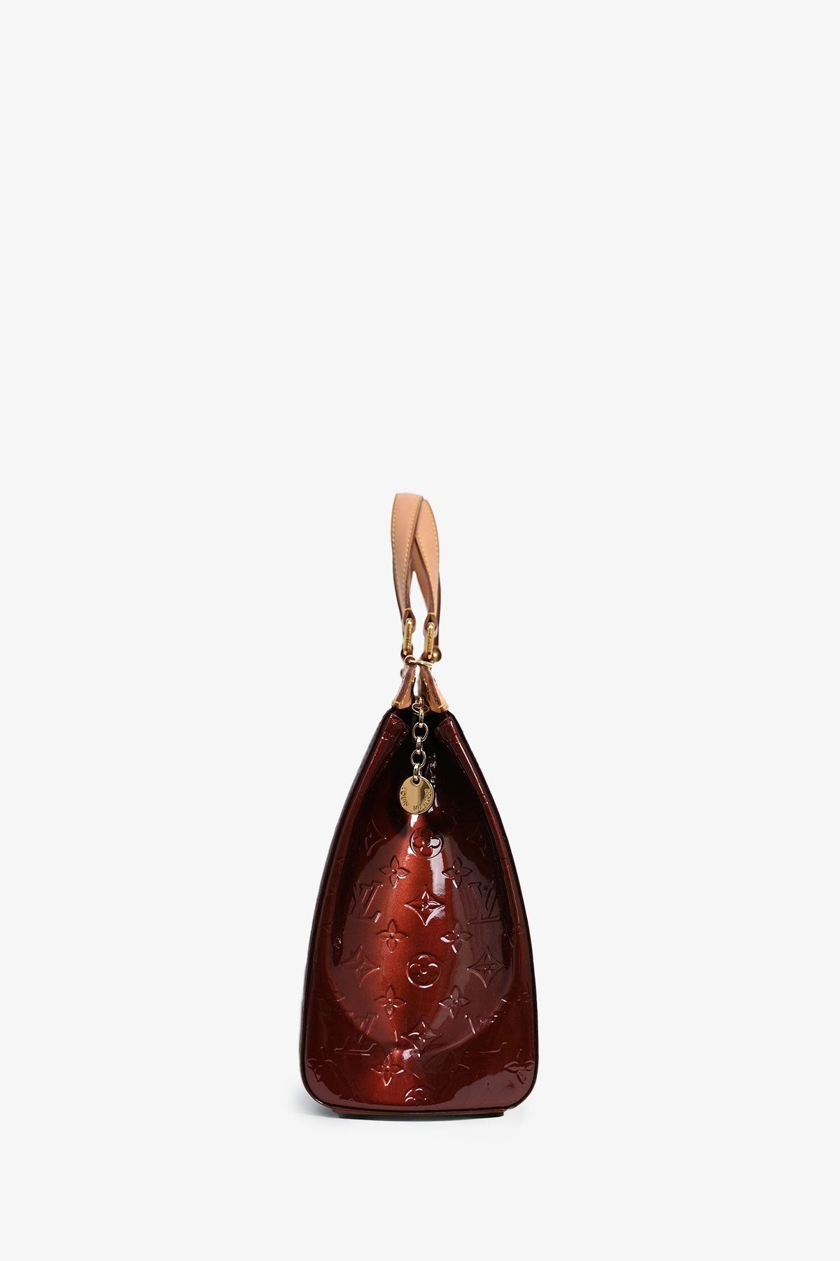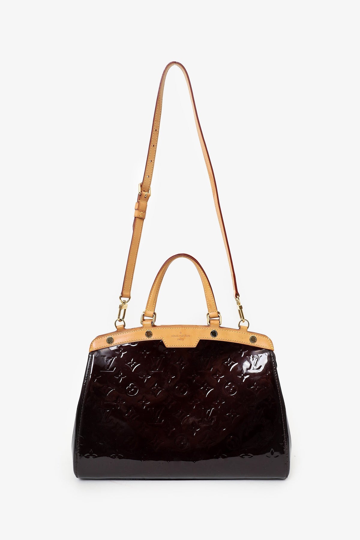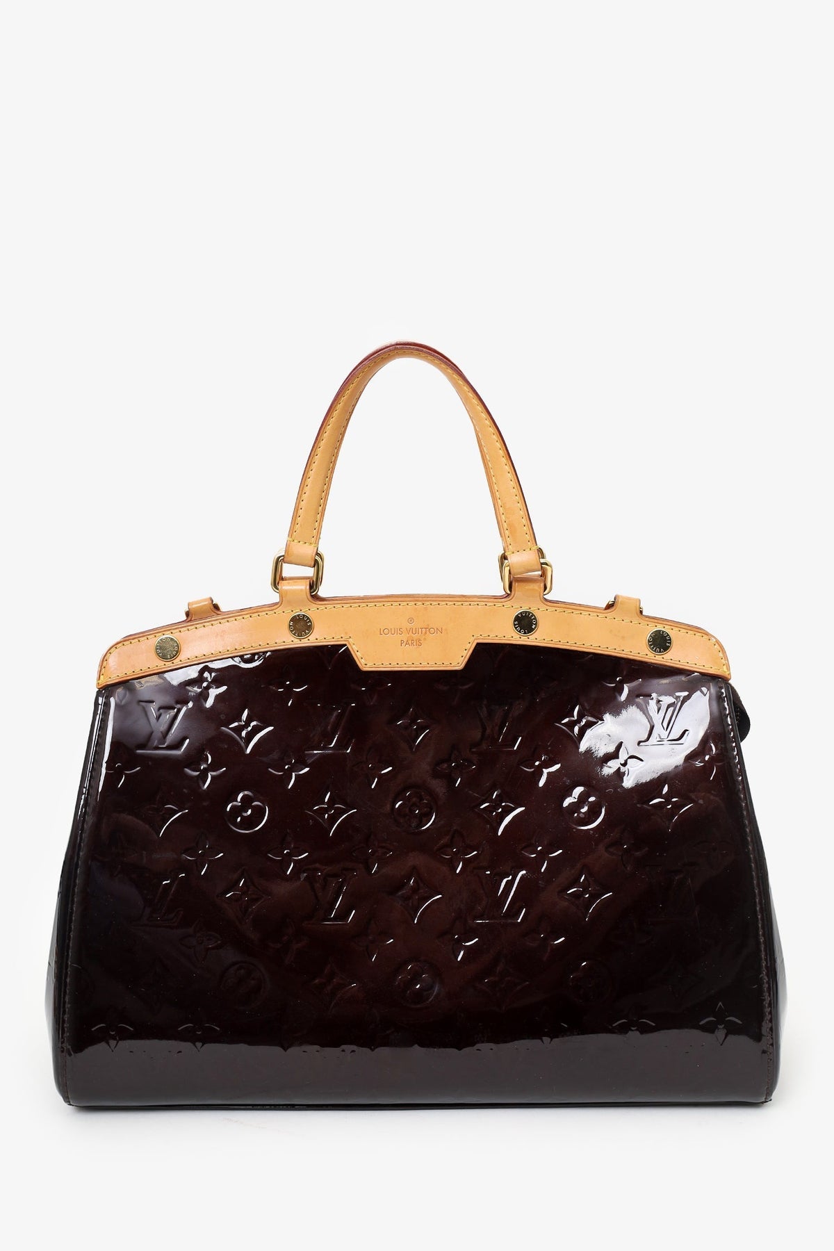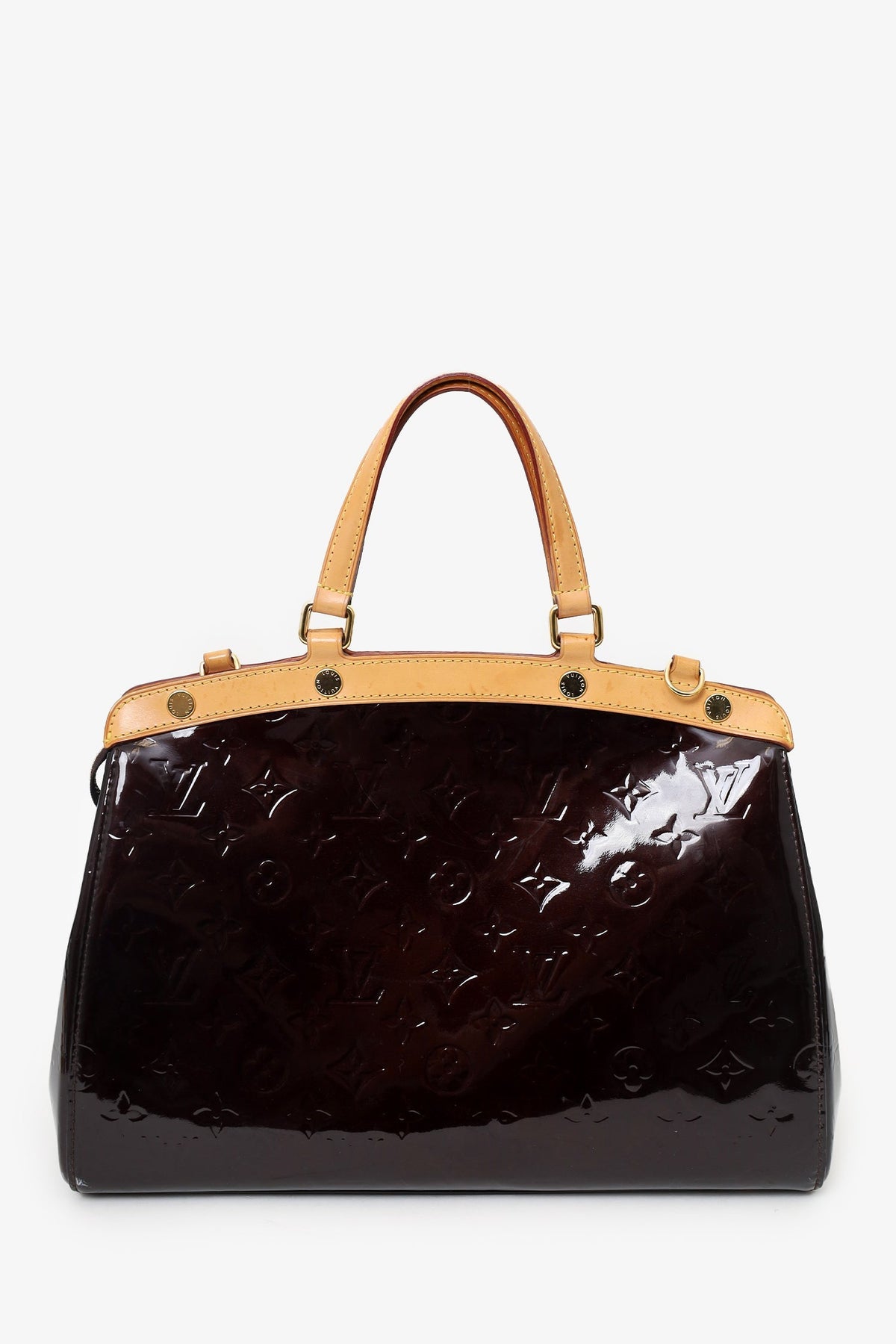 Regular price $1,990.00 Sale price $490.00 Save $1,500.00Louis Vuitton 2012 Burgundy Vernis Leather Brea Top Handle with Strap. Top zip closure. Twin handles. Removable strap with adjustable buckle closure. Protective studs on bottom. Lined interior. 3 interior pockets; 1 zip and 2 slip. Gold-tone hardware. Tonal stitching.