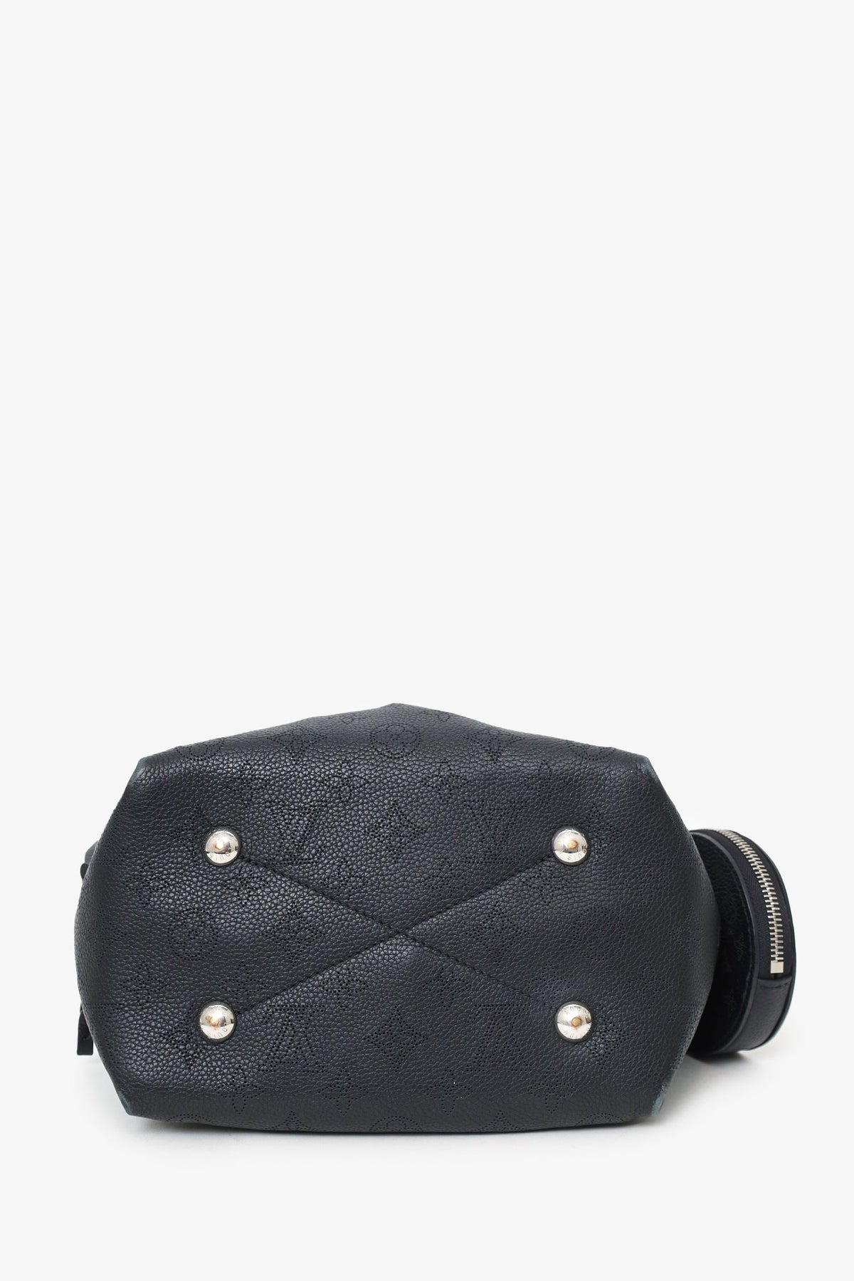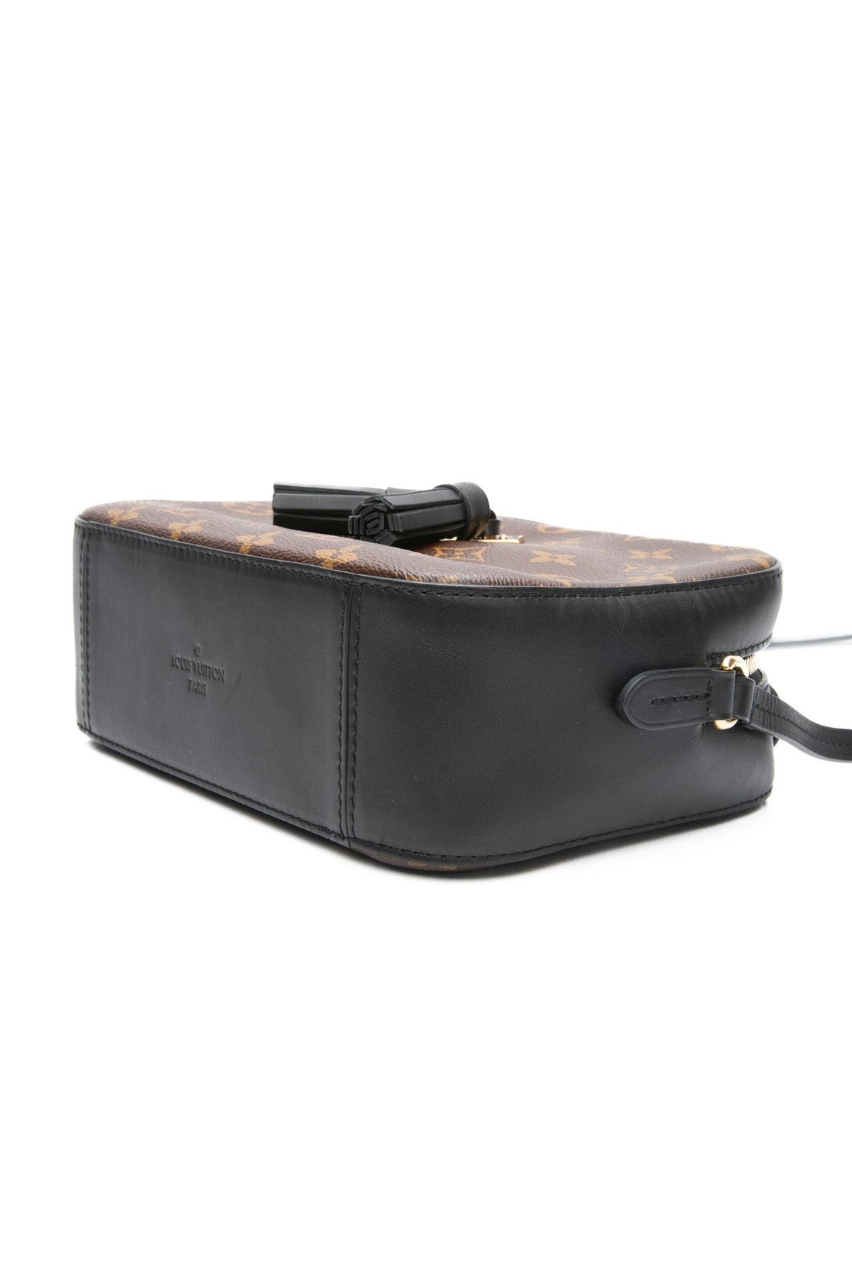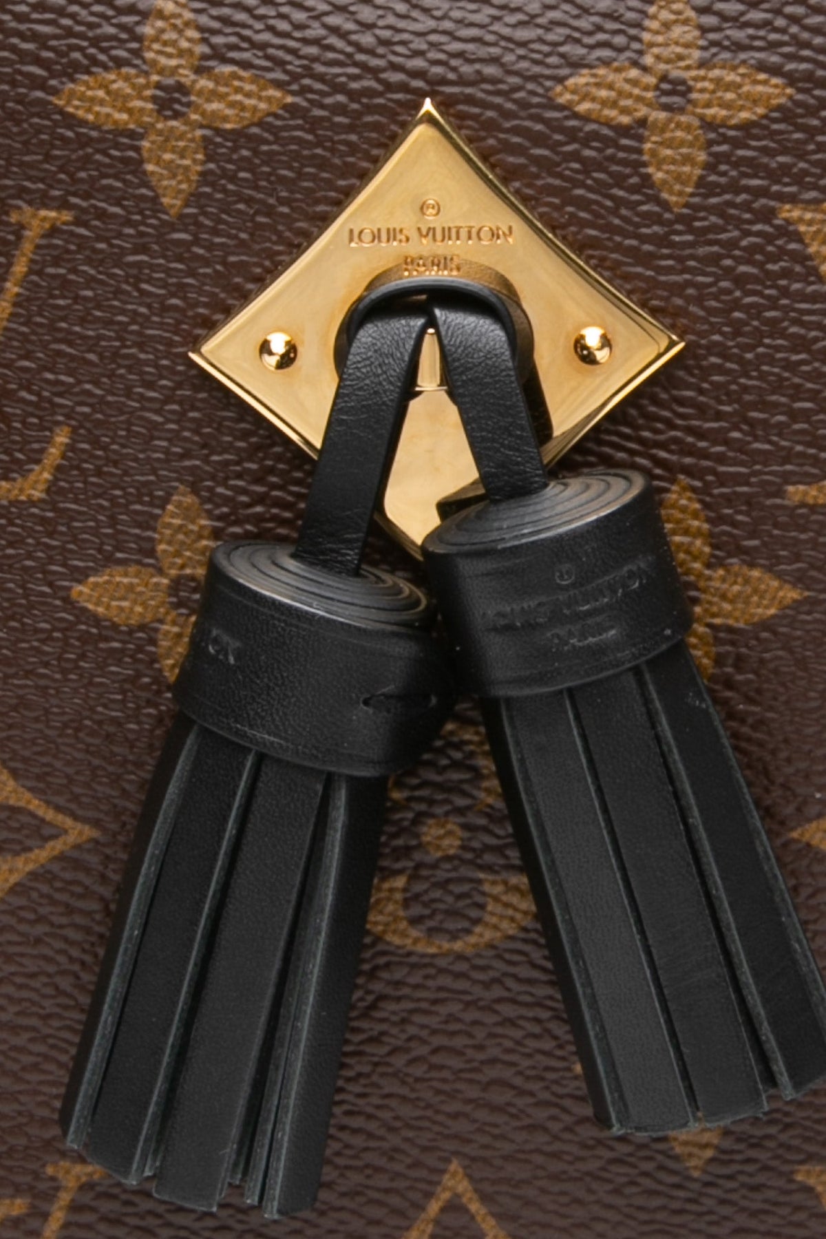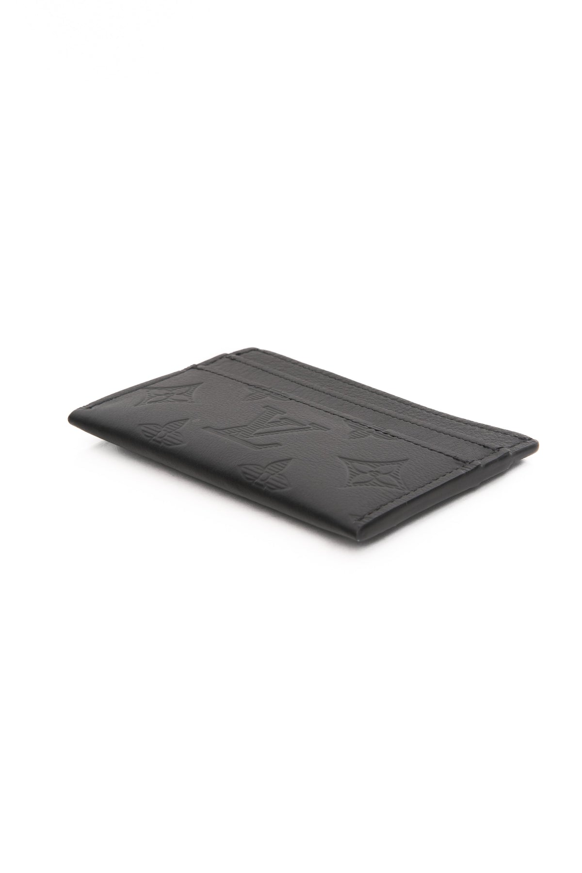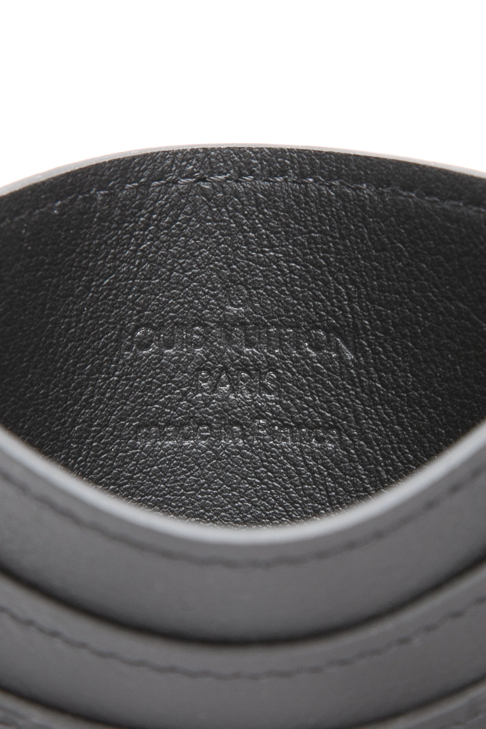 - Louis Vuitton embossed leather logo
