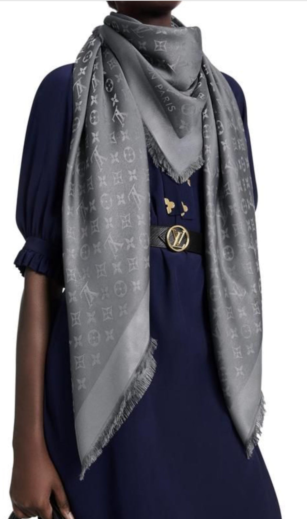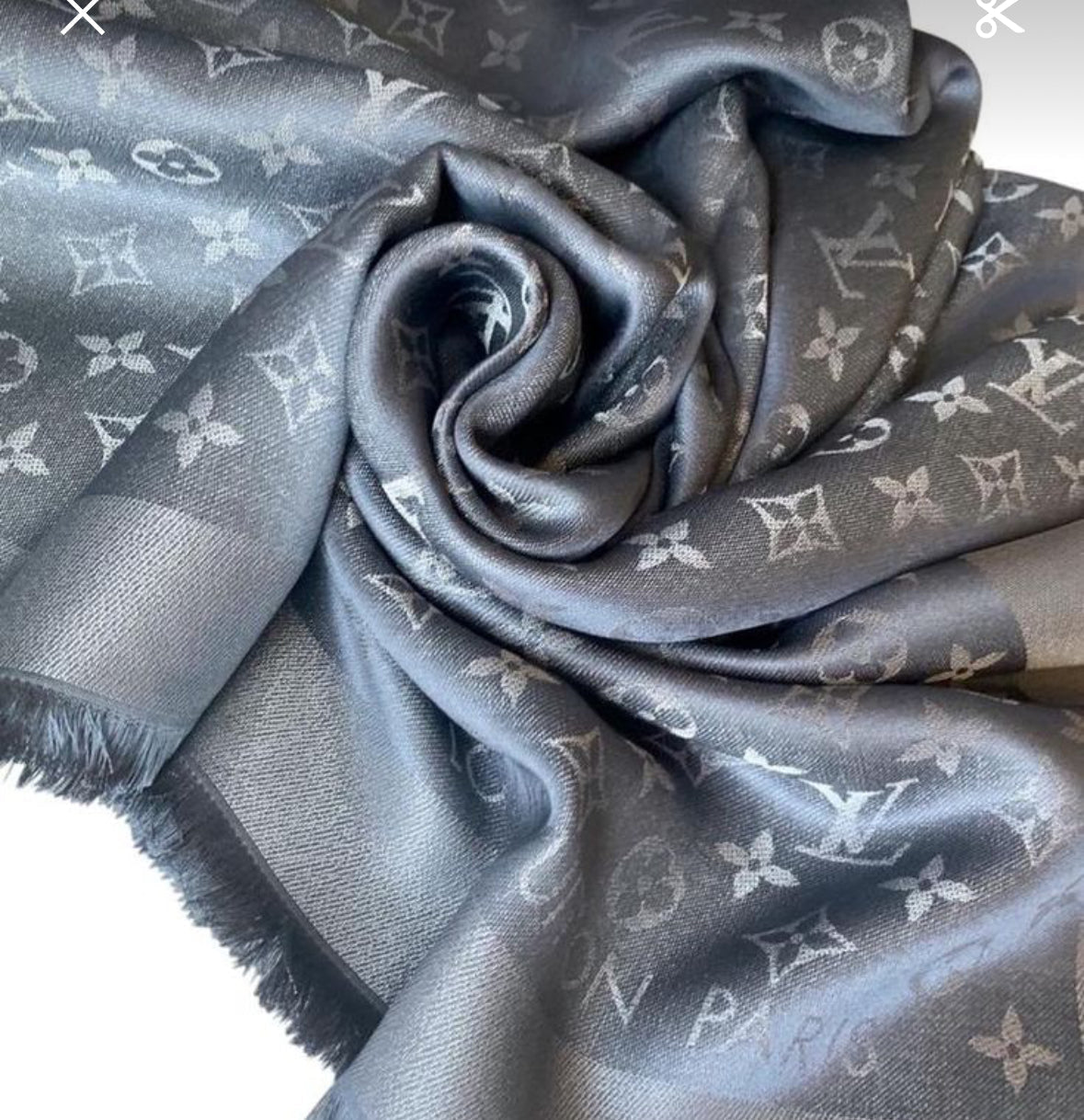 LOUIS VUITTON Charcoal Grey Monogram Shine Shawl (New)