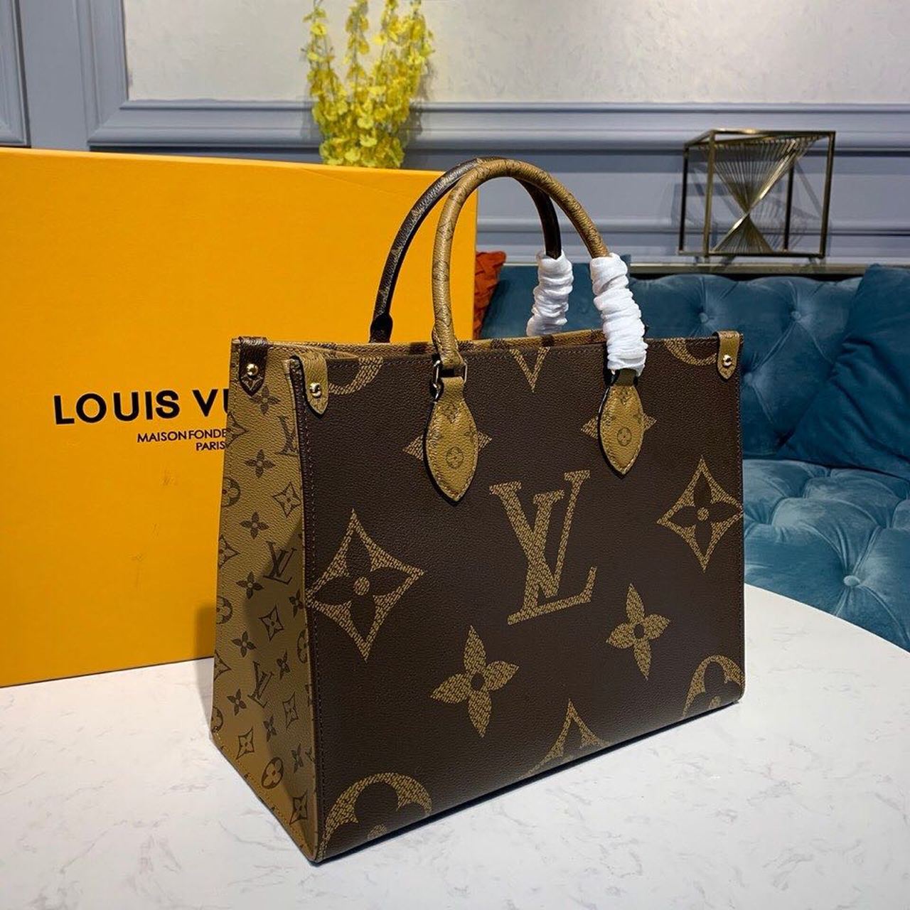 Louis Vuitton OnTheGo Bag 34cm Monogram Giant/Monogram Reverse Canvas Spring/Summer Collection M44577, Brown/Tan