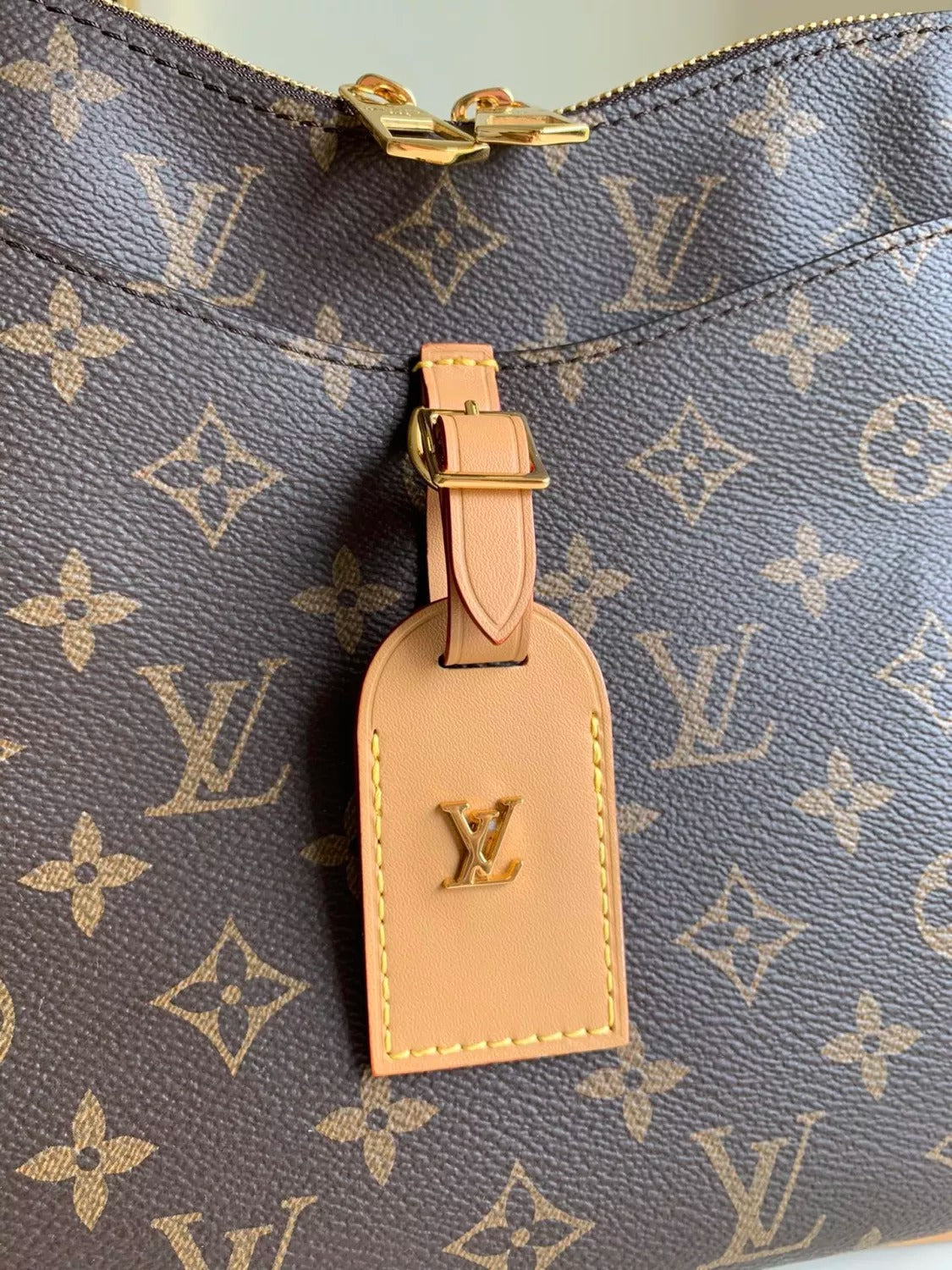 - Monogram leather luggage tag